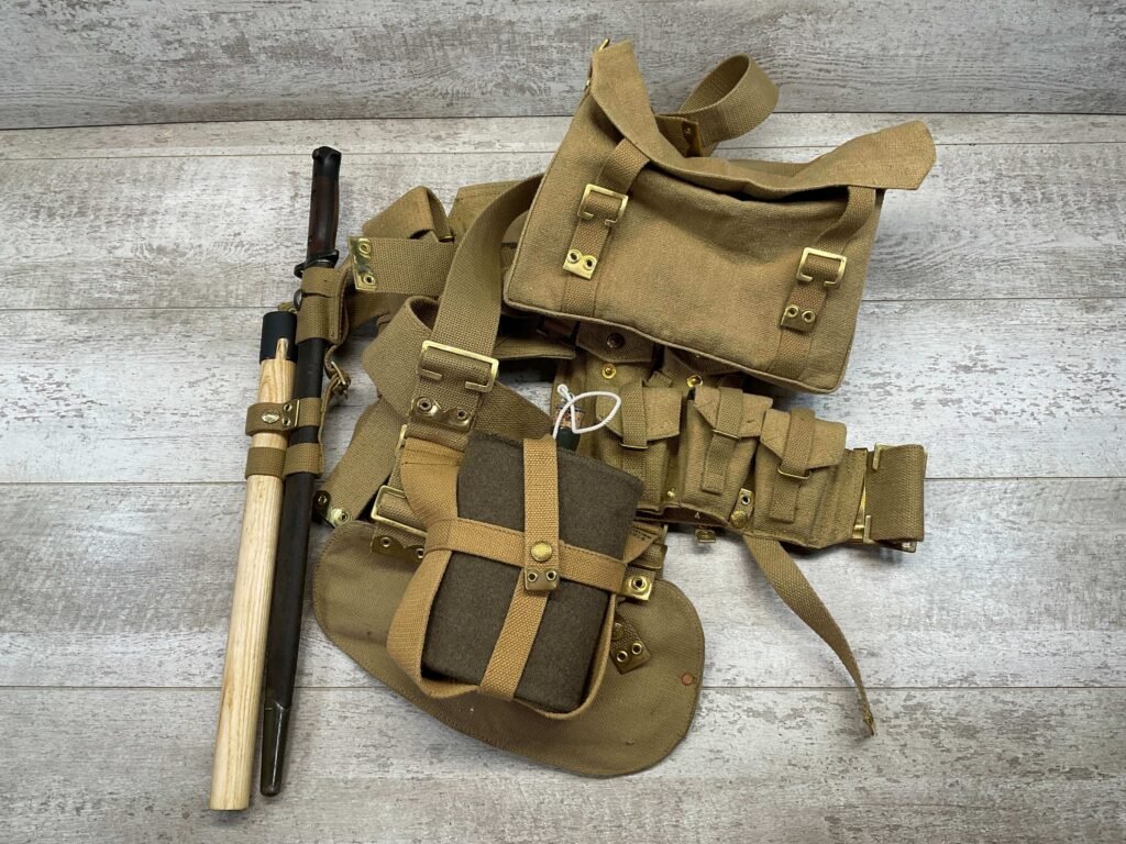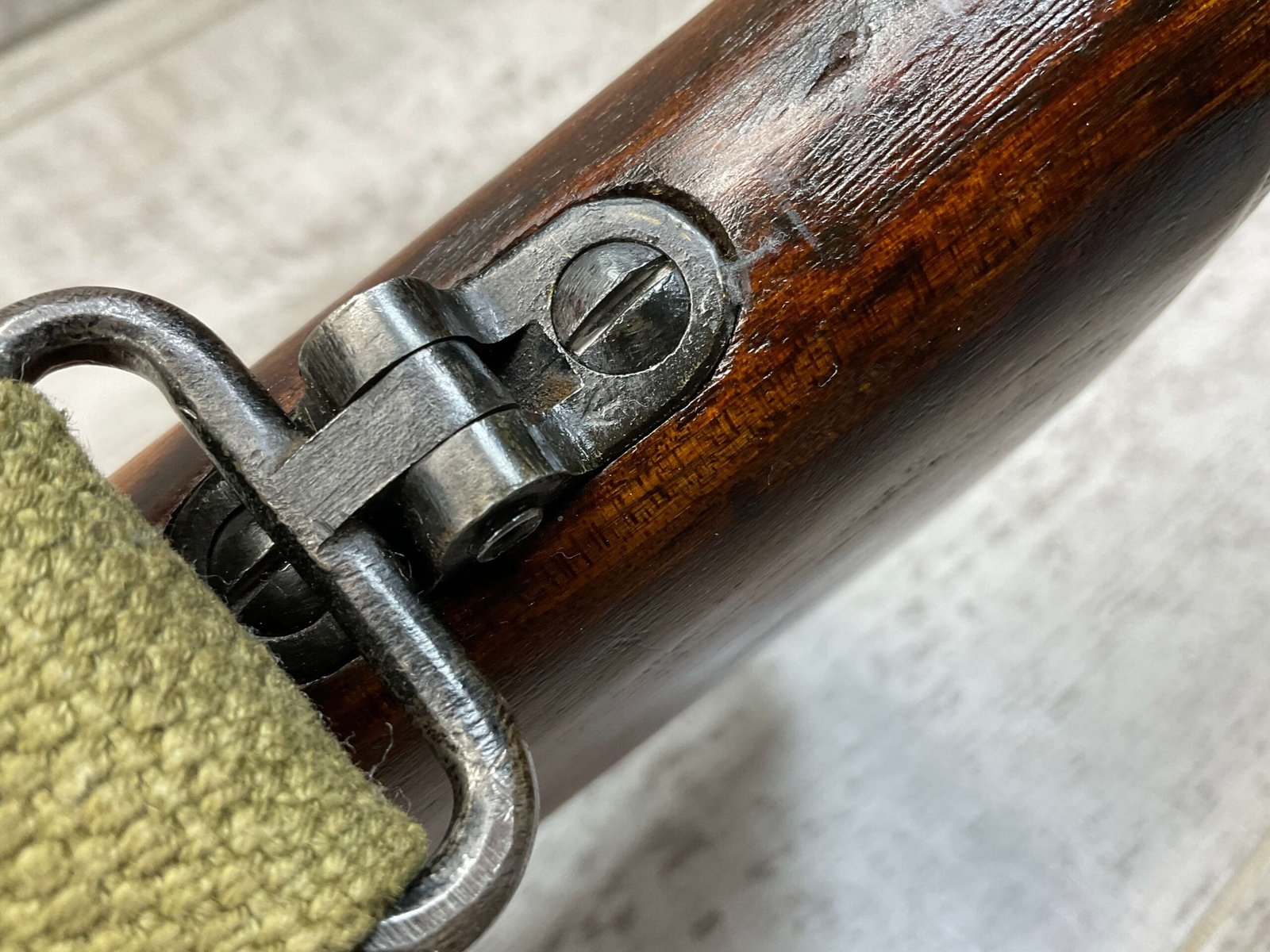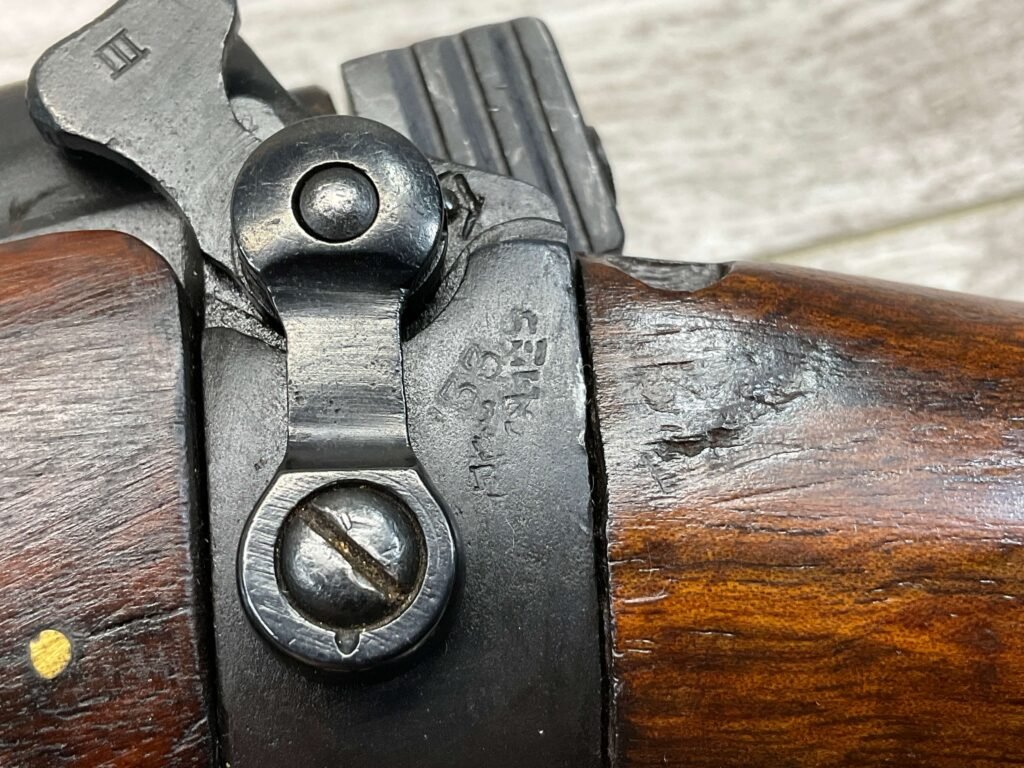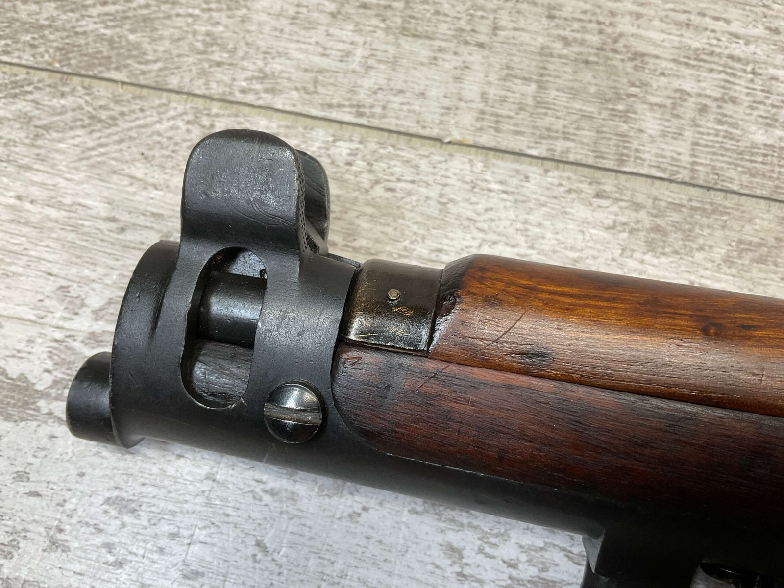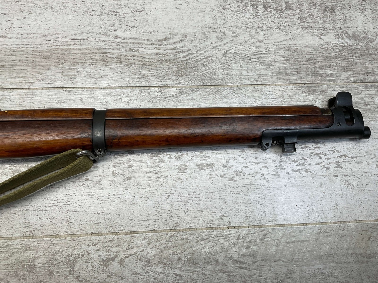 LEE ENFIELD NO 1 MK III .303 BRITISH BOLT ACTION RIFLE #7796, 303 BRITISH, ALL MATCHING EXCEPT FOR THE MAGAZINE, DARKER BORE W/ FROSTING THROUGHOUT, 90%+ PARKERIZED FINISH, VG-EXC STOCK NICELY REFINISHED, CANVAS SLING, BAYONET & REENACTMENT ITEMS INCLUDED AS WELL AS AMMO & CLIPS, EXC OVERALL & READY TO TAKE TO THE RANGE!!