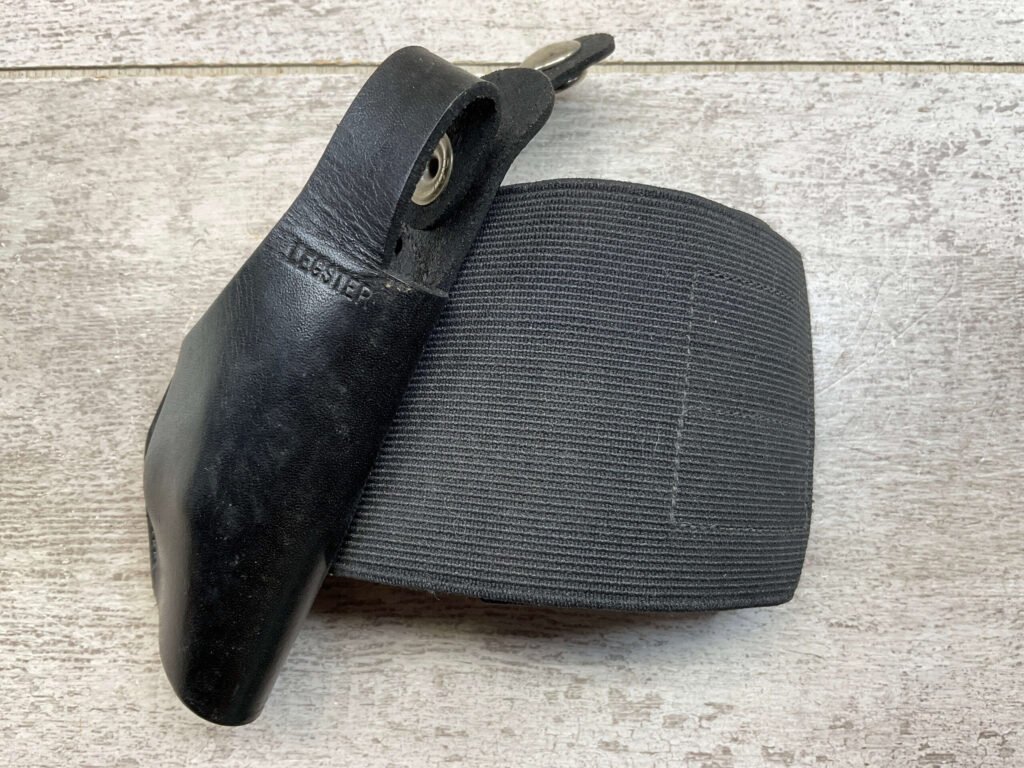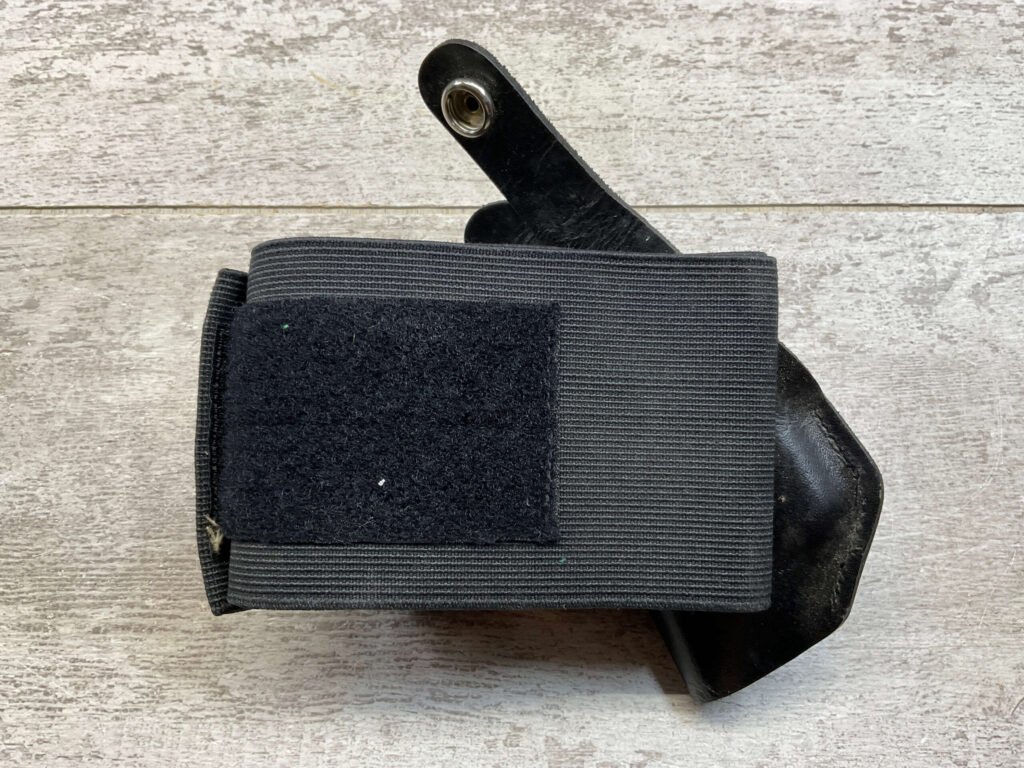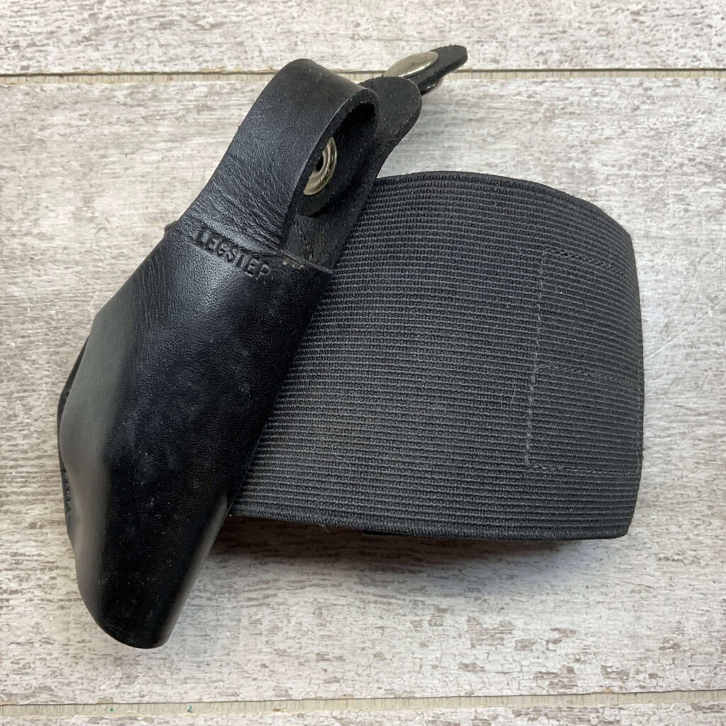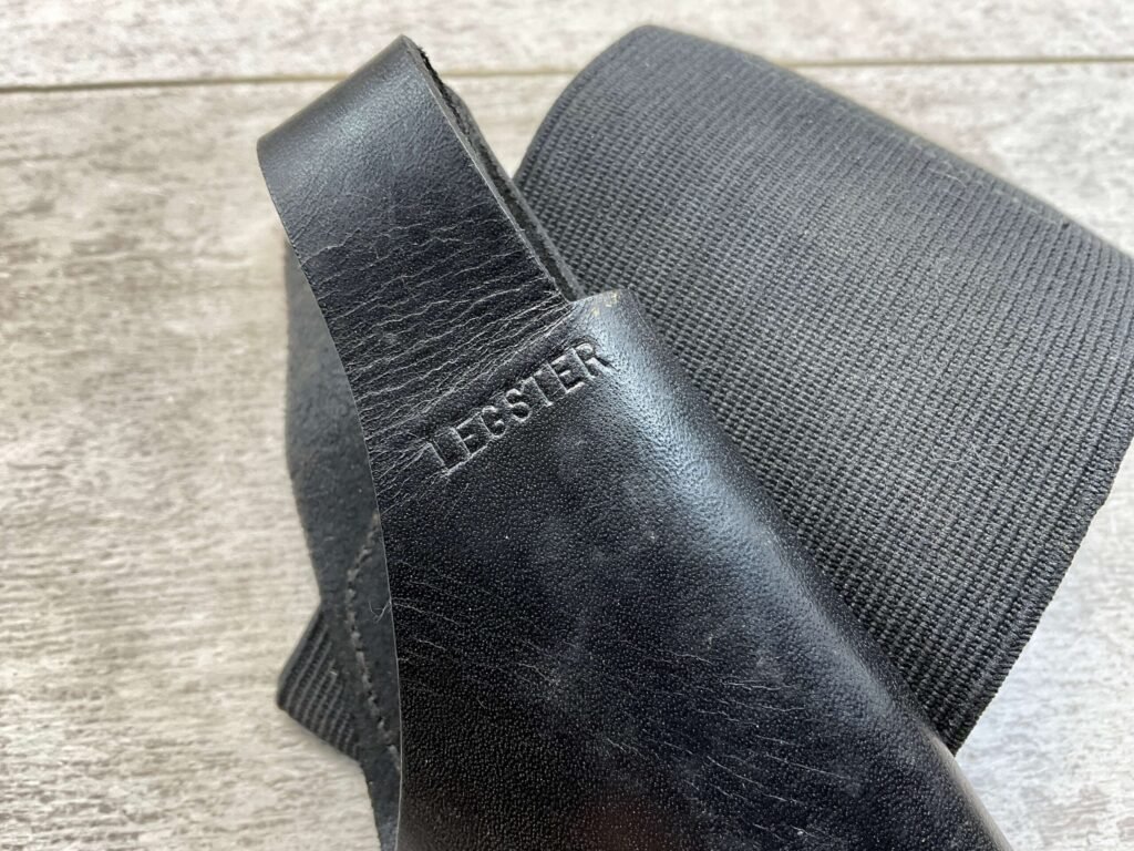 SKU#508 LEGSTER SMALL-FRAME SNUBNOSE REVOLVER EXC. BLK. LEATHER ANKLE HOLSTER WITH 3″ VELCRO ANKLE STRAP