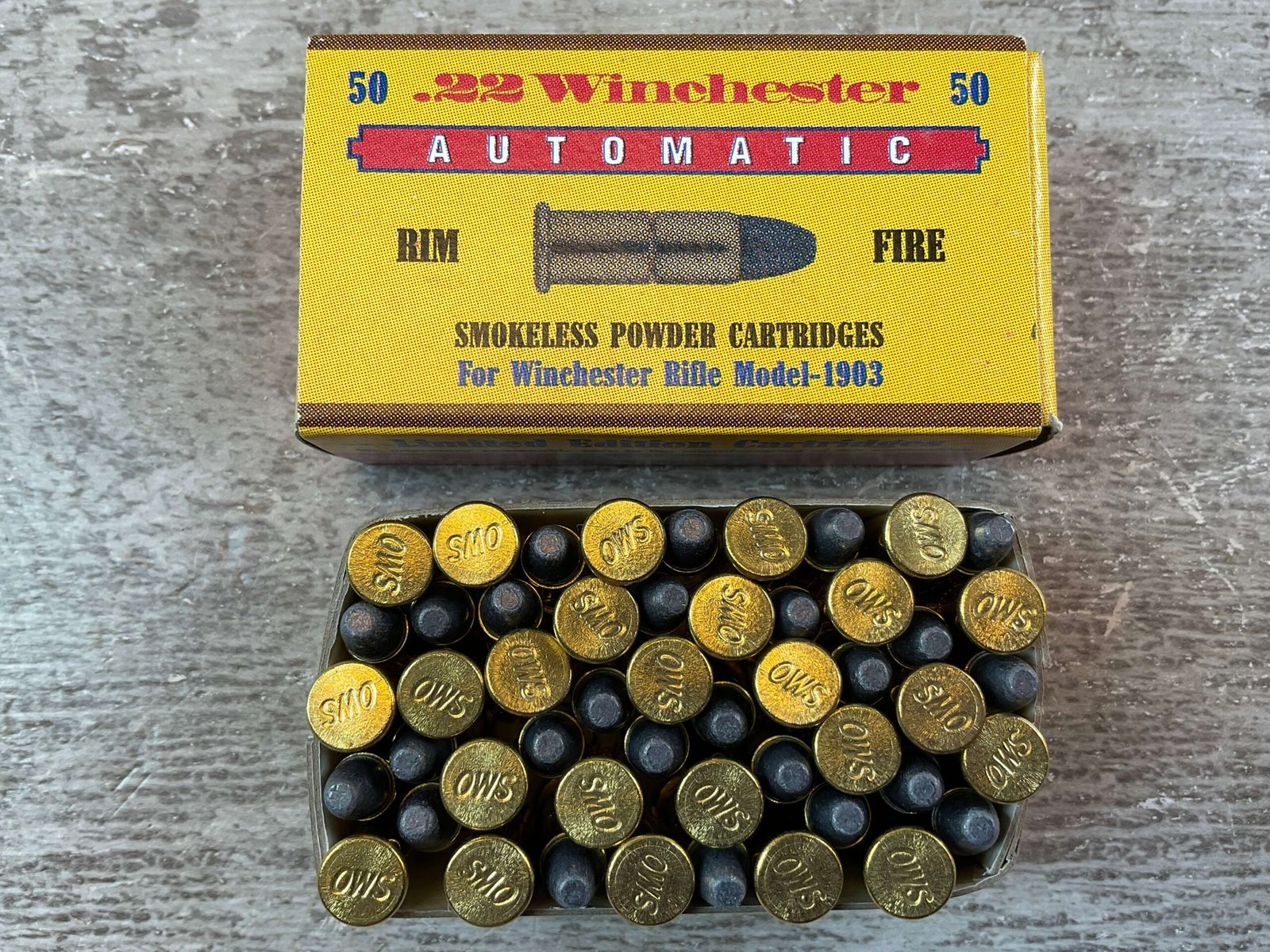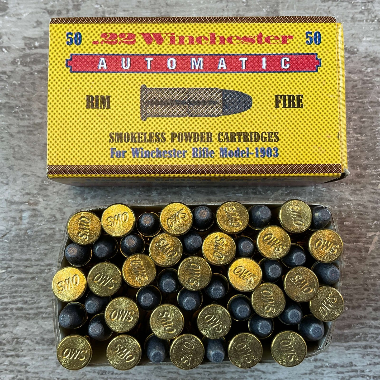 LIMITED EDITION WINCHESTER OLD WESTERN SCROUNGER .22 WIN AUTO RIM FIRE, 45 GR. SMOKELESS POWDER AMMO, NEW (QTY 50), FOR WINCHESTER RIFLE MODEL 1903, BOX IS IN FANTASTIC CONDITION AND LOOKS JUST LIKE NEW!