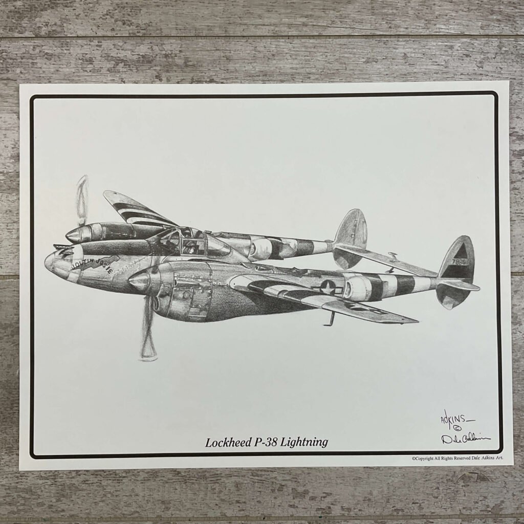 LOCKHEED P-38 LIGHTNING 11X14 PRINT, UNFRAMED BUT IN PLASTIC SLEEVE