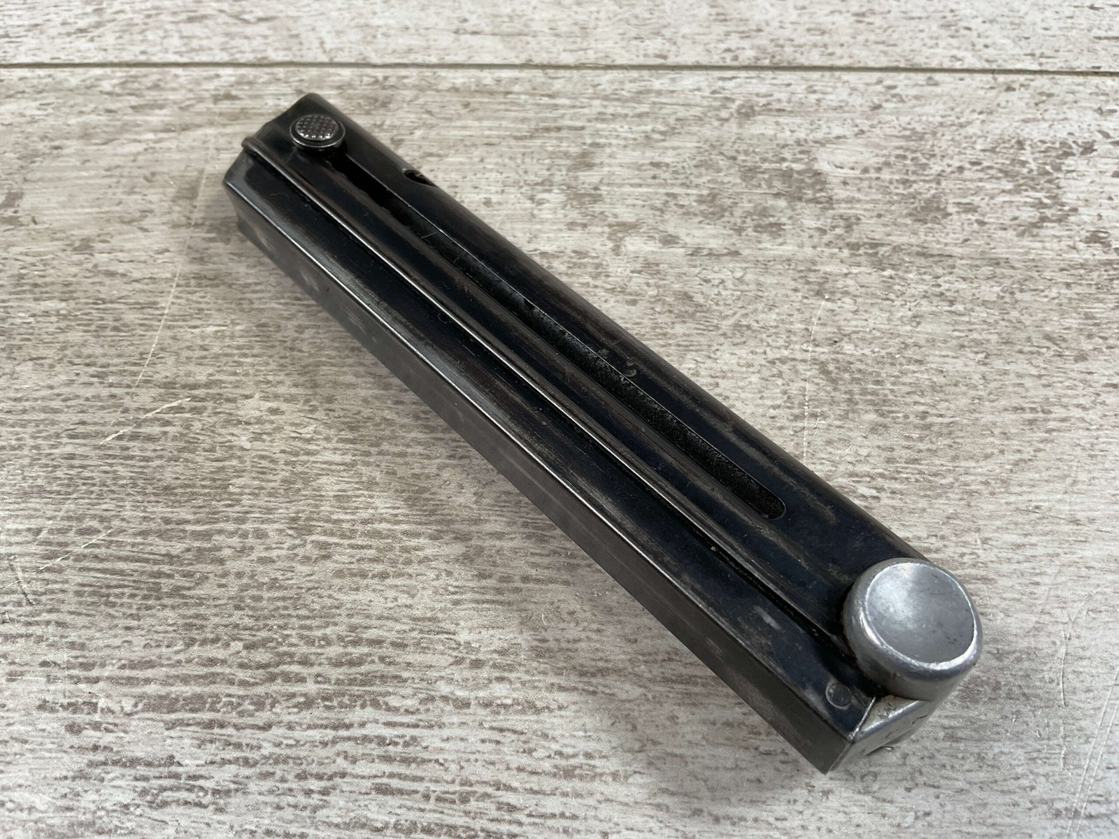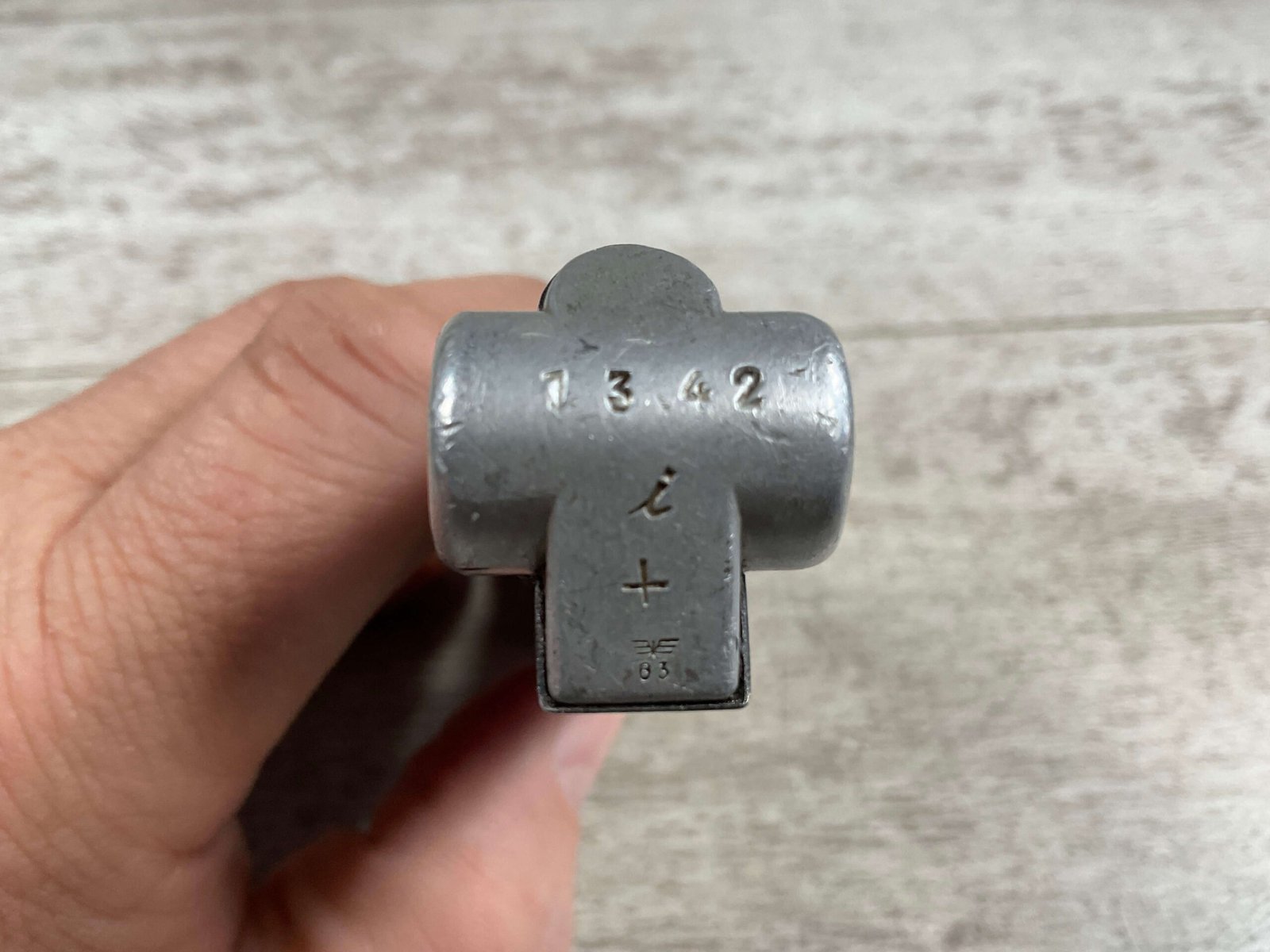 LUGER P08 E/655 ALUMINUM BASE MAGAZINE, “1342/i/+/E/655”, SMALL DING IN ALUMINUM BASE ON LEFT SIDE (SEE PICTURES), VG-EXC CONDITION