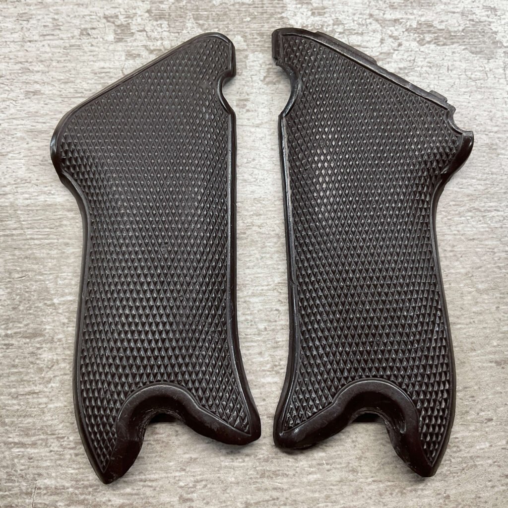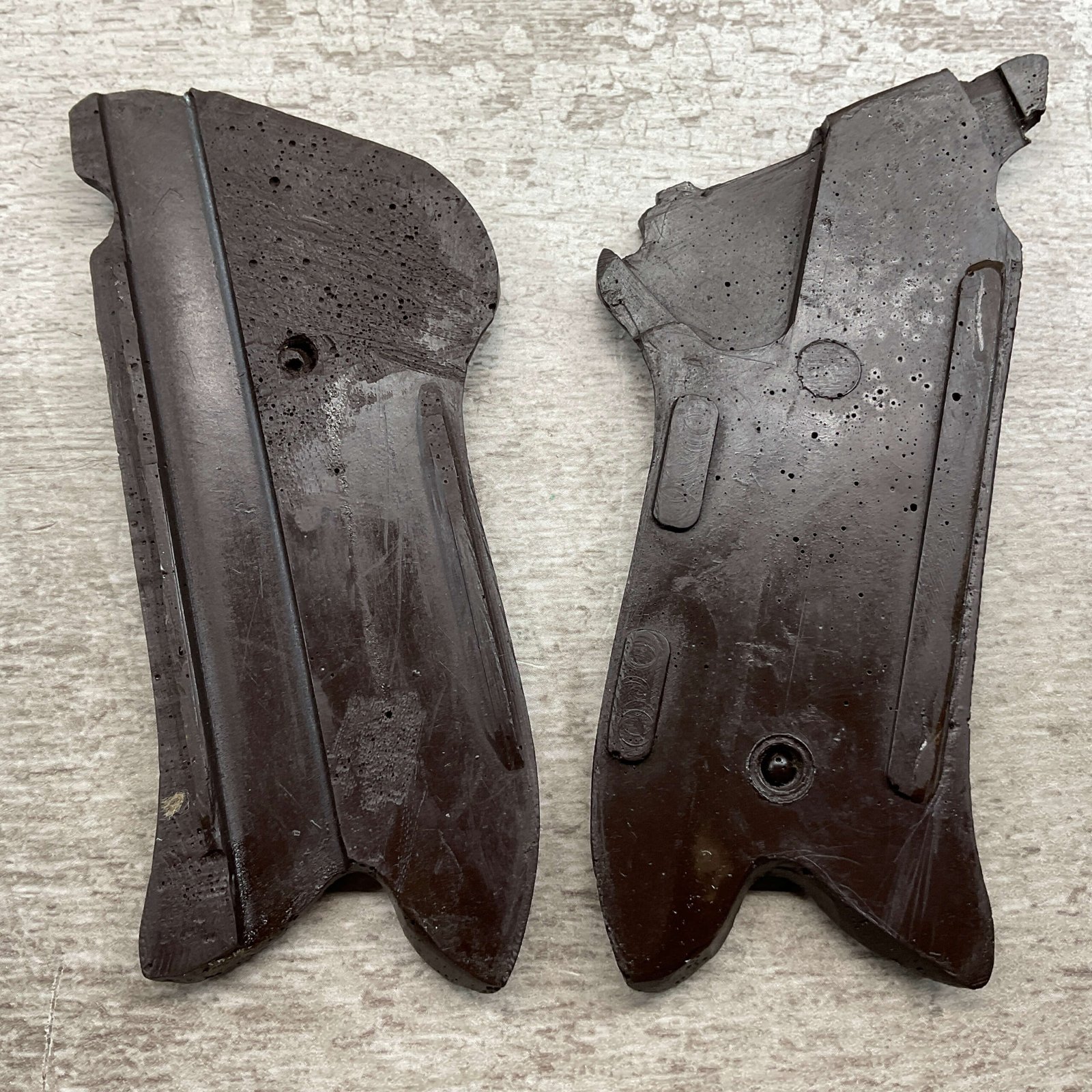 LUGER P08 KRIEGHOFF ORIGINAL BROWN RESIN GRIPS, NO CRACKS OR CHIPS, INSIDE OF RIGHT GRIP GROUND DOWN BUT THEY STILL FIT EXC