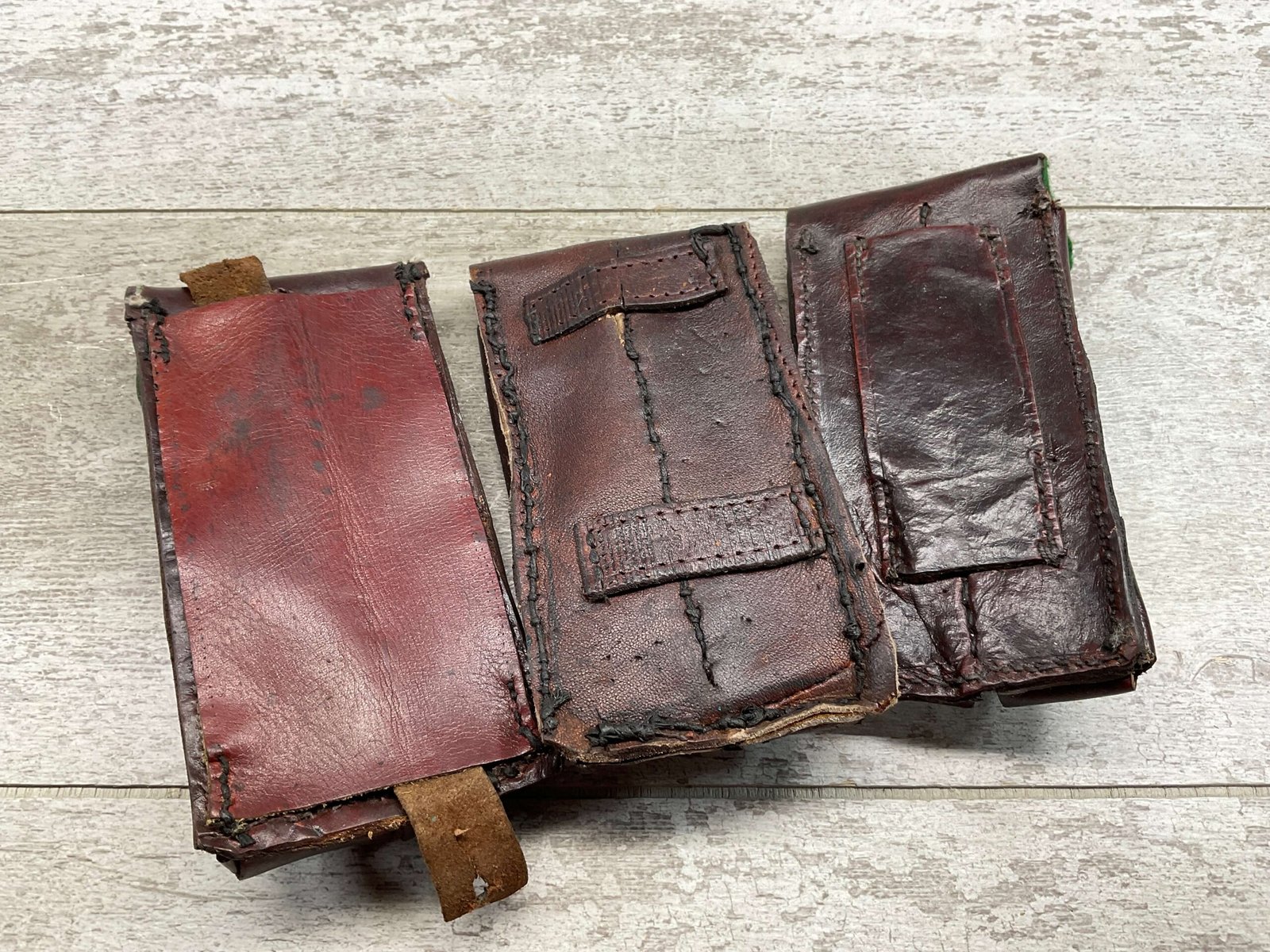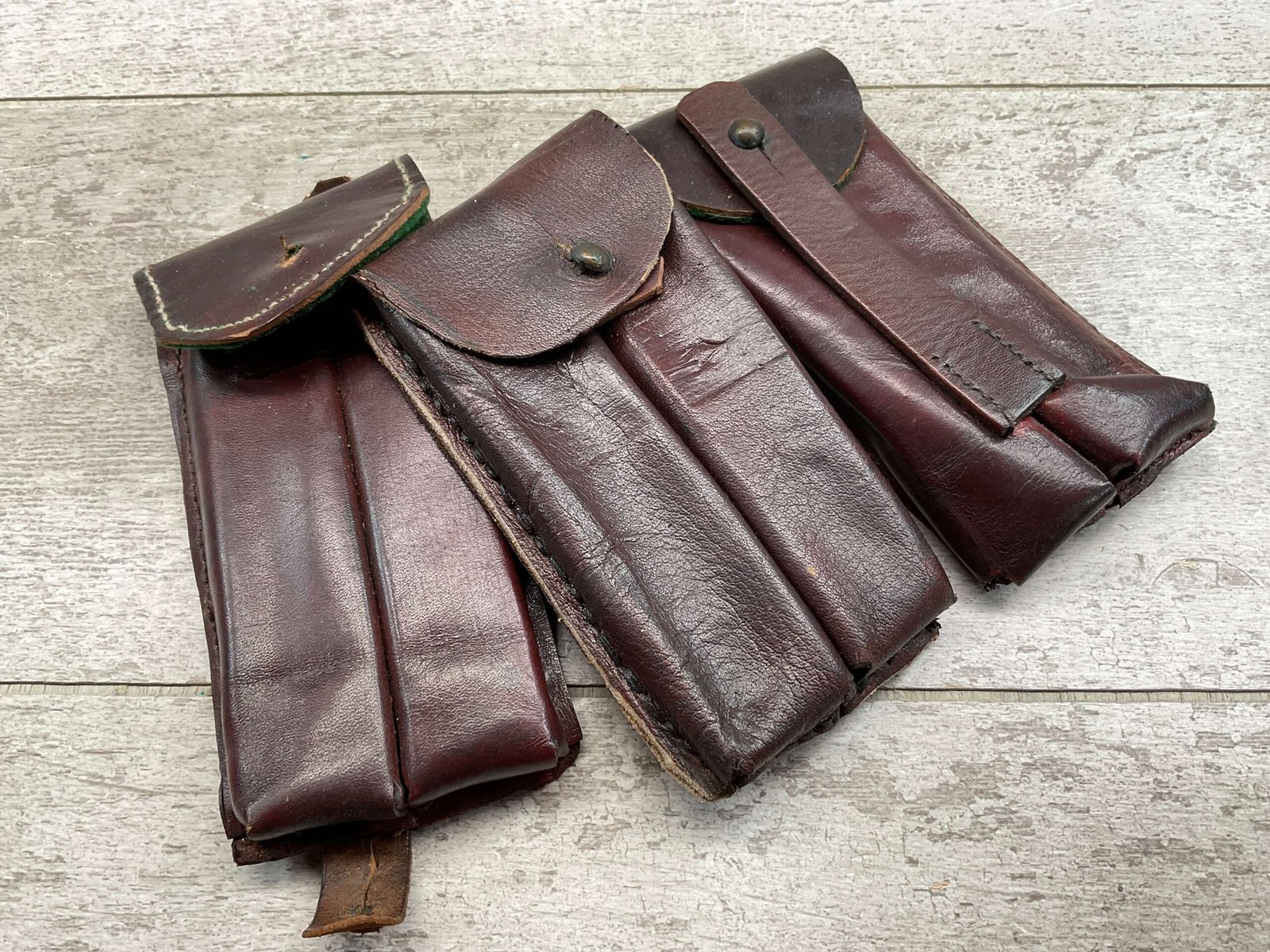 LUGER P08 LEATHER DOUBLE MAGAZINE POUCHES, QTY 3, THIS LISTING IS FOR ALL 3 IN PICTURE (ONE LOT)