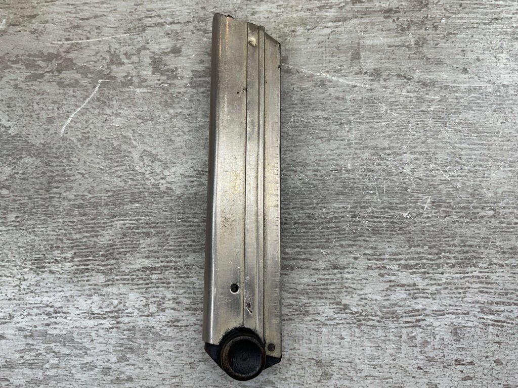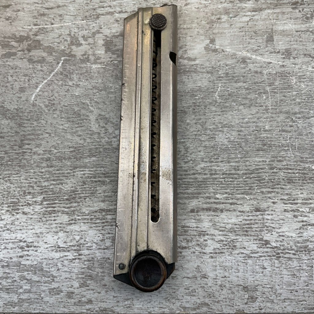 LUGER P08 MAGAZINE WOOD BASE ERFURT, WWI, “8729” “s” “+” “CROWN/GOTHIC LETTER”, VG OVERALL, STRONG SPRING, FULLY FUNCTIONING