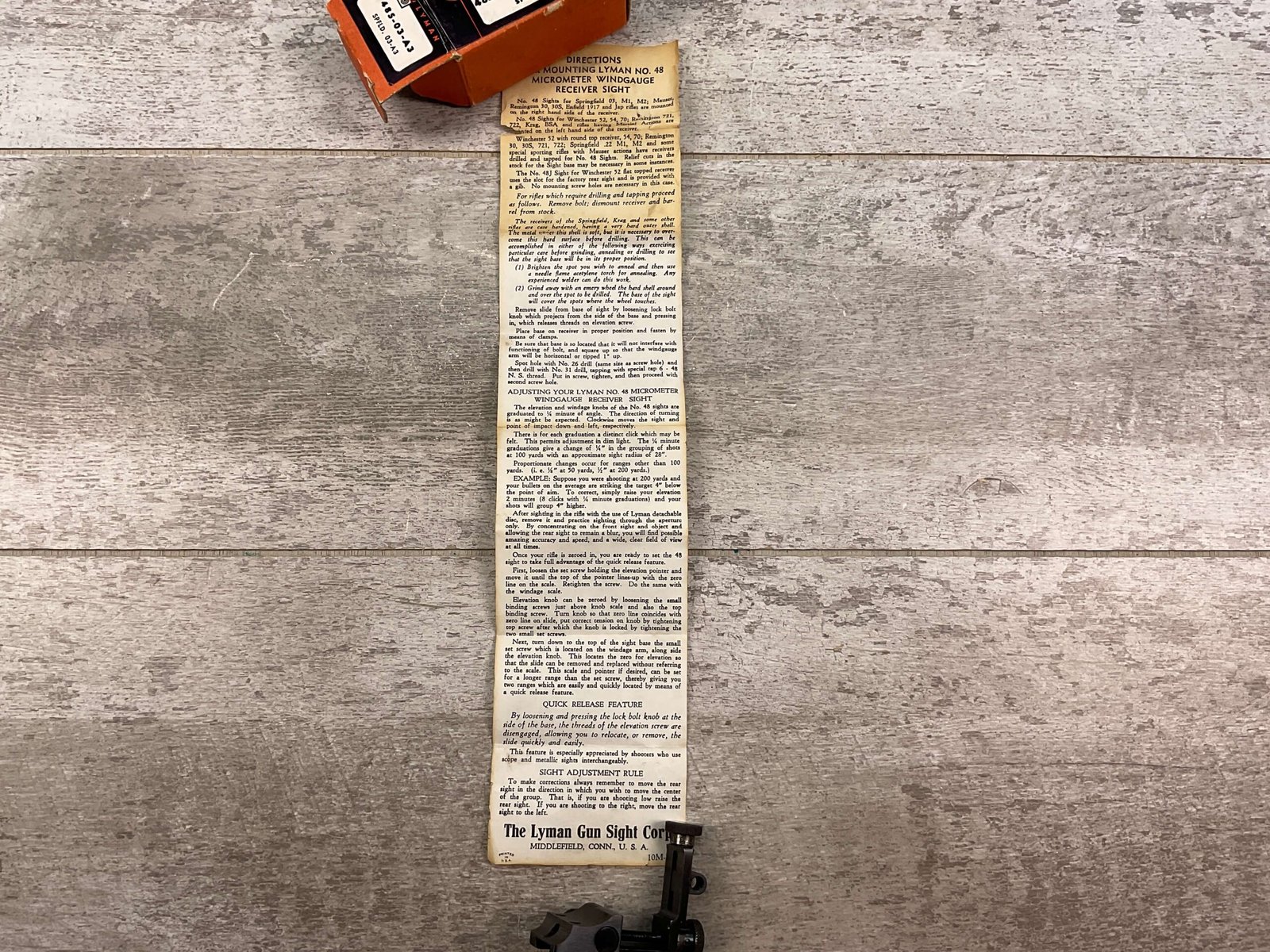 LYMAN 48S-03-A3 SPRINGFIELD 03-A3 MICROMETER RECEIVER SIGHT, VINTAGE, HAS SOME WEAR ON SPINE, BUT OVERALL IN GOOD-VG CONDITION! INCLUDES DIRECTIONS FOR MOUNTING AND ORIGINAL BOX.