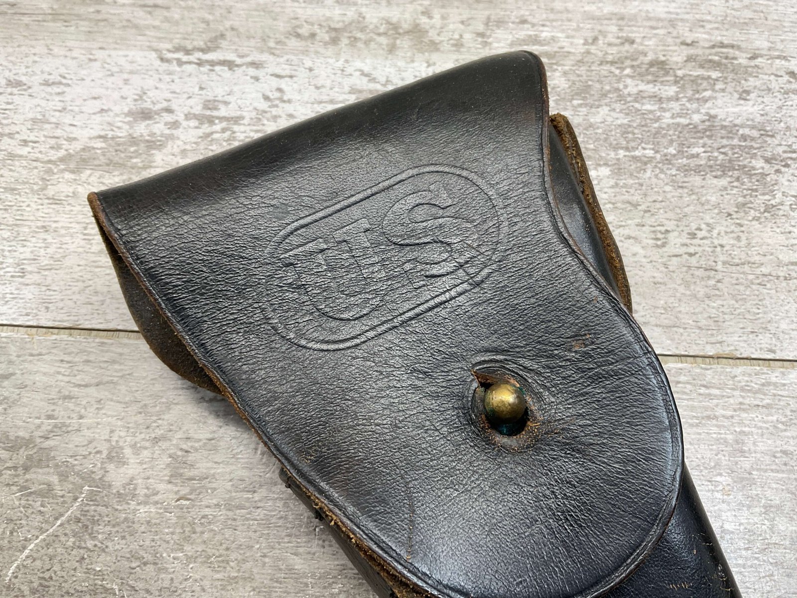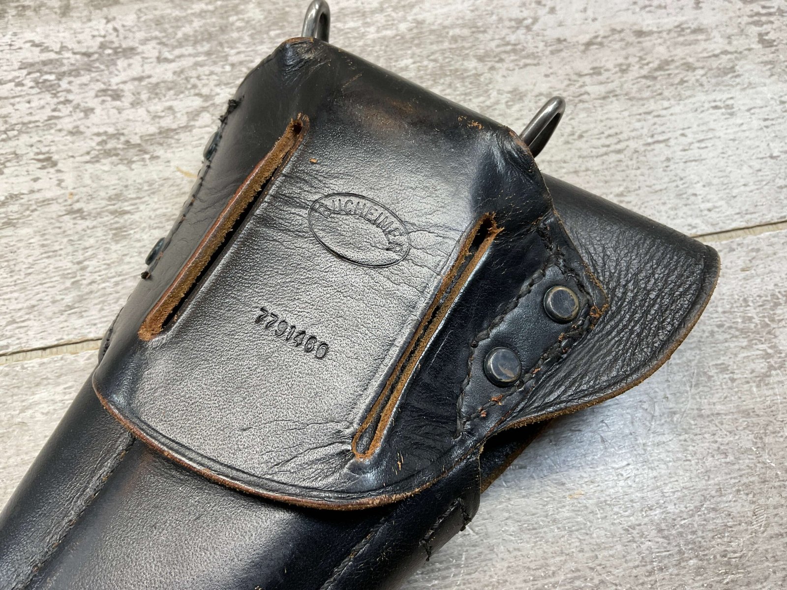 SKU#561 M1911A1 BLACK LEATHER BUCHEIMER HOLSTER, LIGHT WEAR, US EMBOSSED ON FLAP