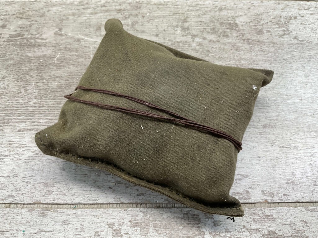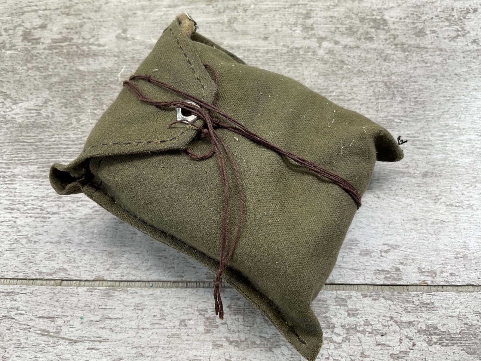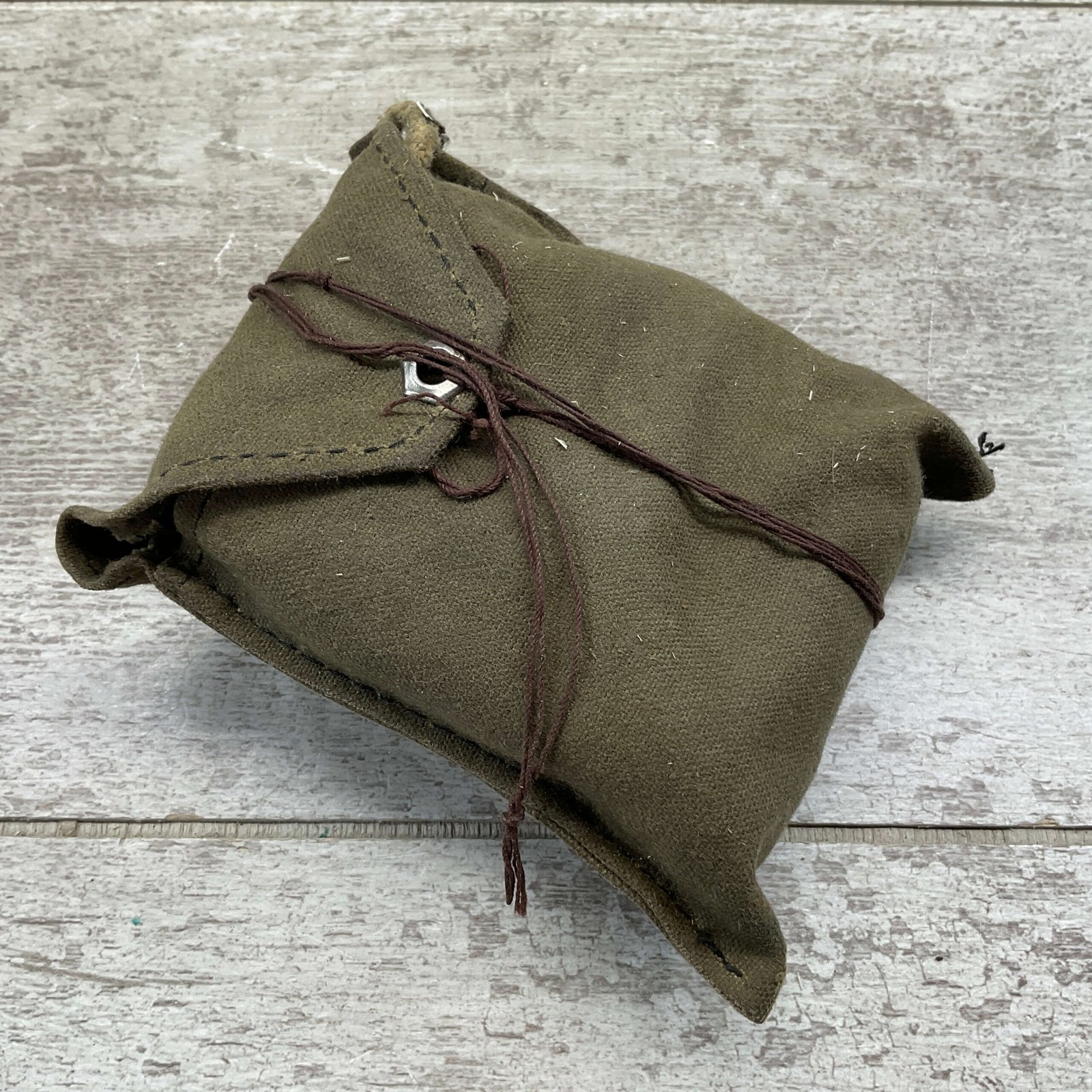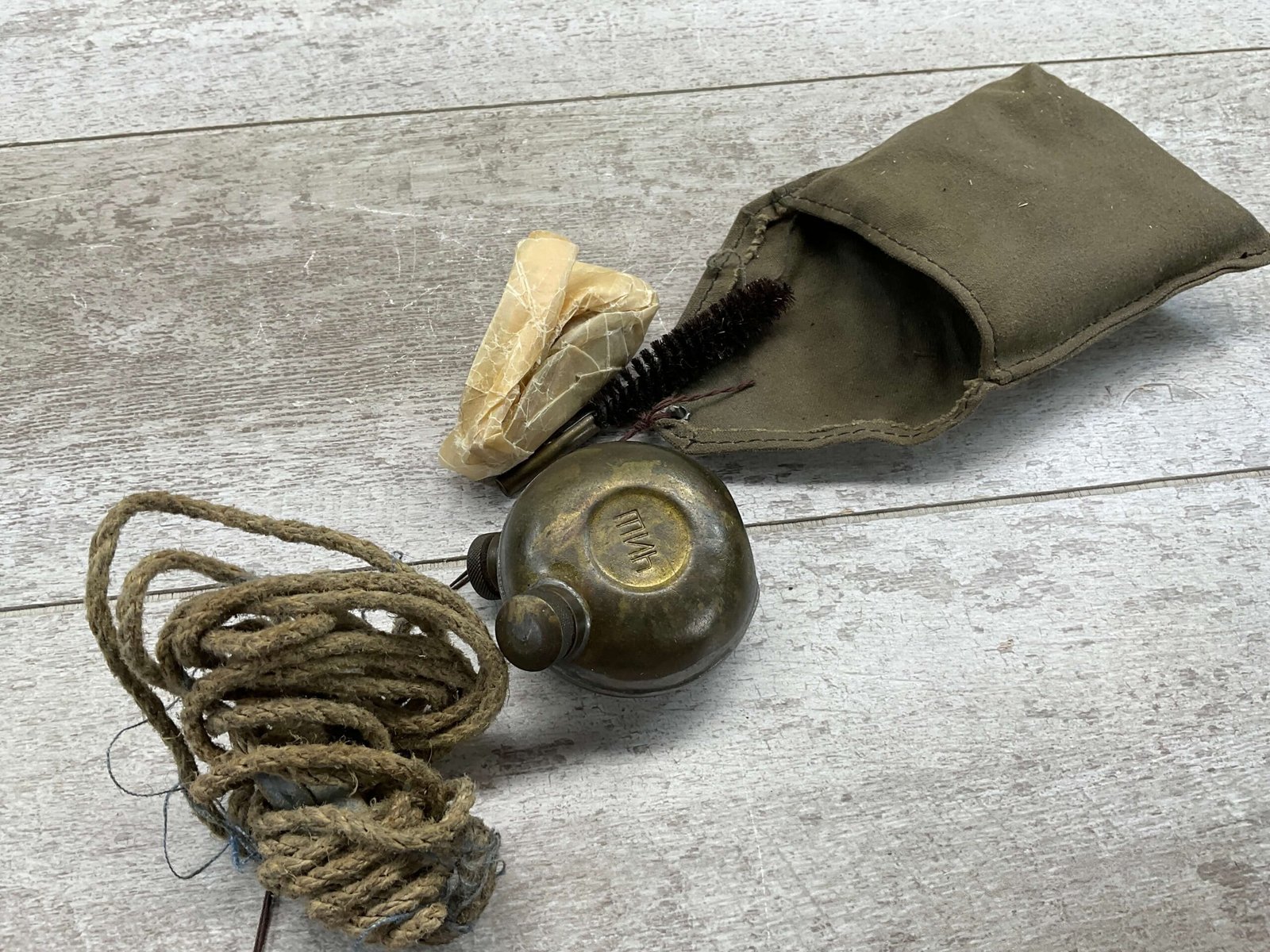 M48 YUGO MAUSER CLEANING KIT: MUZZLE PROTECTOR, BRUSH, OIL BOTTLE, PULL CORD, CANVAS POUCH IN GOOD USED CONDITION