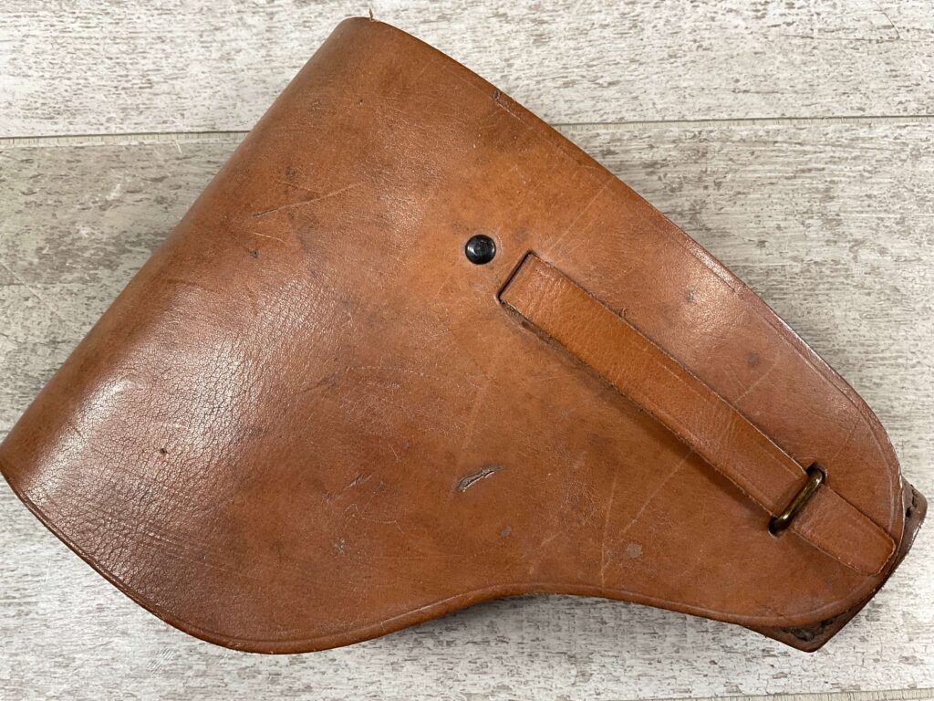 MAB MODEL D WW2 ERA FRENCH UNISSUED BROWN HOLSTER, UNISSUED, “MAX OSWALD” STAMPED INSIDE FLAP, MINTY