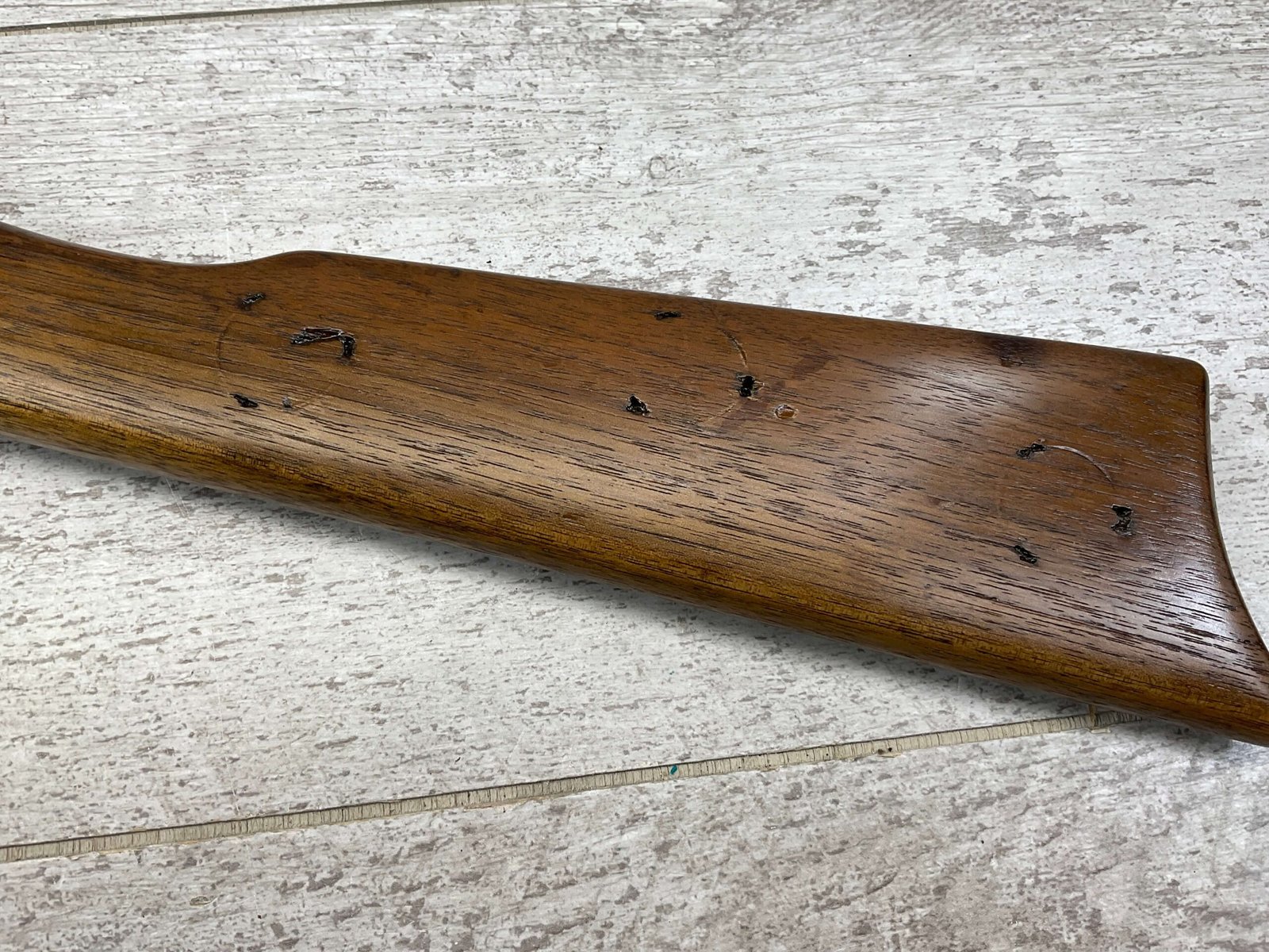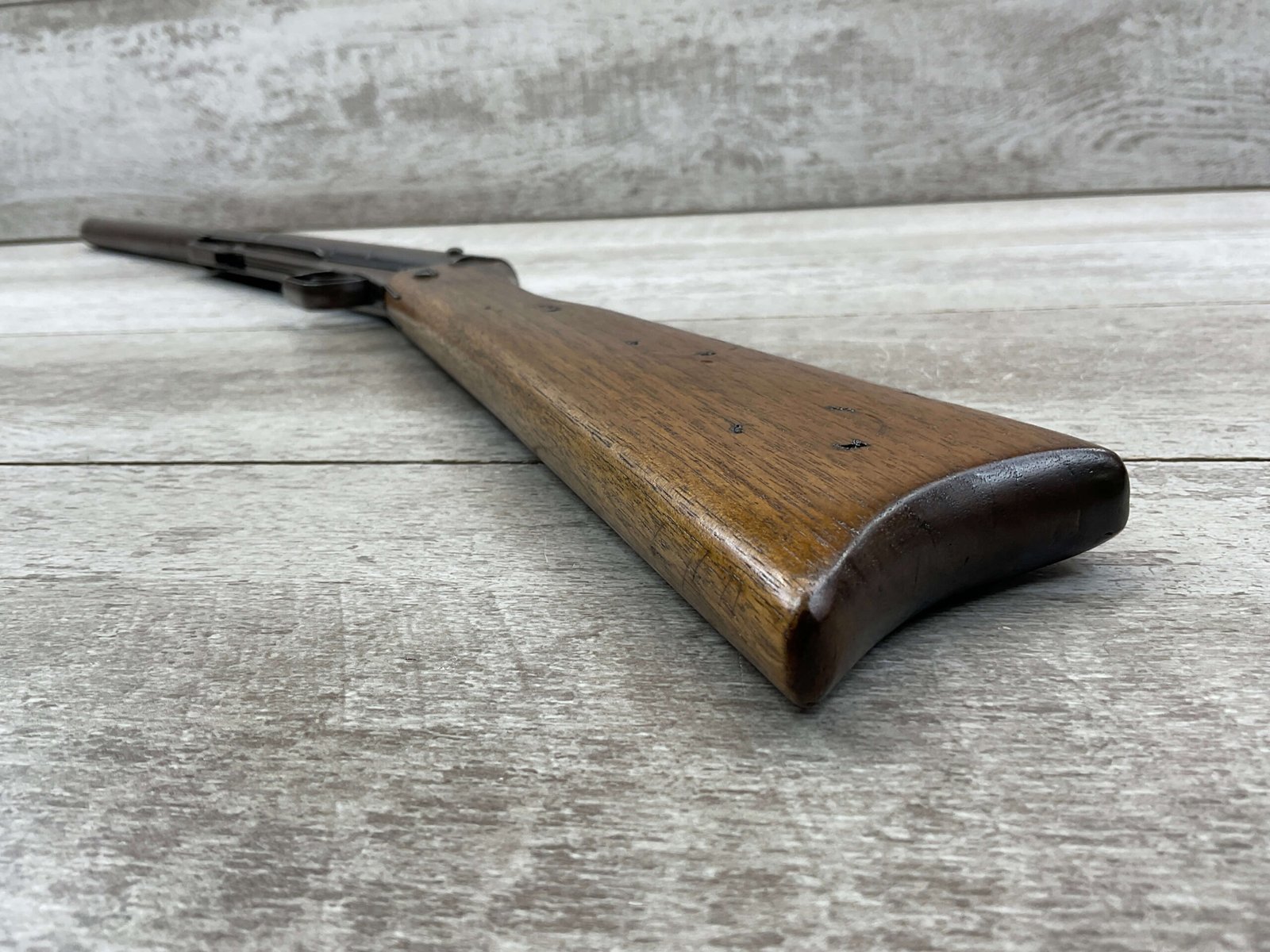 MARKHAM KING NO. 17 .177 CAL BREECH LOADER AIR RIFLE, VINTAGE, VERY RARE & HARD TO FIND, SHOT OR DART, WOOD STOCK, MFG. 1917-1932, 12 IN. BBL, IN EXC CONDITION WITH MINIMAL WEAR, SOME SMALL CIRCLE LIKE MARKS ON STOCK, OVERALL 90%