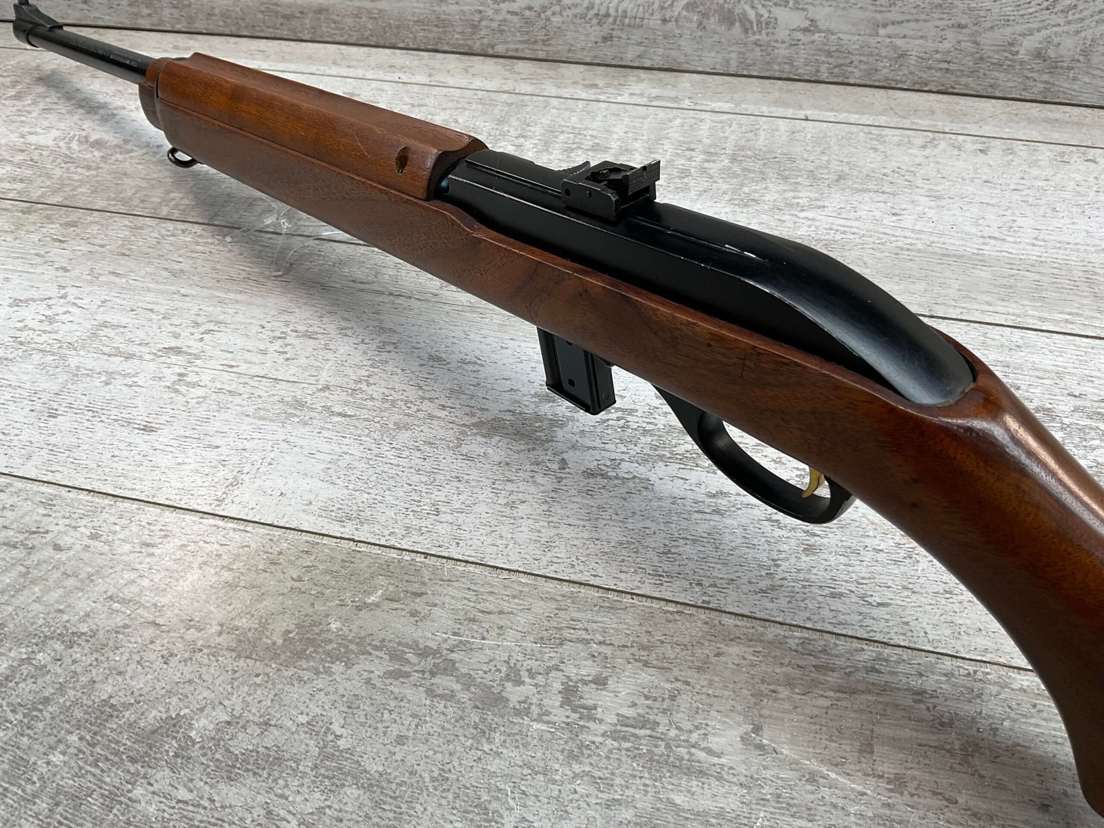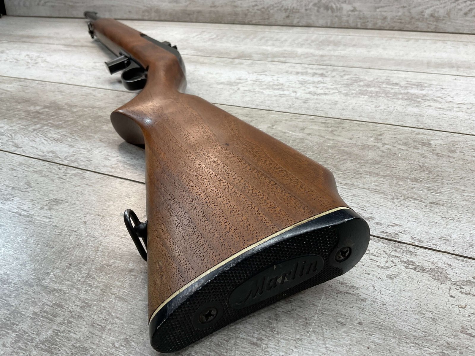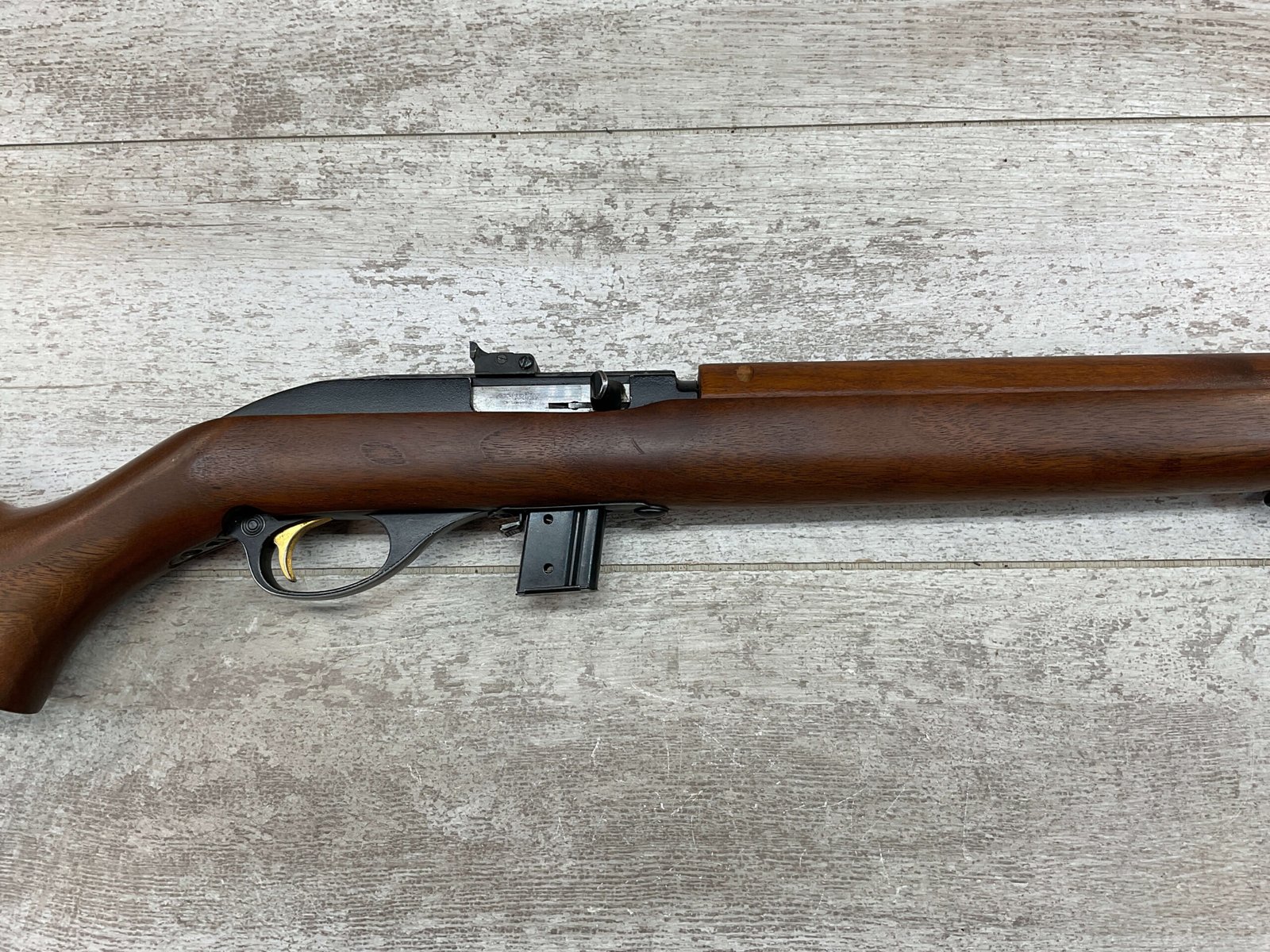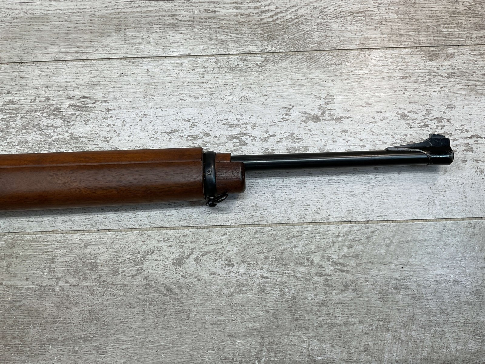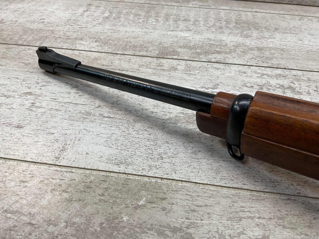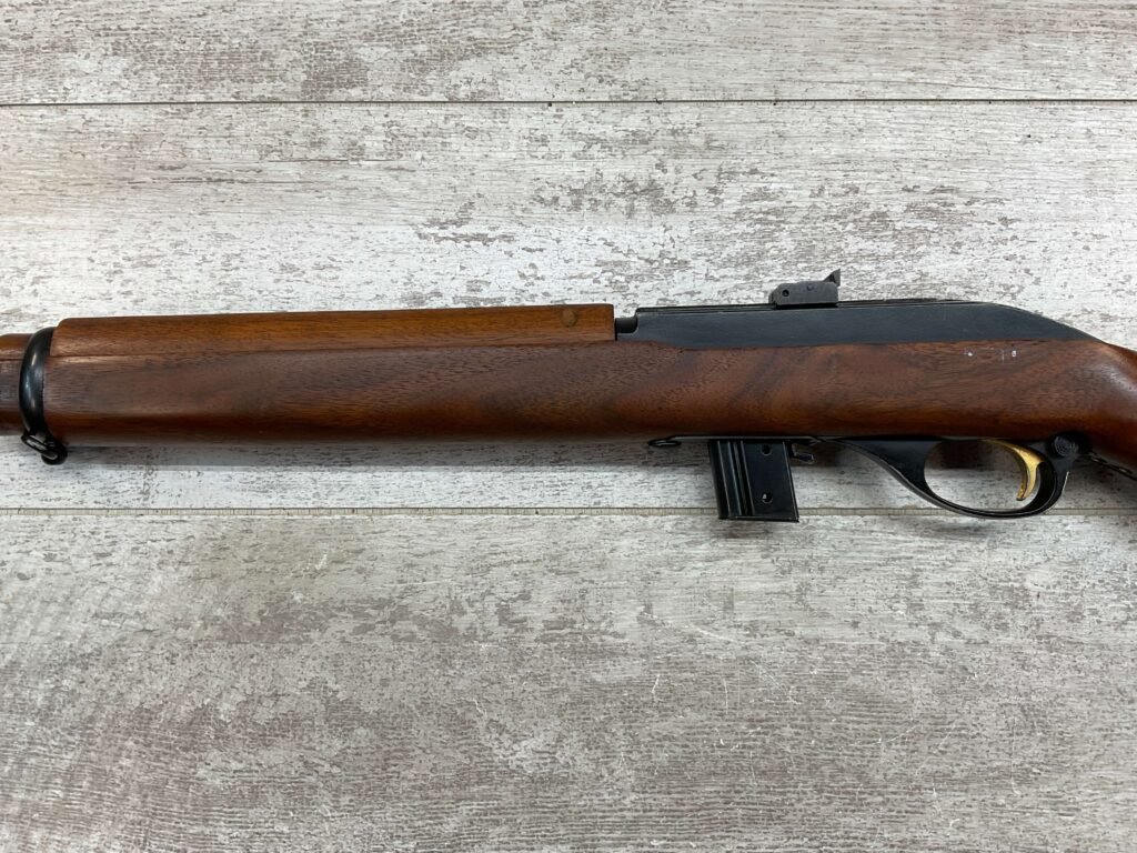 MARLIN MODEL 989 M2 .22LR SEMI AUTO RIFLE #NSN, STYLED AFTER THE US 20 M1 CARBINE, 7 ROUND MAGAZINE, EXC SMOOTH WALNUT CARBINE STYLE STOCK W/HAND GUARD/BARREL BANDS & SLING SWIVELS, 18″ BARREL, GROOVED RECEIVER FOR SCOPE, RAMPED FRONT SIGHT, ADJ REAR SIGHT, MUZZLE HAS LIGHT FINISH LOSS, FRONT & REAR SLING SWIVELS, EXC BRIGHT BORE & MICRO-GROOVE RIFLING, ORIGINAL MARLIN PLASTIC BUTT PLATE, GOLD TRIGGER, EXCEPTIONAL CONDITION & COLLECTOR QUALITY!!