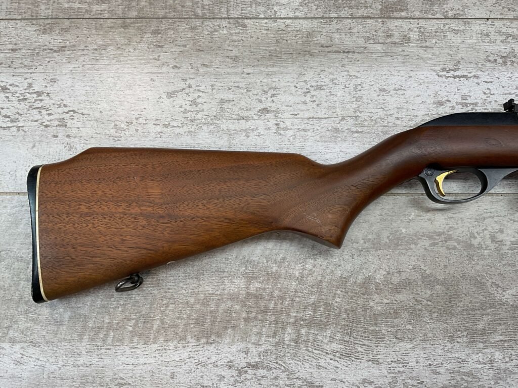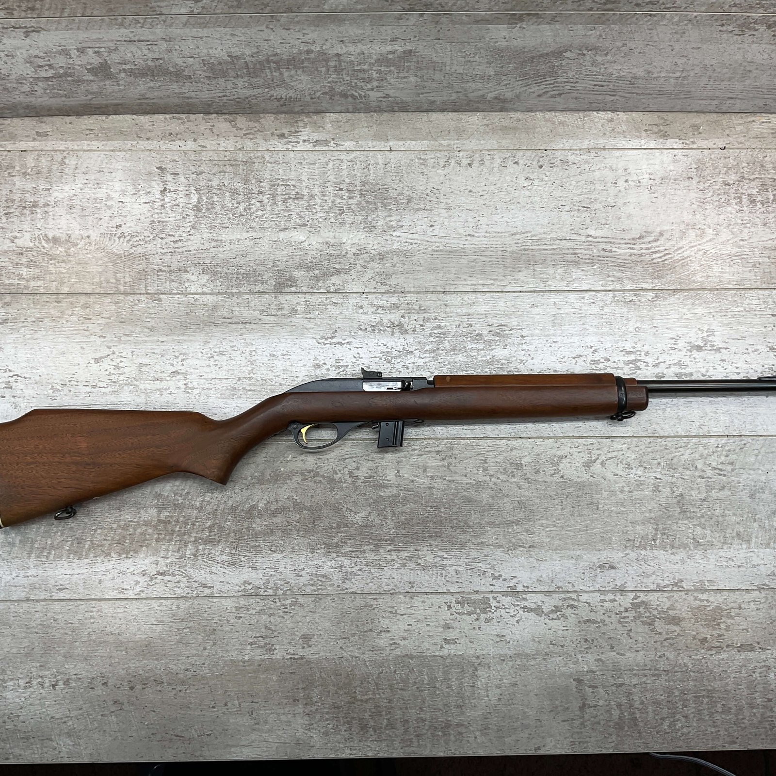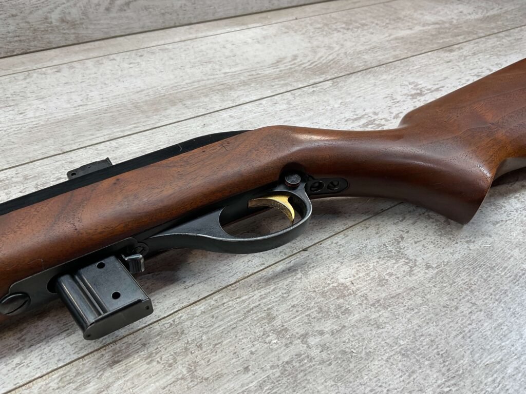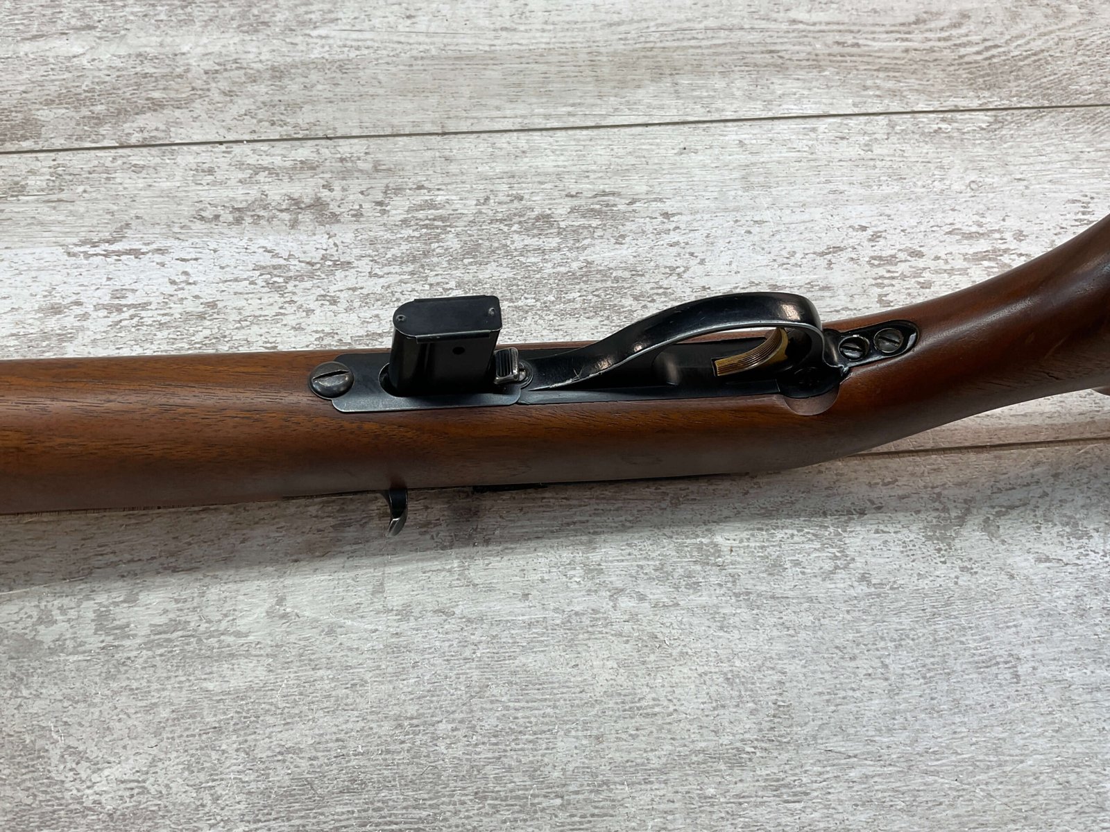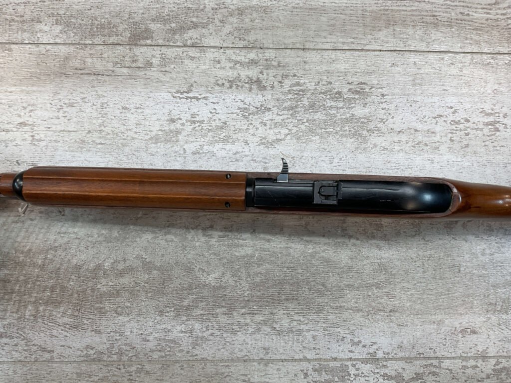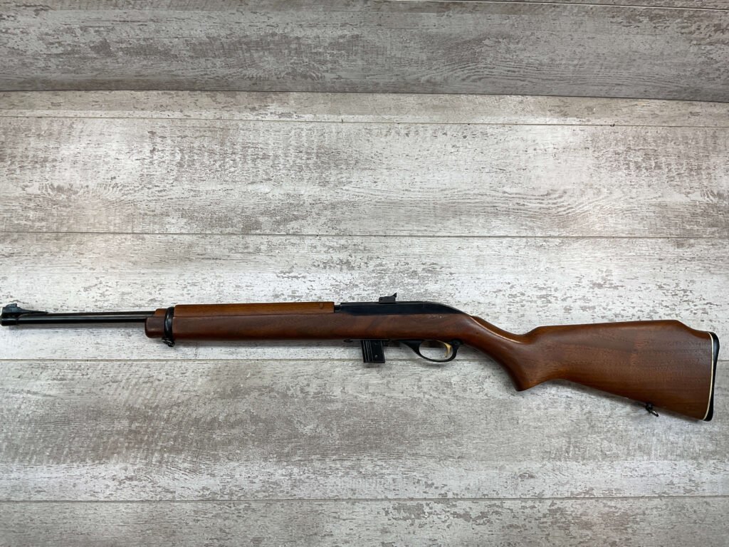 MARLIN MODEL 989 M2 .22LR SEMI AUTO RIFLE #NSN, STYLED AFTER THE US 20 M1 CARBINE, 7 ROUND MAGAZINE, EXC SMOOTH WALNUT CARBINE STYLE STOCK W/HAND GUARD/BARREL BANDS & SLING SWIVELS, 18″ BARREL, GROOVED RECEIVER FOR SCOPE, RAMPED FRONT SIGHT, ADJ REAR SIGHT, MUZZLE HAS LIGHT FINISH LOSS, FRONT & REAR SLING SWIVELS, EXC BRIGHT BORE & MICRO-GROOVE RIFLING, ORIGINAL MARLIN PLASTIC BUTT PLATE, GOLD TRIGGER, EXCEPTIONAL CONDITION & COLLECTOR QUALITY!!