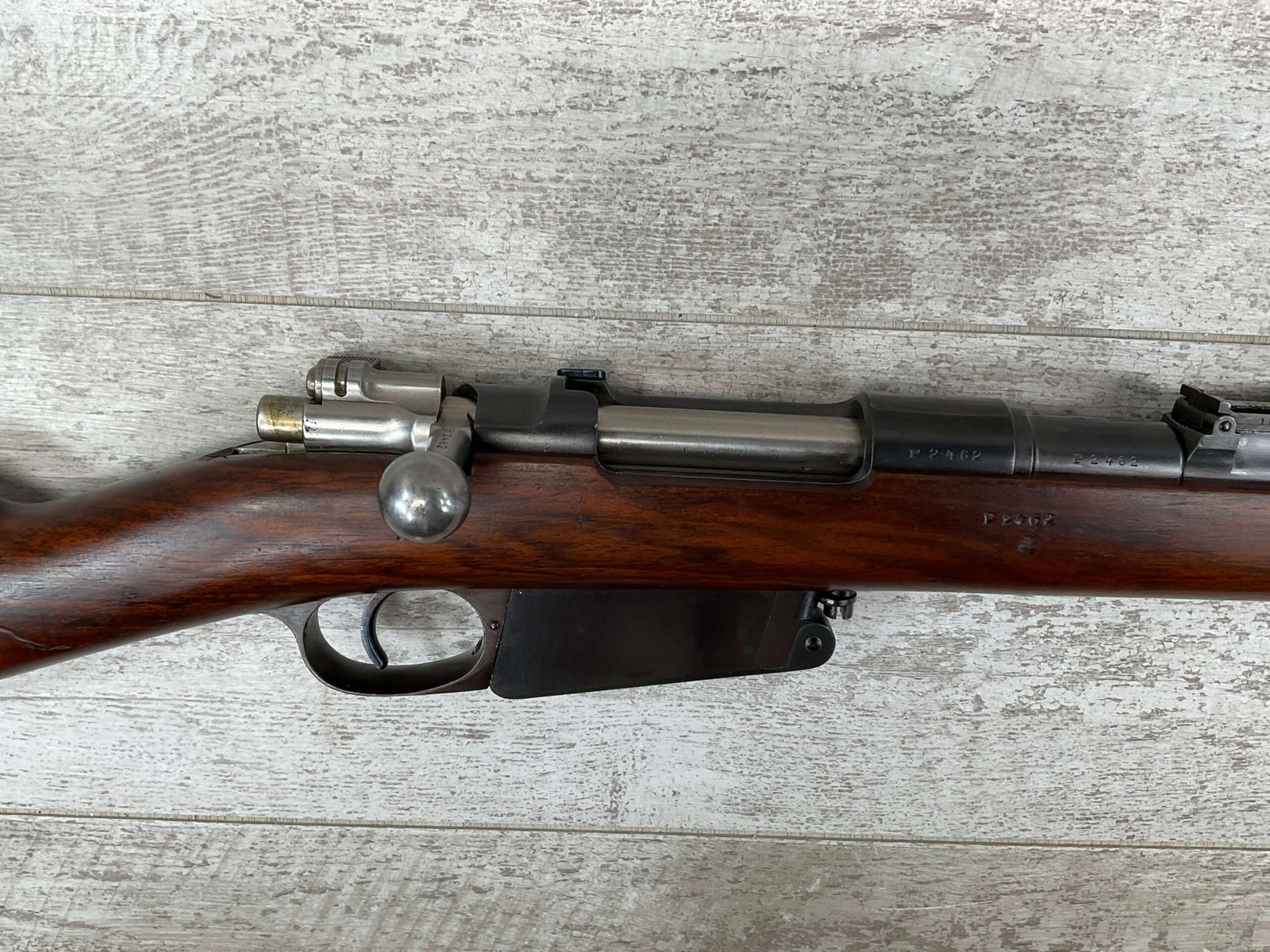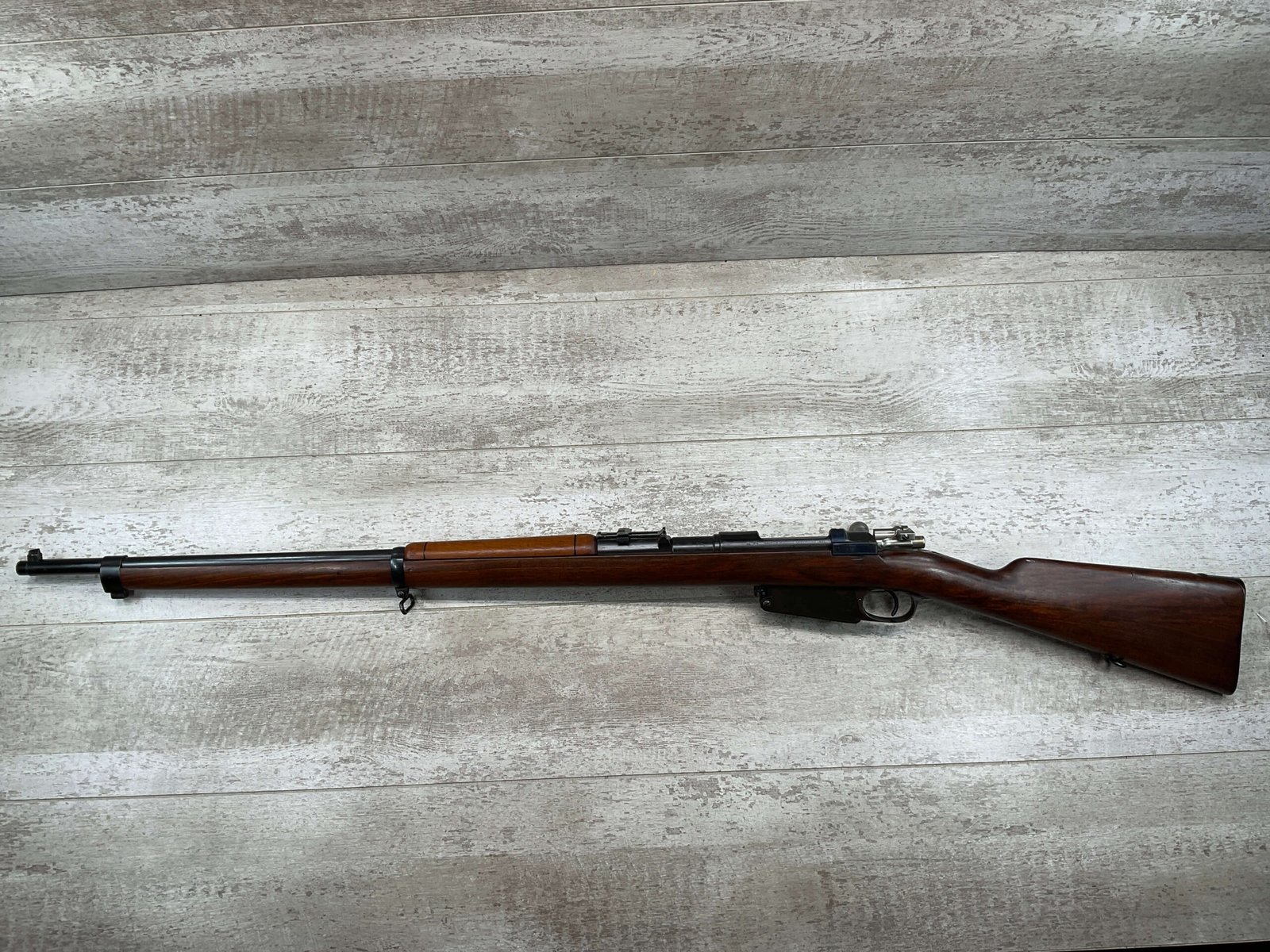 The Mauser 1891 Argentine Bolt Action Rifle in 7.65mm, featuring the distinctive ground crest, is a historical gem with roots in the late 19th century. This rifle served as the standard issue for the Argentine military and showcases the renowned Mauser bolt-action design. Chambered in 7.65mm, it combines precision with historical significance. The ground crest, indicative of its military service, adds a unique touch to this Mauser, connecting enthusiasts to a bygone era and the rifle’s service in Argentine military history.