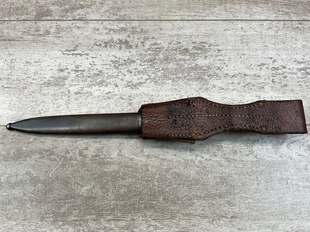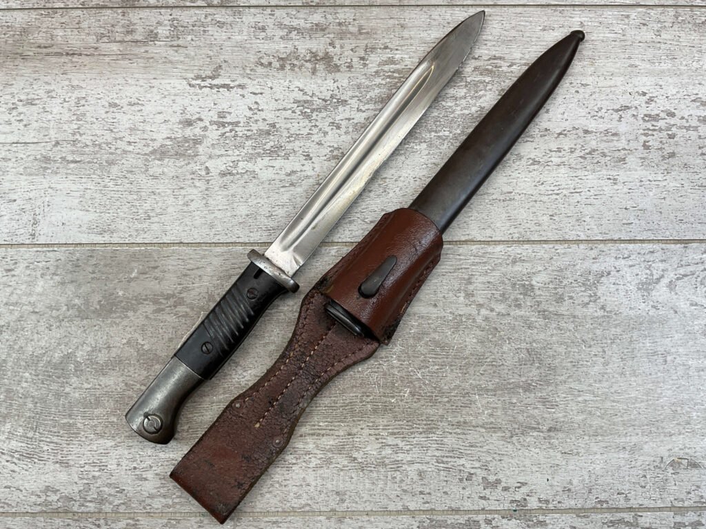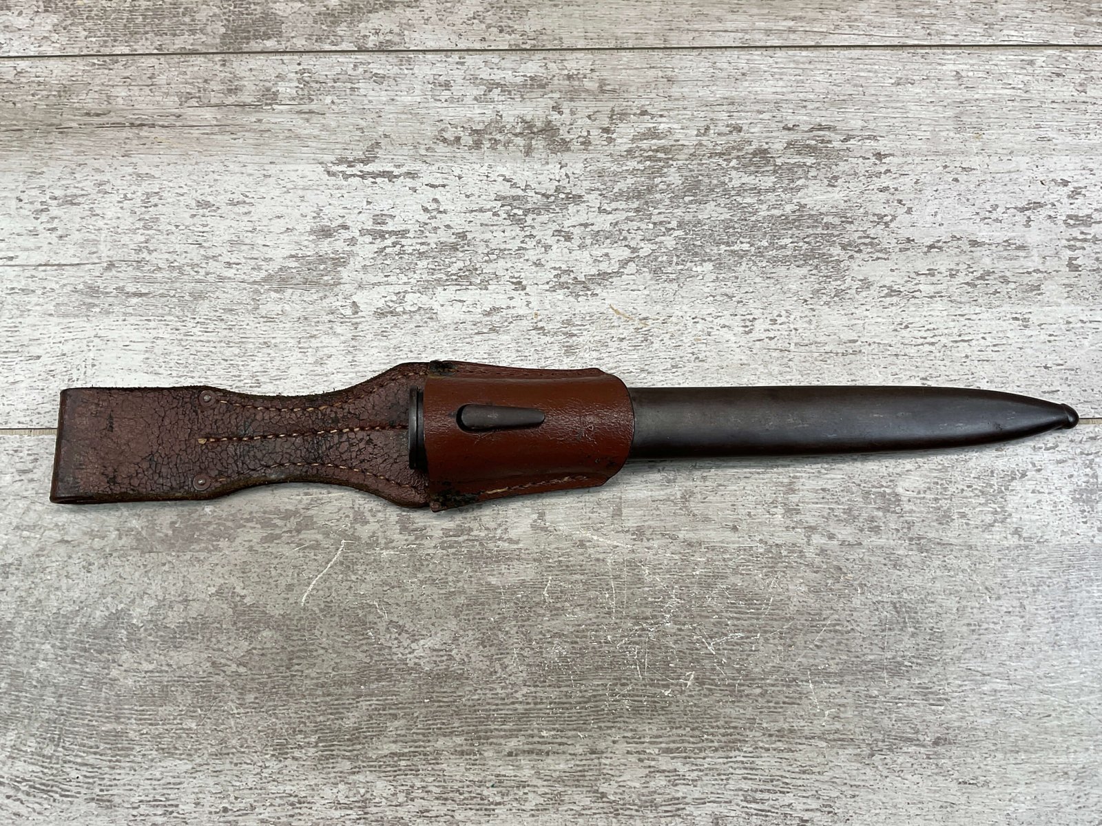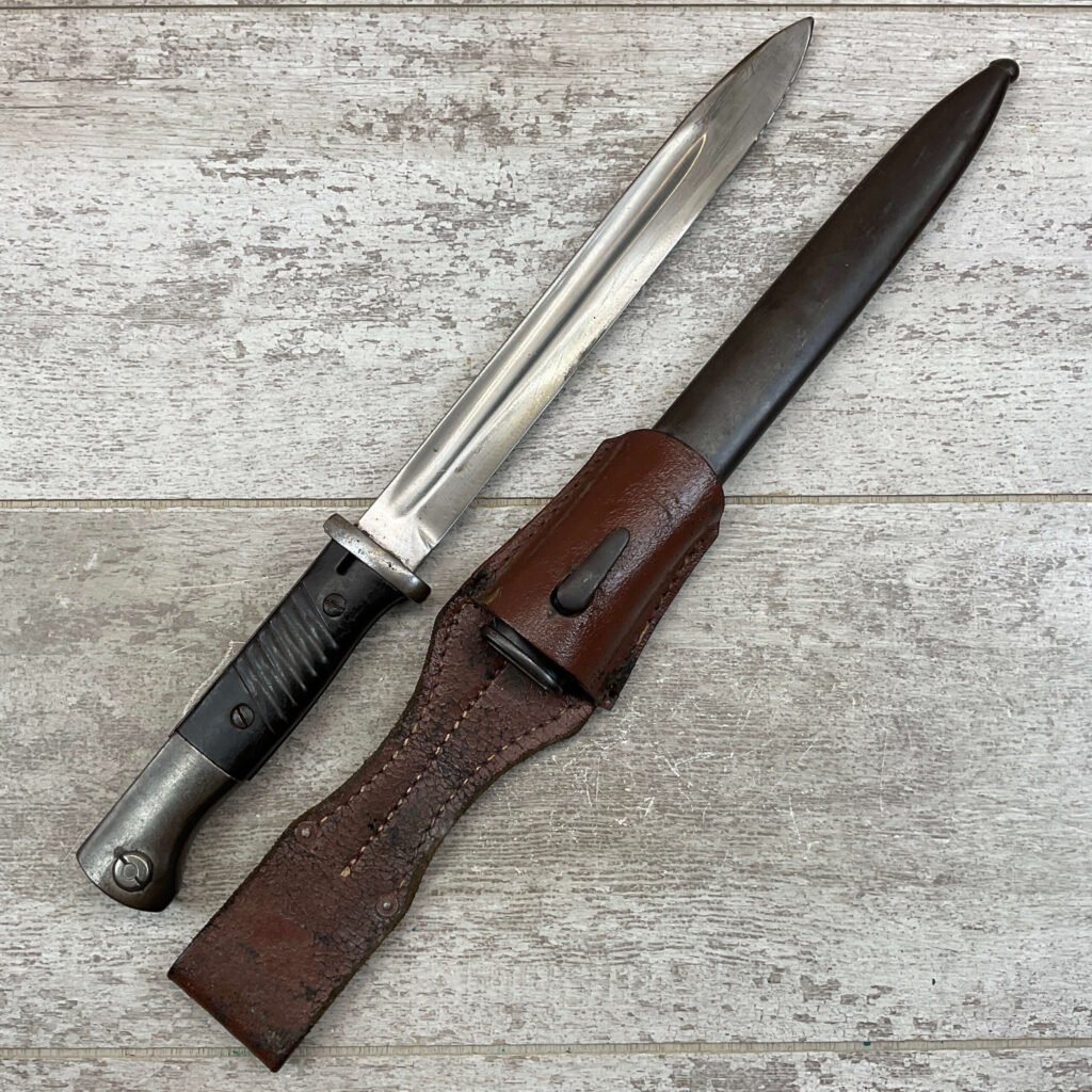 MAUSER 98K BAYONET W/SCABBARD & FROG, RED BAKELITE HANDLE, ONE SMALL MARKING.