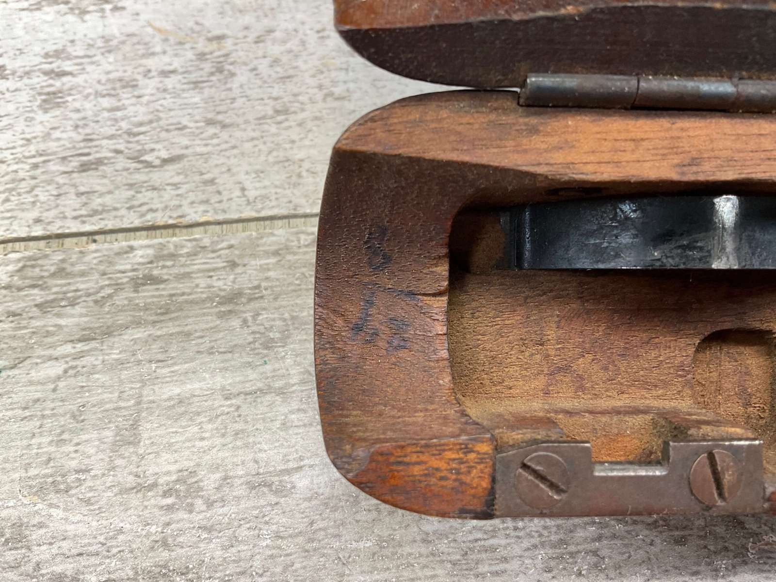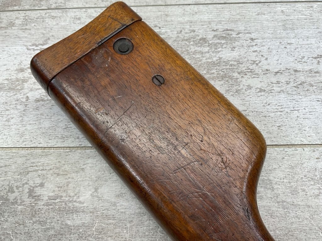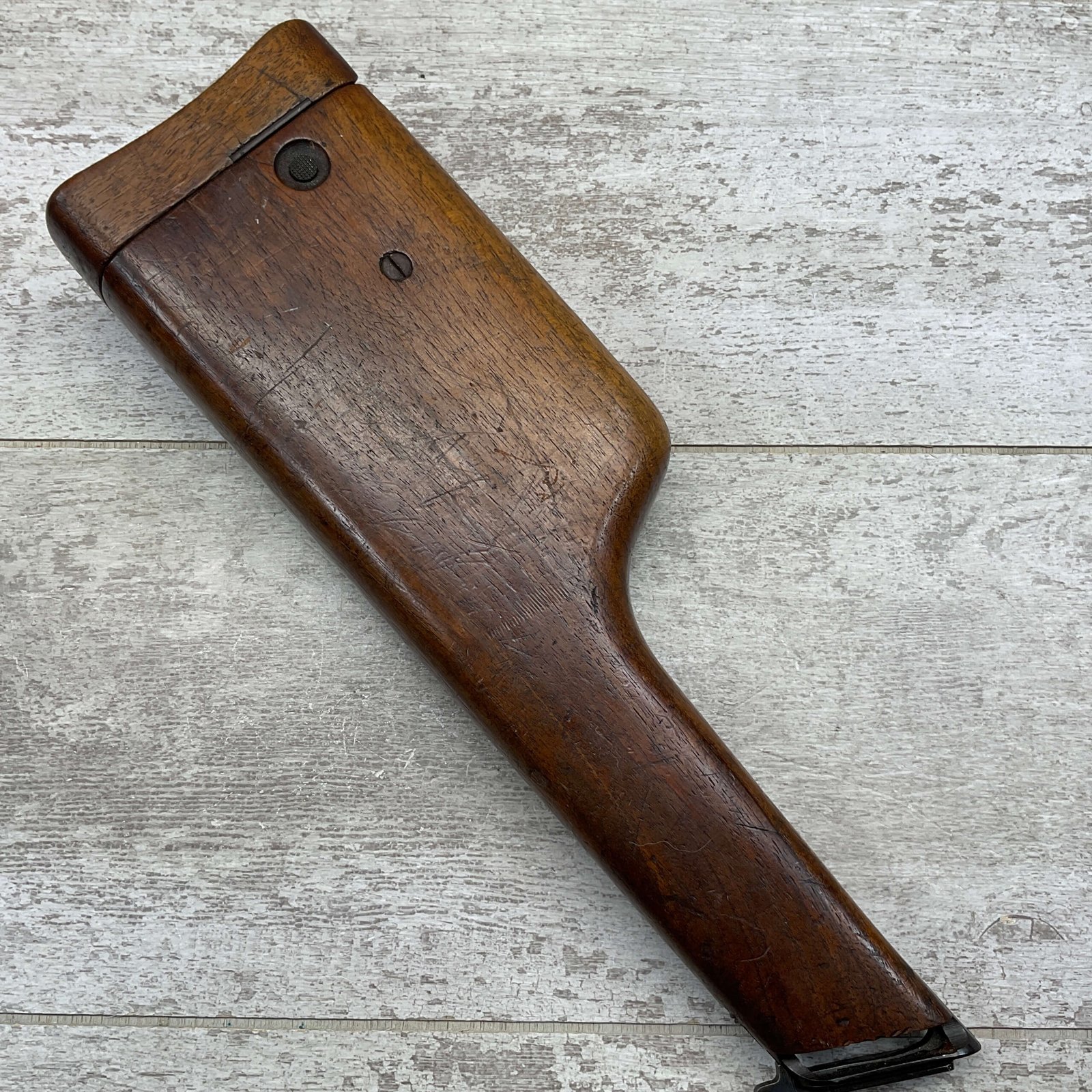 MAUSER C96 BROOMHANDLE WOODEN HOLSTER / STOCK, LUG IS NOT NUMBERED & DOESN’T FIT PROPERLY (SEE PHOTOS), EXC HINGE W/ NO ISSUES CLOSING BUT MISSING ONE SCREW, LIGHT SCRATCHES & DENTS FROM USE, VG OVERALL