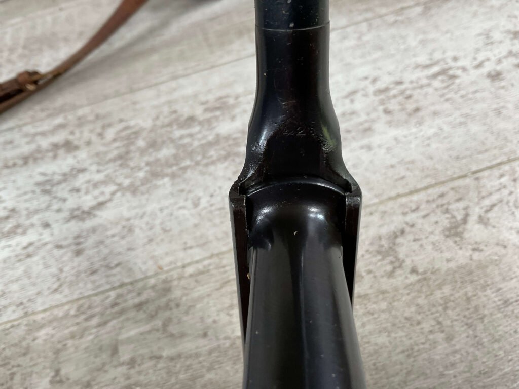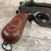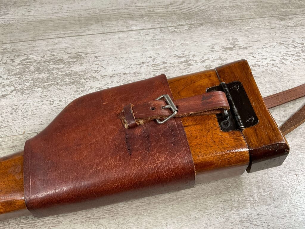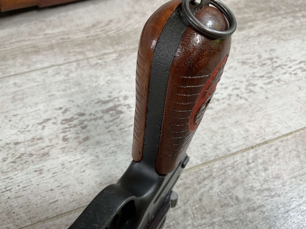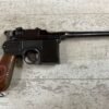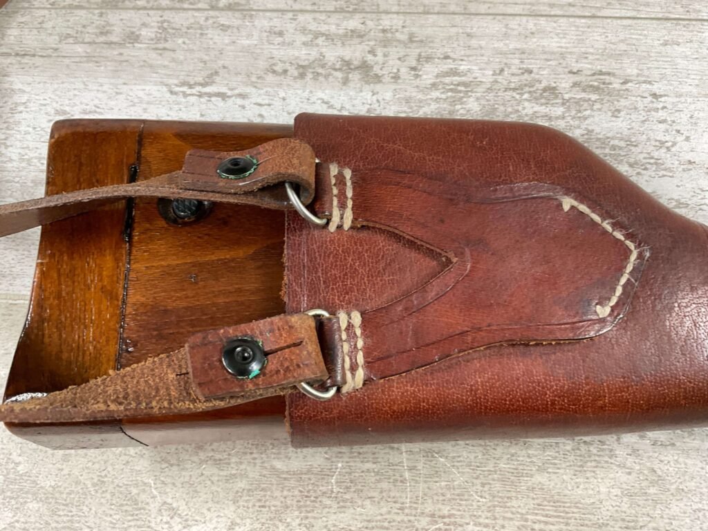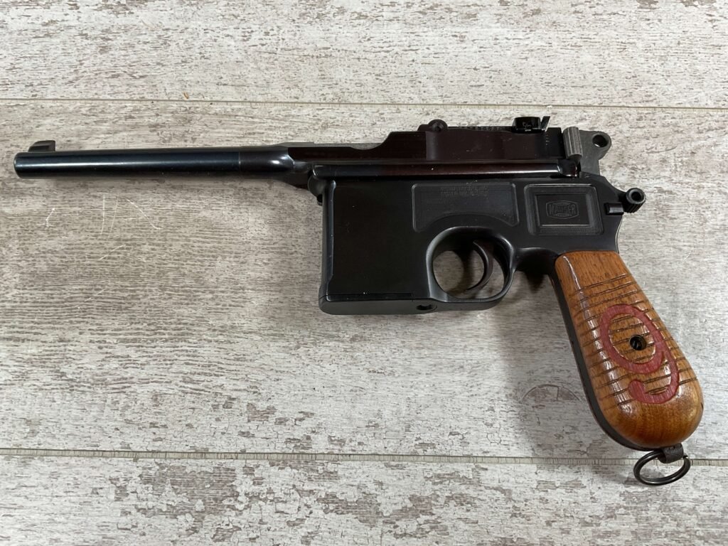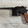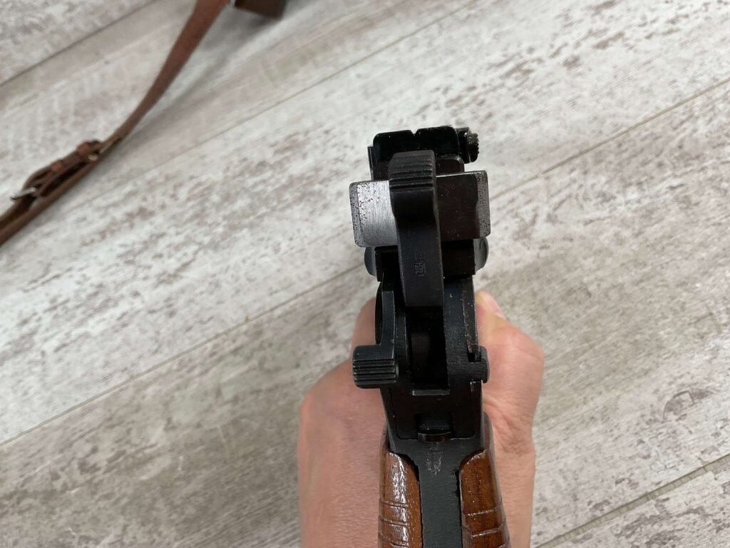 MAUSER C96 RED NINE OYSTER BAY REWORK PISTOL RIG #883019, 9MM, 98+% BLUE, OYSTER BAY REWORK, EXC REPRO GRIPS, MISMATCHED, EXC MIRROR BRIGHT BORE AND RIFLING, LANYARD RING, 5.5″ BARREL, EXC REPRO STOCK W/LEATHER SLING, MISSING LATCH, REALLY NICE REFINISHED CONDITION & 9MM!! 98% OVERALL