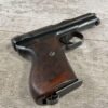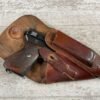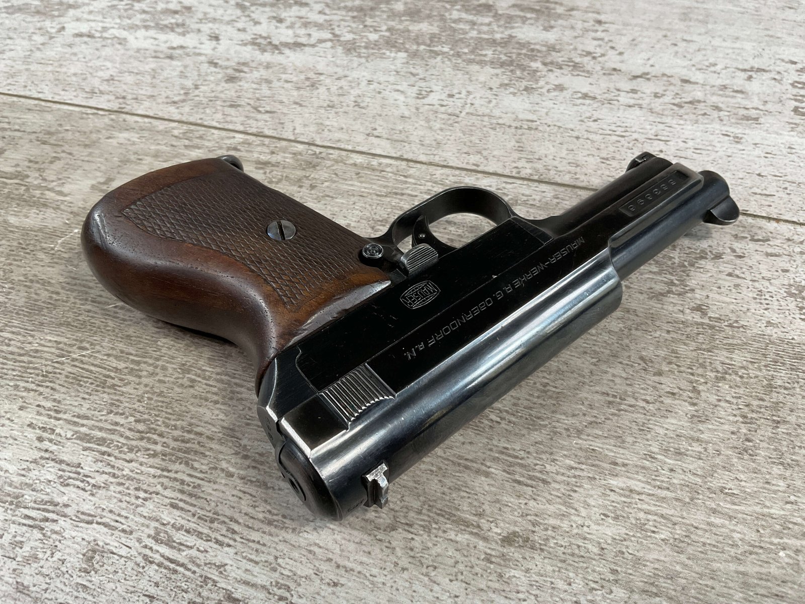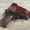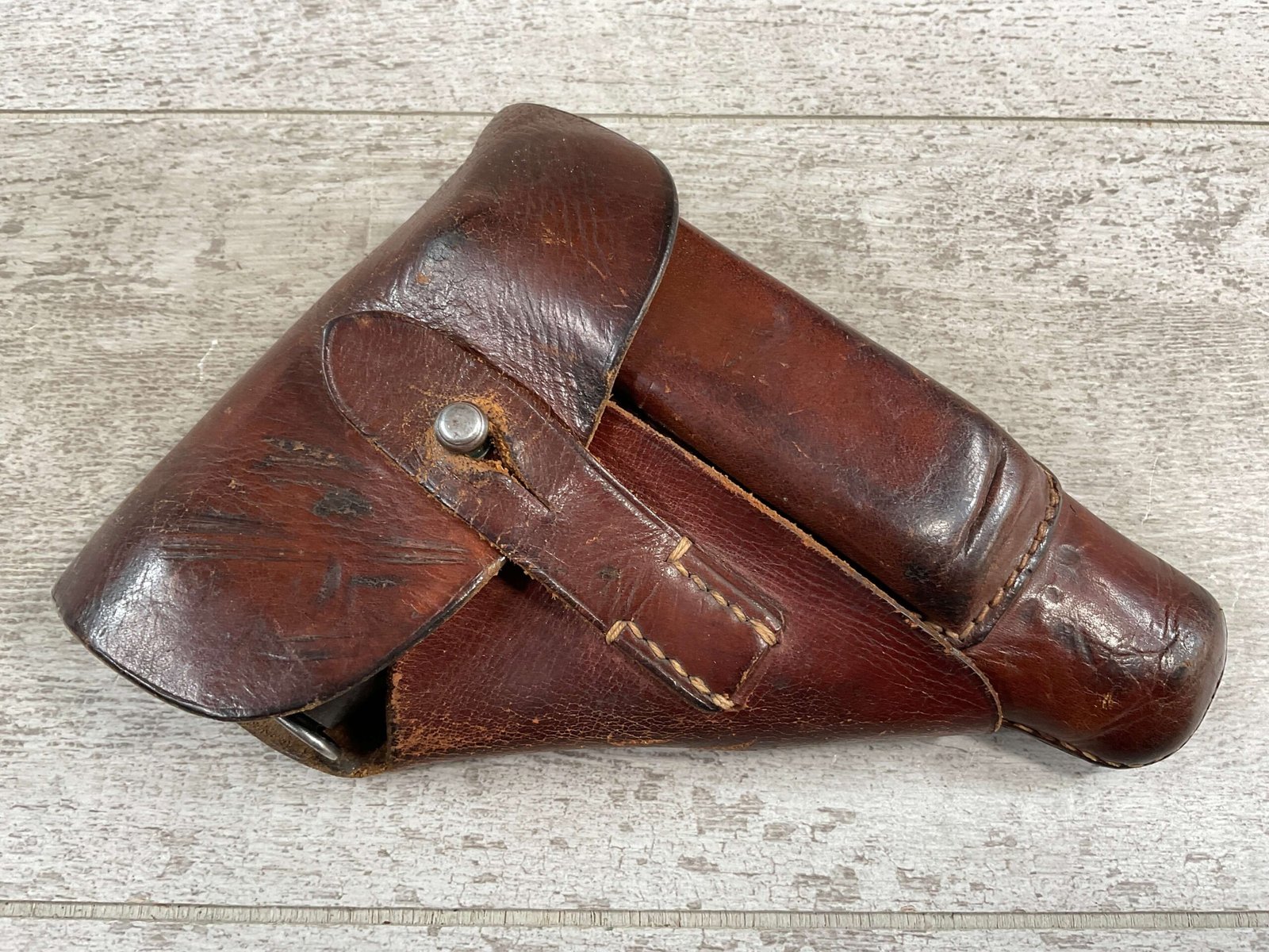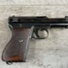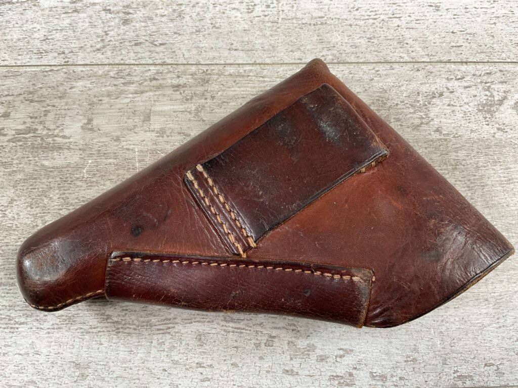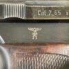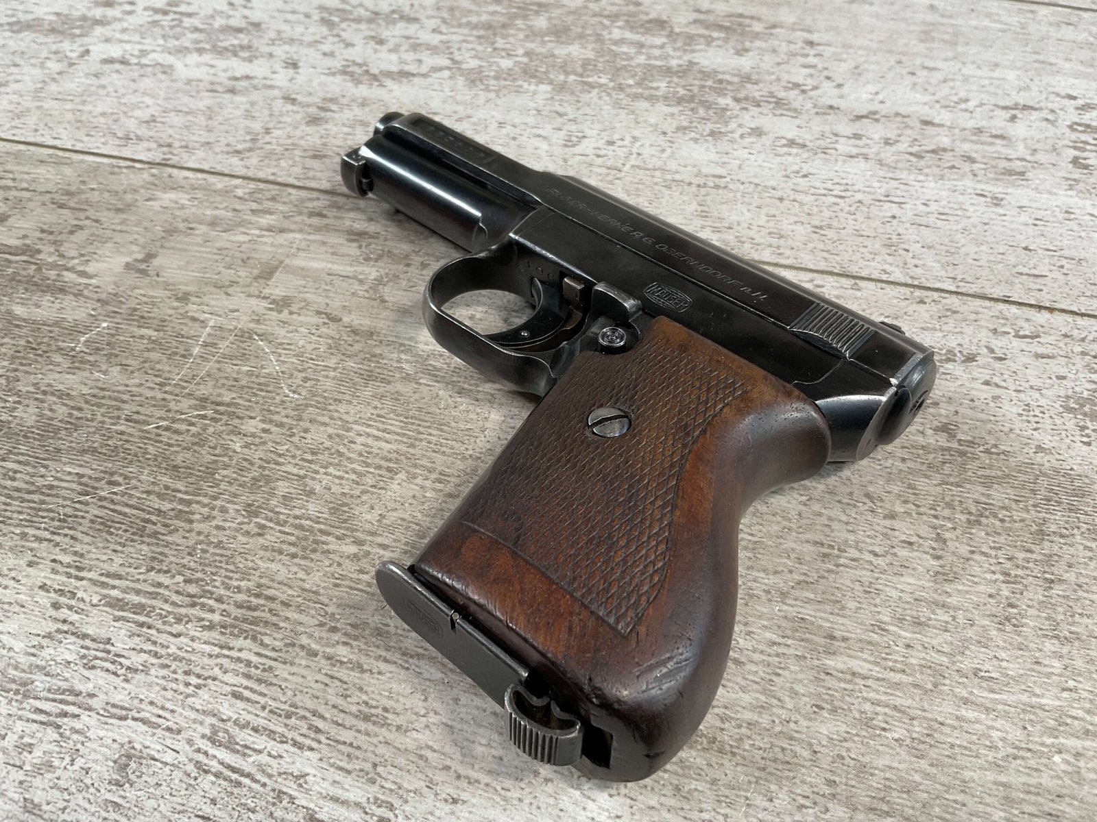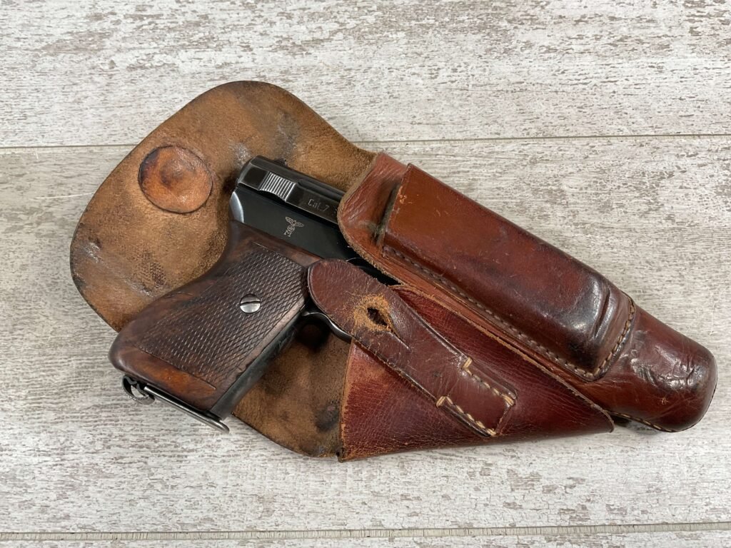 MAUSER MODEL 1934 NAZI EAGLE/M KRIEGSMARINE MARKED GERMAN NAVY PISTOL #553696, 96+% BLUE, “EAGLE/M” RIGHT SIDE OF FRAME, “CAL. 7.65 D.R.P.U.A.P.” RIGHT SIDE OF SLIDE, “553696 MAUSER-WERKE A.G. OBERNDORF A.N.” LEFT SIDE OF SLIDE, “MAUSER LOGO” LEFT SIDE OF FRAME, ONE EXC MAGAZINE, MAUSER LOGO ON BOTTOM OF MAGAZINE, EXC CHECKERED WOOD GRIPS W/LIGHT WEAR & NICKS, ALL MATCHING, EXC UNMARKED BROWN LEATHER HOLSTER, EXC BRIGHT BORE & RIFLING, 95+% OVERALL, NAVY PISTOLS ARE EXTREMELY DIFFICULT TO FIND IN THIS CONDITION!!