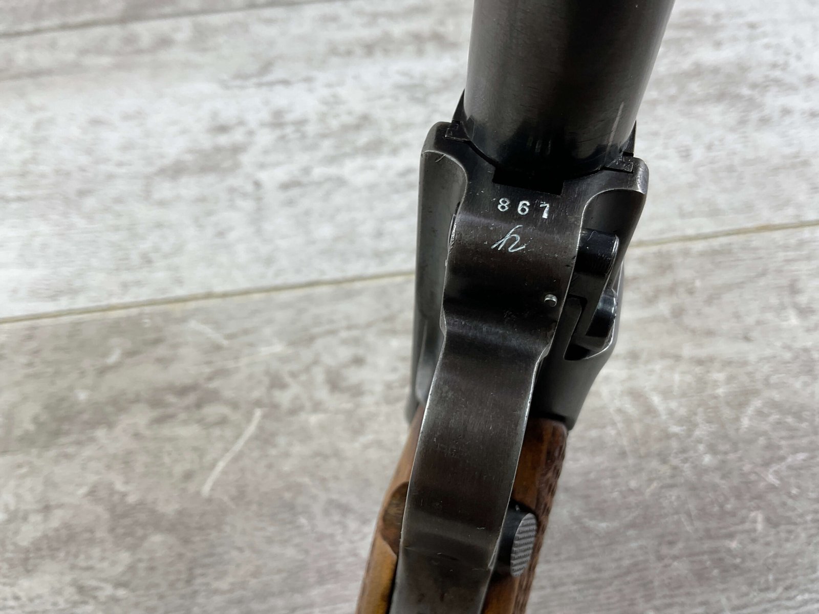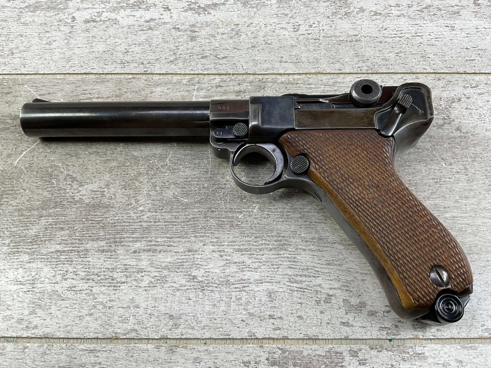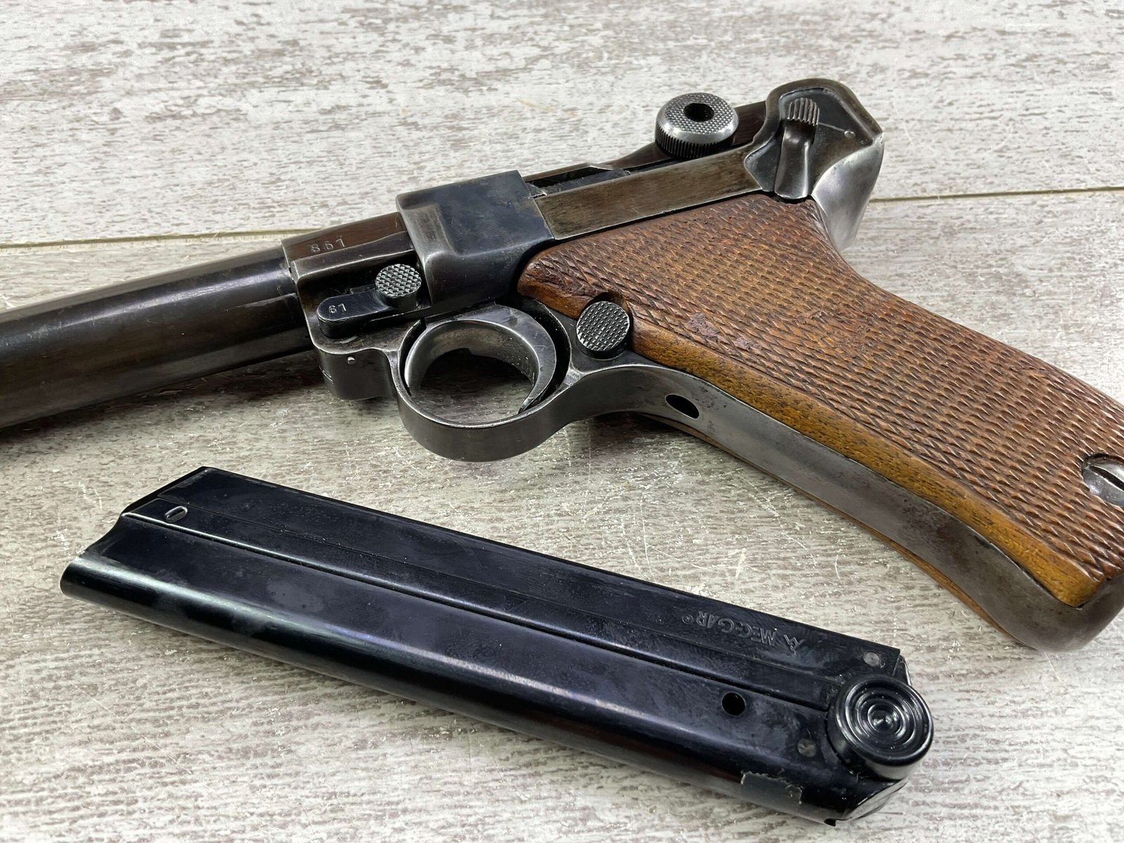 MAUSER P08 9MM CUSTOM TARGET SEMI AUTO PISTOL, JAMES EARL JONES COLLECTION #861h, 5.25″ BARREL, BYF 42 MARKED TOGGLE/CHAMBER, EXC BRIGHT BORE & RIFLING, GOOD BLUE W/ HIGH EDGE WEAR & SIGNS OF USE & FINISH LOSS, GOOD CHECKERED WALNUT GRIPS W/ WEAR, 1 BLACK PLASTIC BASE MAGAZINE, GREAT TARGET SHOOTER!! CONDITION AS SHOWN IN PICTURES, FROM THE JAMES EARL JONES “FAVORITES” COLLECTION W/ CERTIFICATE OF AUTHENTICITY.