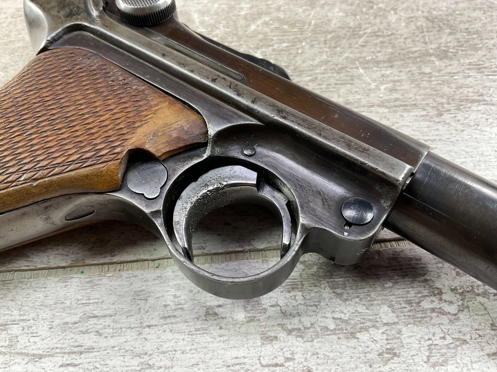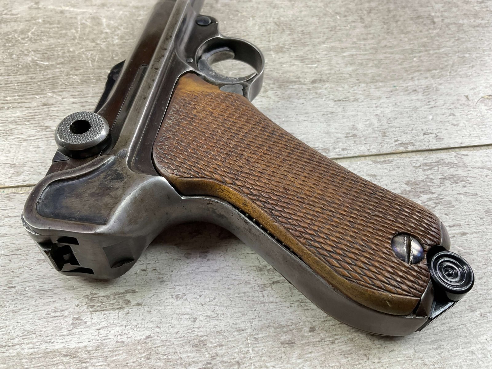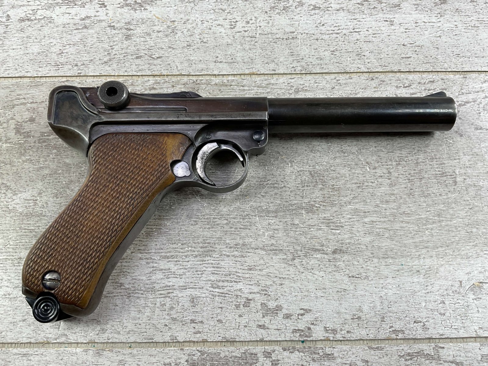 MAUSER P08 9MM CUSTOM TARGET SEMI AUTO PISTOL, JAMES EARL JONES COLLECTION #861h, 5.25″ BARREL, BYF 42 MARKED TOGGLE/CHAMBER, EXC BRIGHT BORE & RIFLING, GOOD BLUE W/ HIGH EDGE WEAR & SIGNS OF USE & FINISH LOSS, GOOD CHECKERED WALNUT GRIPS W/ WEAR, 1 BLACK PLASTIC BASE MAGAZINE, GREAT TARGET SHOOTER!! CONDITION AS SHOWN IN PICTURES, FROM THE JAMES EARL JONES “FAVORITES” COLLECTION W/ CERTIFICATE OF AUTHENTICITY.