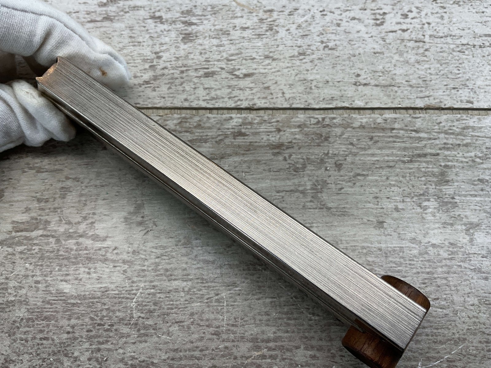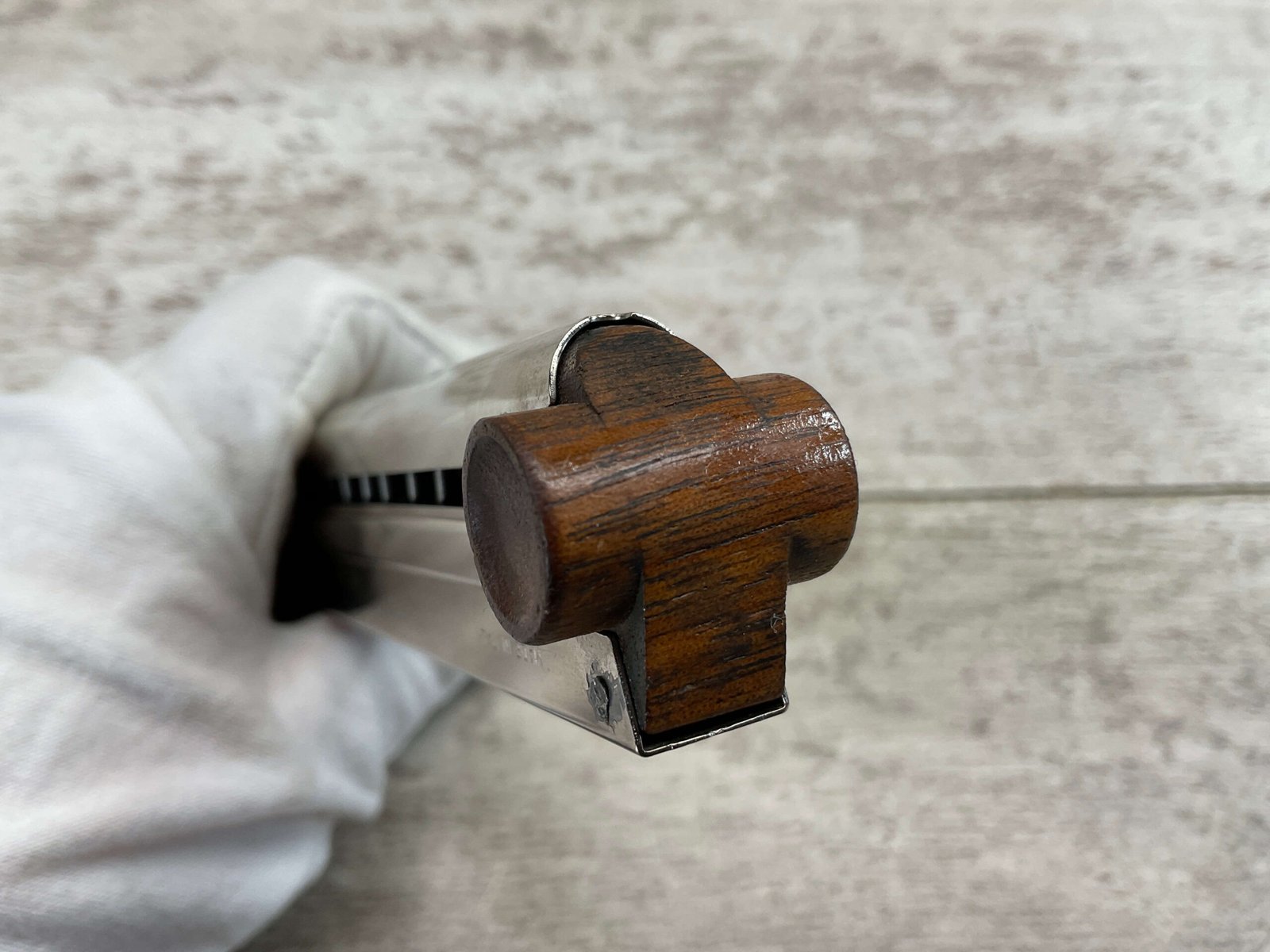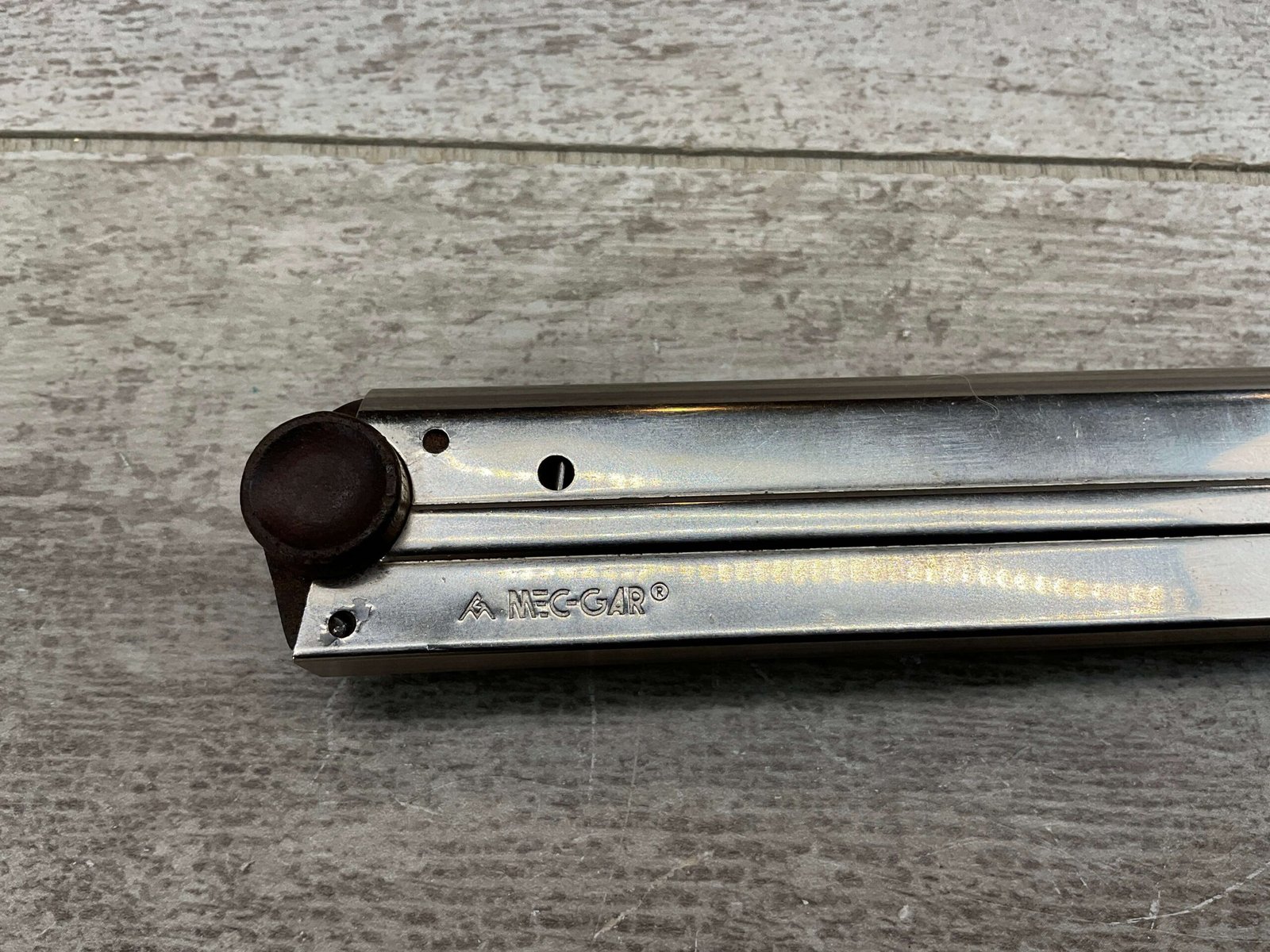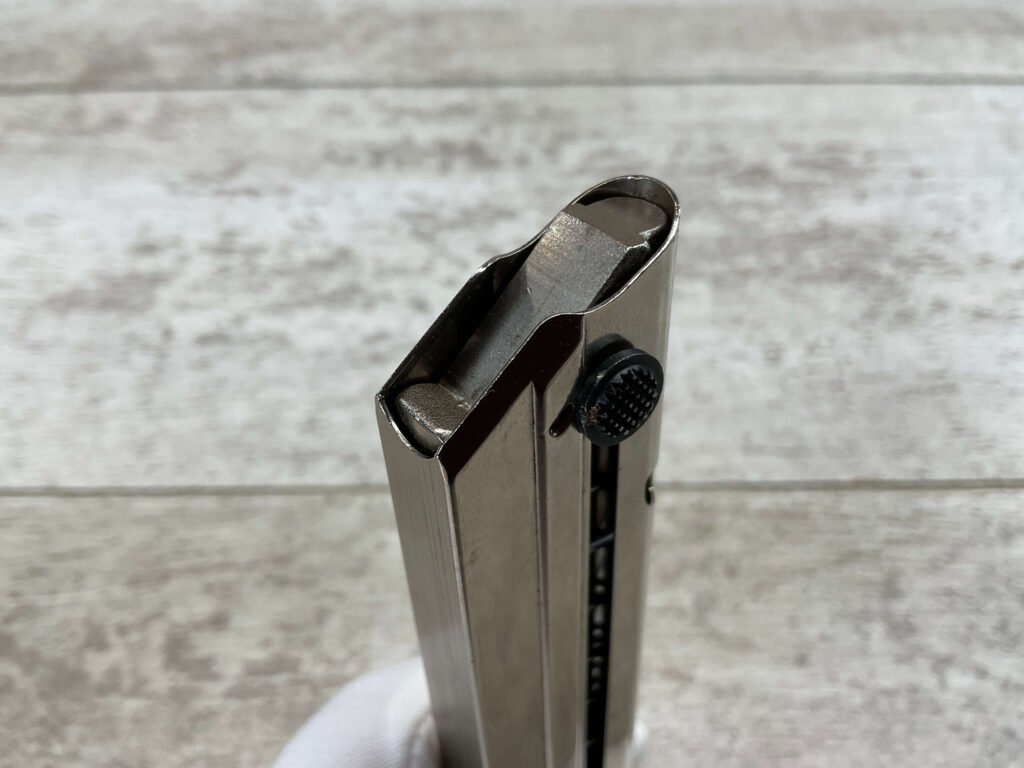 MEC-GAR MAGAZINE FOR P08 LUGGER. NICKEL PLATED TUBE WITH WOOD BASE. LIKE NEW.