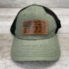 A GREAT HAT WITH LEATHER AMERICAN FLAG HAT WITH FISH DESIGN ON FRONT!