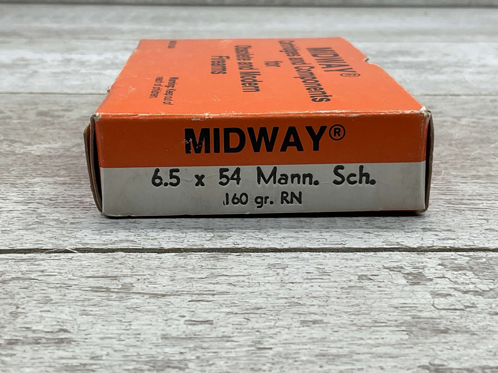 MIDWAY 6.5 X 54 MANN. SCH., 160 GR. RN AMMO, RARE, VINTAGE AND HARD TO FIND!
