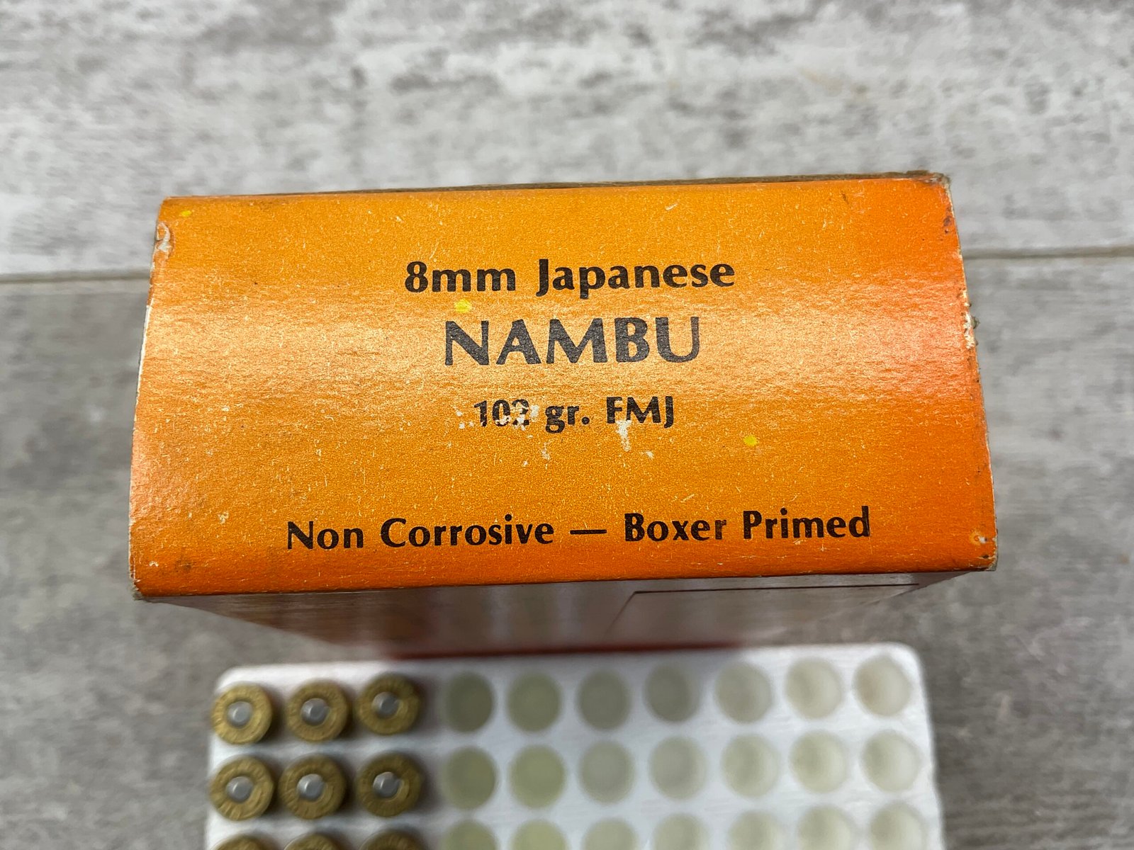 MIDWAY ARMS 8MM NAMBU AMMO, QTY 16 OF 50, VINTAGE, BOX HAS WRITING ON FRONT “29.85”, BOX IS IN OTHERWISE GOOD CONDITION AND FUNCTIONS WELL.