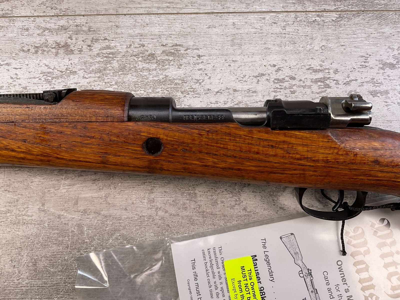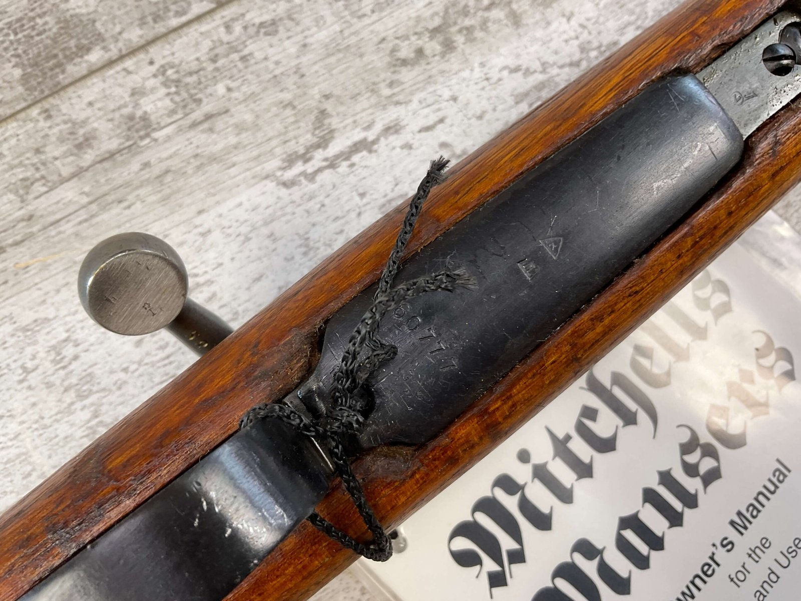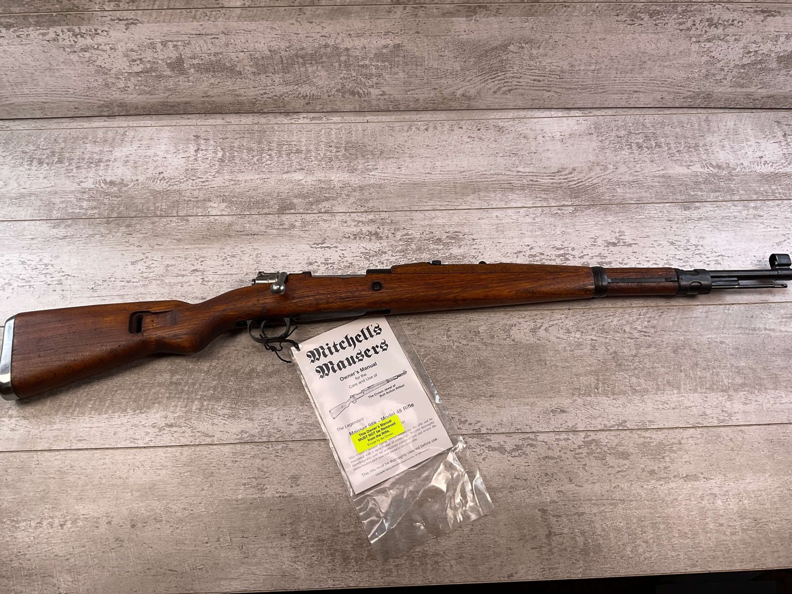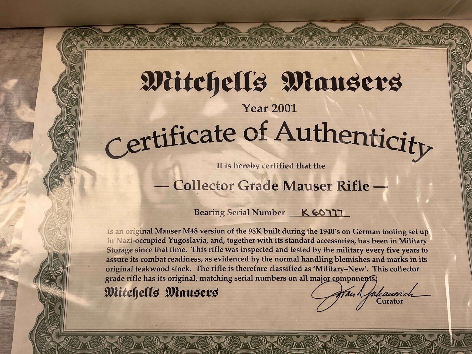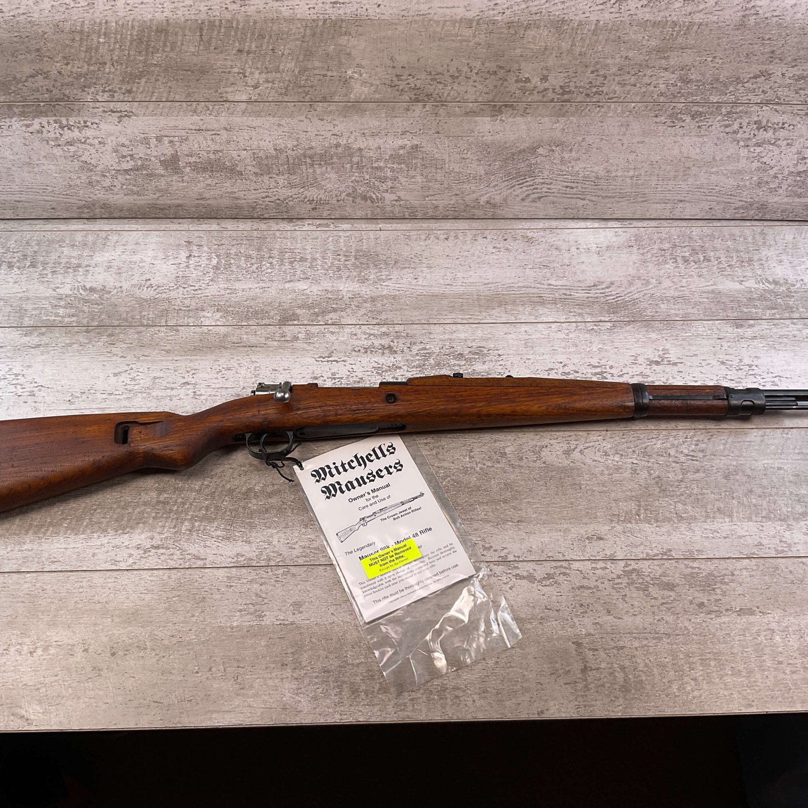 MITCHELL’S MAUSER M48 8MM BOLT ACTION RIFLE, IN BOX W/ACCESSORIES #K60777, 23 1/2″ BARREL, EXC BORE & RIFLING (STILL IN COSMOLINE), EXC STOCK, EXC BLUE, FRONT SIGHT HOOD, ADJ REAR SIGHT, MITCHELL MAUSER BOX & ACCESSORIES INCLUDED (BAYONET, SCABBARD, FROG, SLING, AMMO POUCH, CLEANING KIT, ALL NEVER TAKEN OUT OF PACKAGE), COSMOLINE STILL IN FIREARM & BOLT ASSEMBLY, 98%+ OVERALL CONDITION AS SEEN IN PHOTOS!!