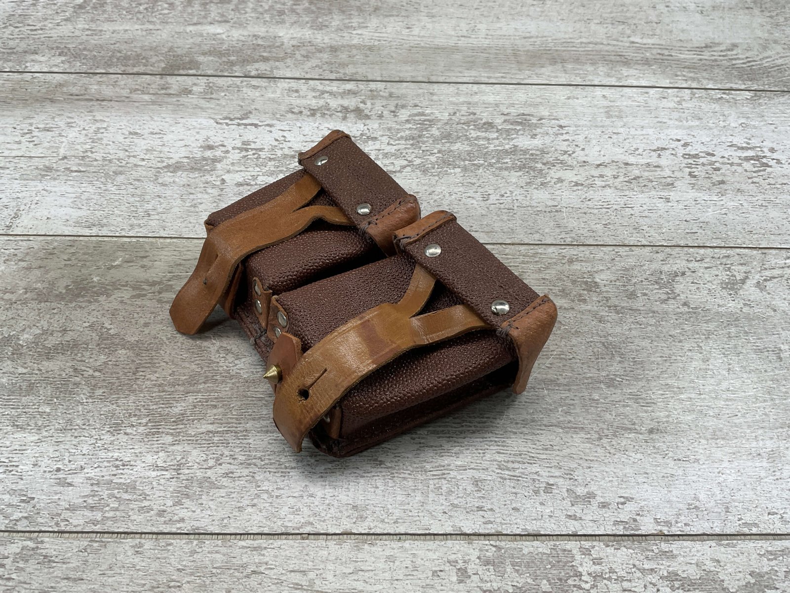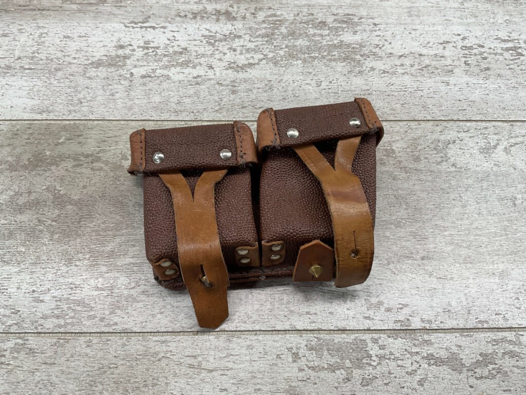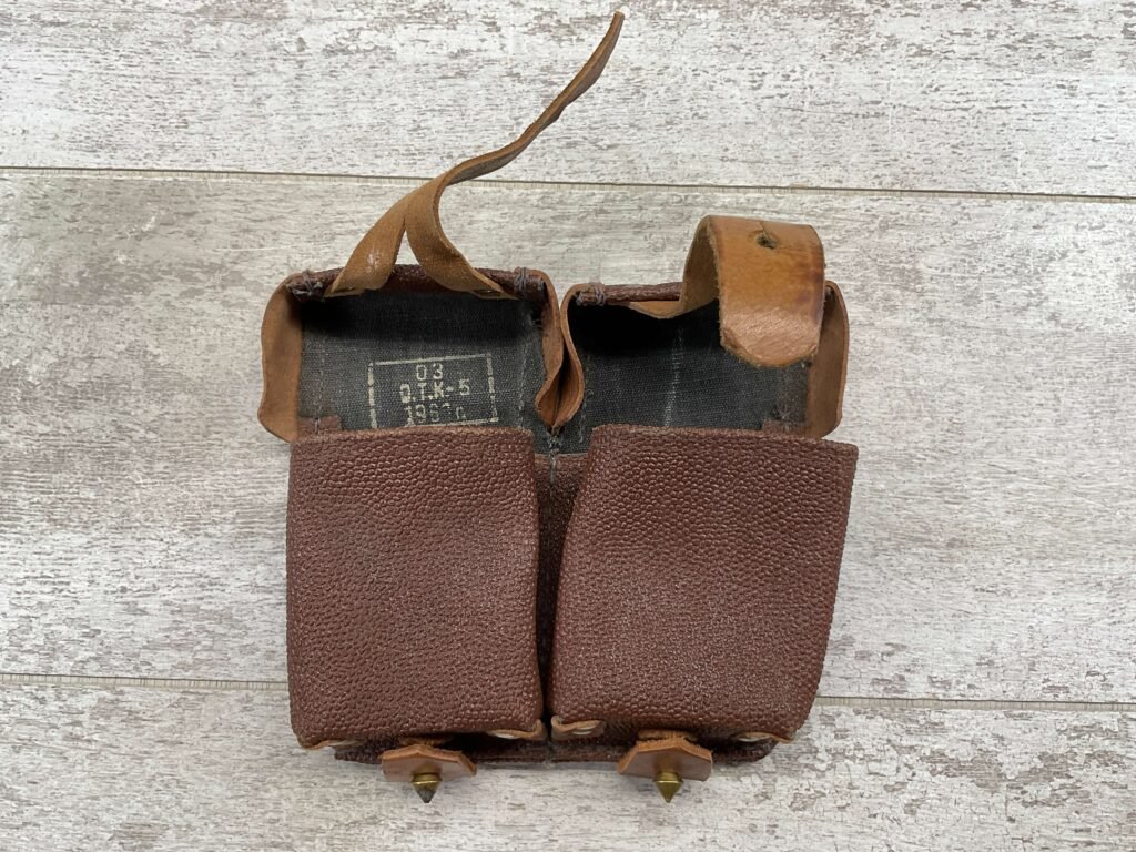 MOSIN NAGANT AMMO DOUBLE POUCH FOR CARRYING MOSIN NAGANT RIFLE SHELLS ON THE BELT, MANUFACTURE STAMP ON FLAP, EXC CONDITION