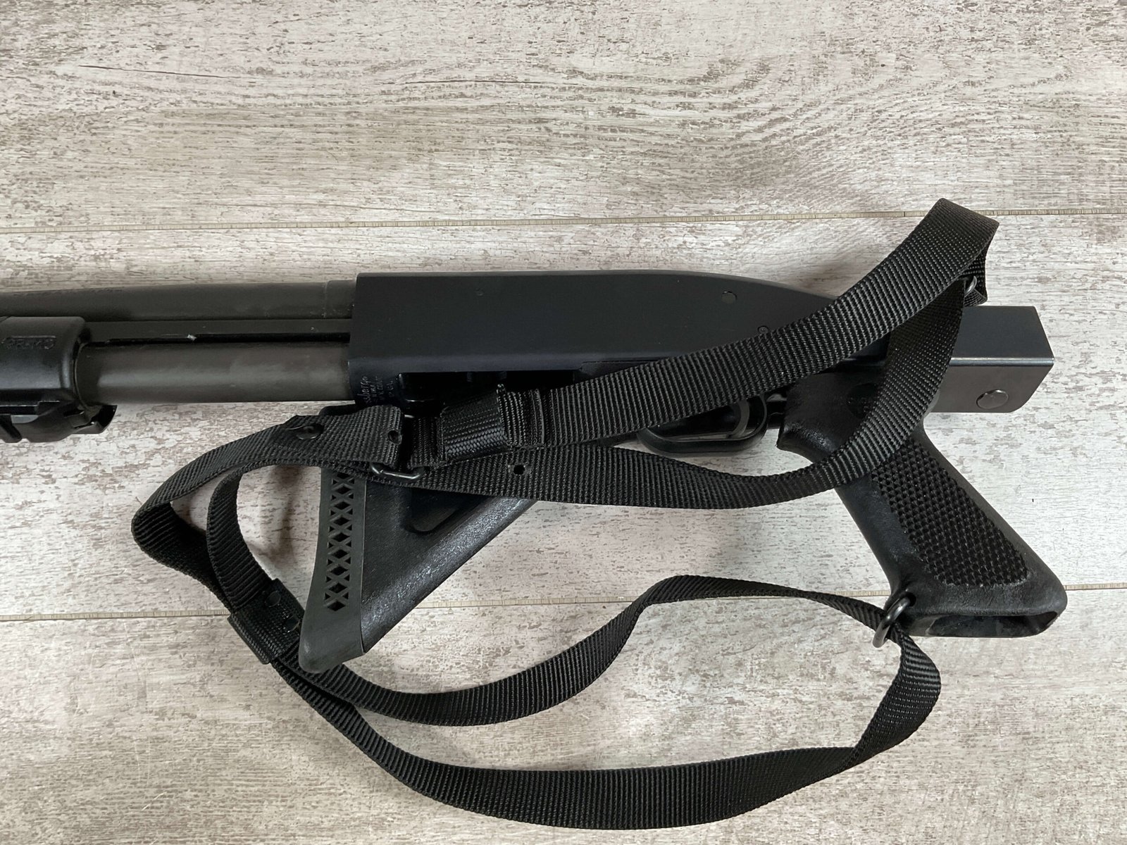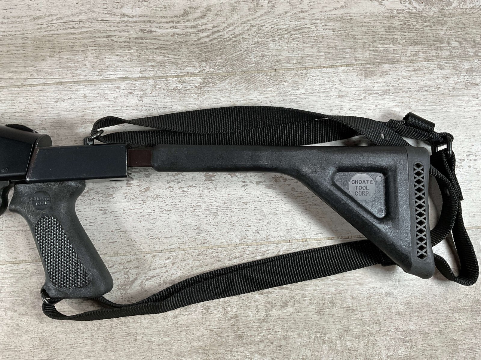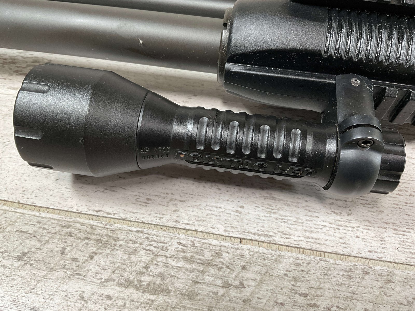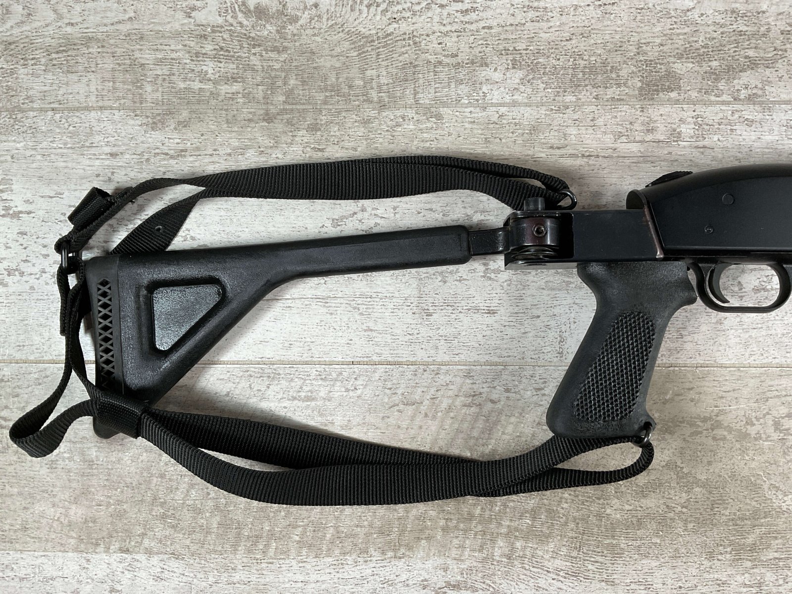 MOSSBERG 500 TACTICAL 12GA SHOTGUN W/FOLDING STOCK & STREAMLIGHT #U570145, 20″ BARREL, 3″ SHELLS, PARKERIZED FINISH BBL AND TUBE, EXC BLUE RECIEVER, CHOATE TOOL FOLDING STOCK, STREAMLIGHT POLYTAC LED ATTACHED TO FAD DEFENSE LINE FOREGRIP, PICATINNY RAILS, EXC BORE, 95+% OVERALLÂ Â **GREAT HOME DEFENSE SHOTGUN!!