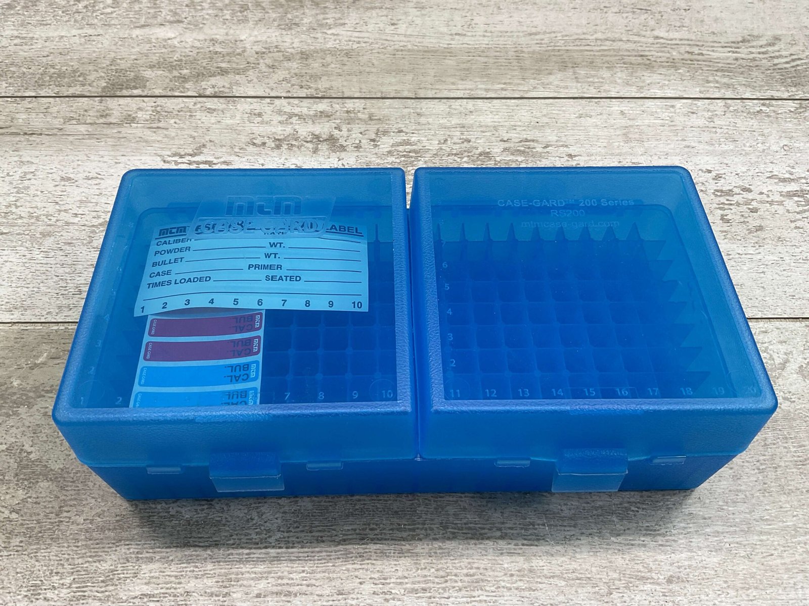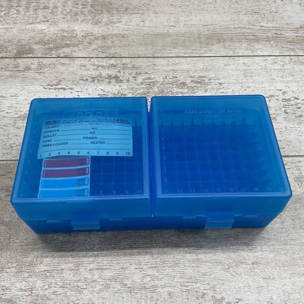 Sturdy 200 round base with two flip-top lids covering 100 rds. each, a strong snap latch secures each cover, multi-stack design, New, MTM RS20024
