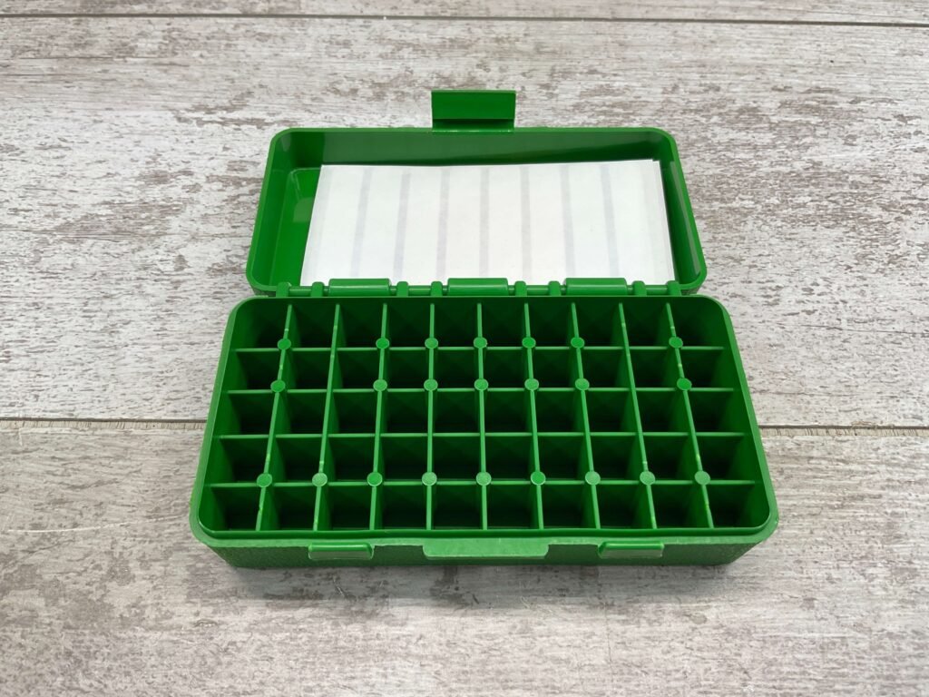 Sturdy base with a flip-top lid covering 50 rds. a strong snap latch secures each cover, multi-stack design, MTP509
