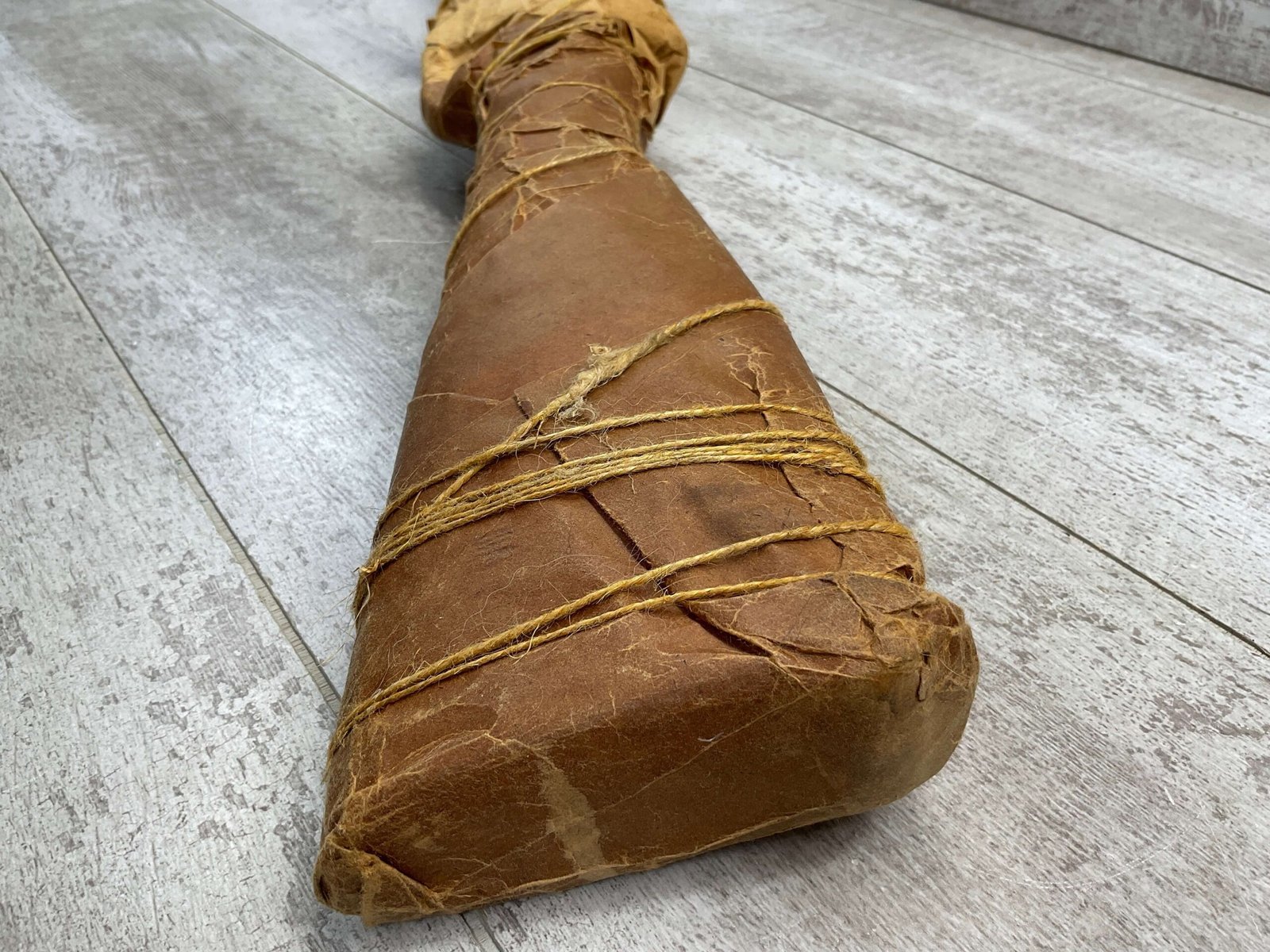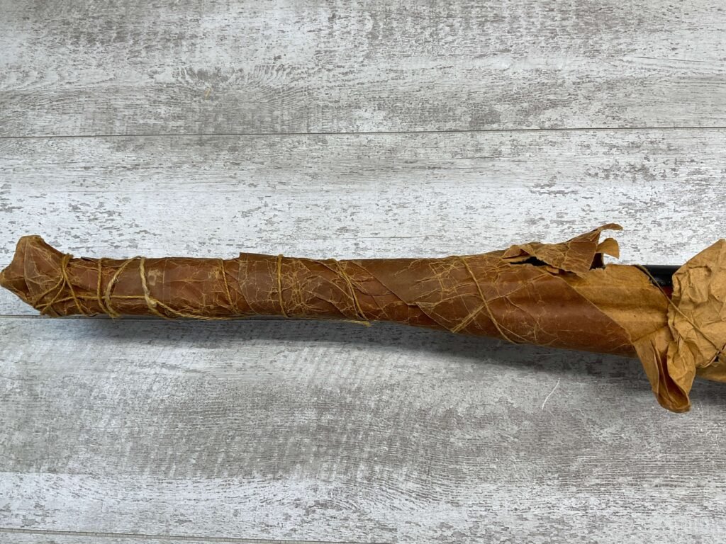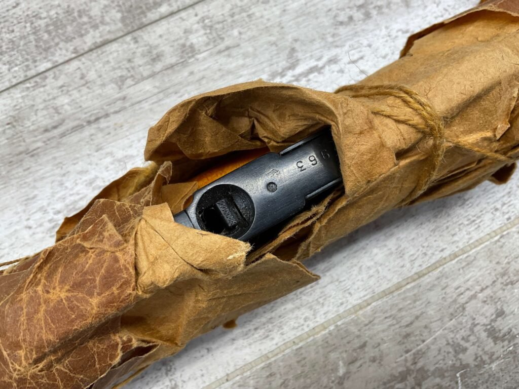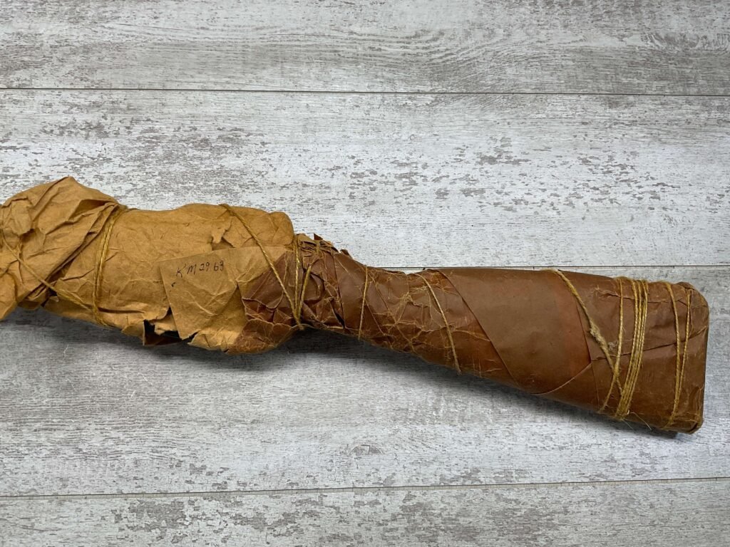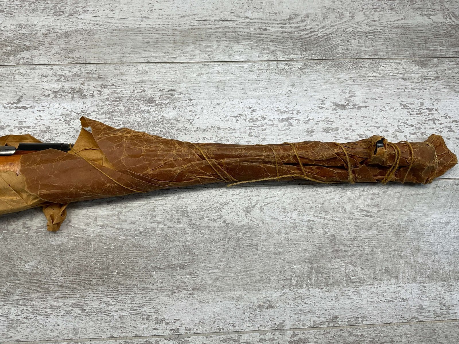 MUMMY WRAPPED MOSIN NAGANT 1944 M44 7.62X54R BOLT ACTION RIFLE #KN2963, TOP OF RECEIVER MARKED “HAMMER & SICKLE / 1947 r / KN2963 / IZHEVSK FACTORY ARROW IN TRIANGLE”, EXC BLUE, CAI VT IMPORT ON LEFT SIDE OF RECEIVER (AREA OPEN FROM WRAP), BELIEVED TO BE ORIGINAL WRAP, WAS UNWRAPPED NEAR RECEIVER TO PLACE IMPORT MARK ONLY, RARE
