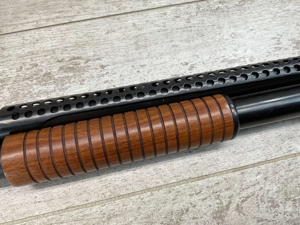 WHEN THE UNITED STATES ENTERED WORLD WAR I, THERE WAS A NEED FOR MORE SERVICE WEAPONS TO BE ISSUED TO THE TROOPS. IT BECAME CLEAR TO THE UNITED STATES JUST HOW BRUTAL TRENCH WARFARE WAS, AND THE WINCHESTER MODEL 1897 TRENCH GRADE WAS THEIR RESPONSE. THE PRE-EXISTING WINCHESTER MODEL 1897 WAS MODIFIED BY ADDING A PERFORATED STEEL HEAT SHIELD OVER THE BARREL WHICH PROTECTED THE HAND OF THE USER FROM THE BARREL WHEN IT BECAME OVER-HEATED,AND AN ADAPTER WITH BAYONET LUG FOR AFFIXING ABAYONET.