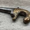 ORIGINAL CIVIL WAR ERA MOORE’S PATENT F.A. CO. NO.1 DERRINGER .41RF SINGLE SHOT PISTOL, ANTIQUE #1040, ALL MATCHING, GOOD NICKEL FINISH BARREL W/ PITTED AREAS, FAIR BORE W/ FROSTING & GOOD RIFLING, BRASS FRAME W/ ENGRAVING, SPUR TRIGGER, MOORE’S PATENT F.A. CO. BROOKLYN, N.Y. FAINTLY ON TOP OF BARREL, 2 1/2″ ROTATING BARREL, FULLY FUNCTIONING, NOT A REPRODUCTION, OVERALL CONDITION AS SEEN IN PHOTOS