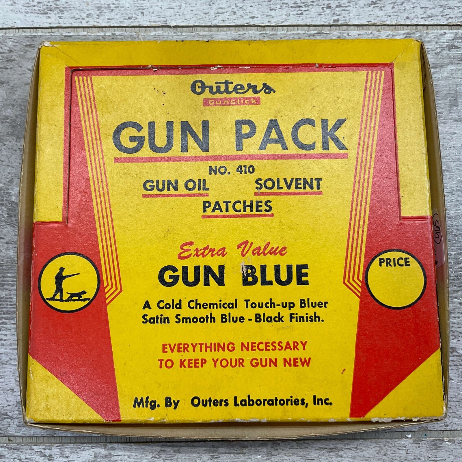 OUTERS GUNSLICK GUN PACK, EXTRA VALUE GUN BLUE, VINTAGE, NO. 410, BOX IS IN BEAUTIFUL CONDITION FOR AGE AND IS A GREAT ADD TO ANY COLLECTION!