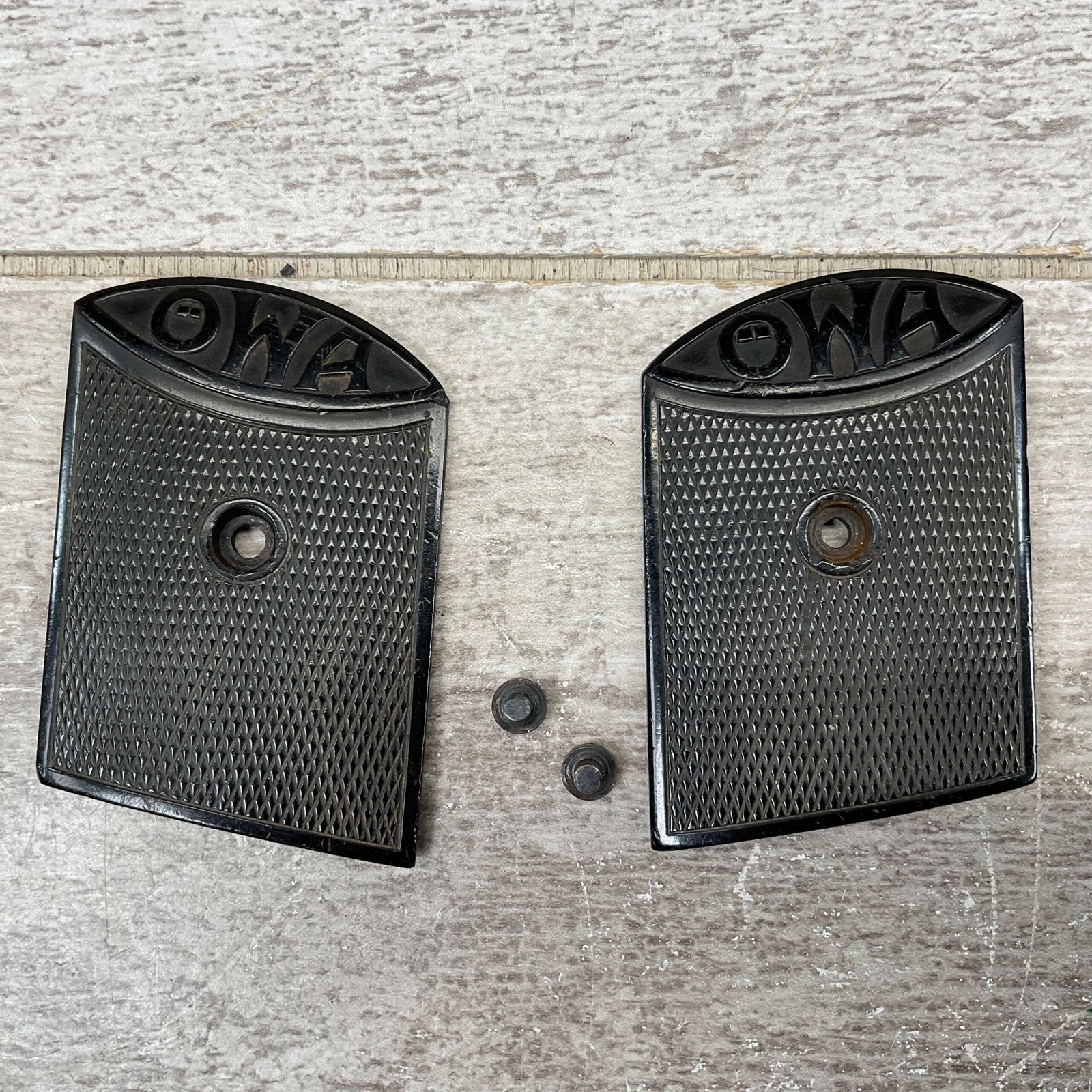 OWA .25 AUTO GRIPS & SCREWS, EXCELLENT CONDITION, BLACK PLASTIC