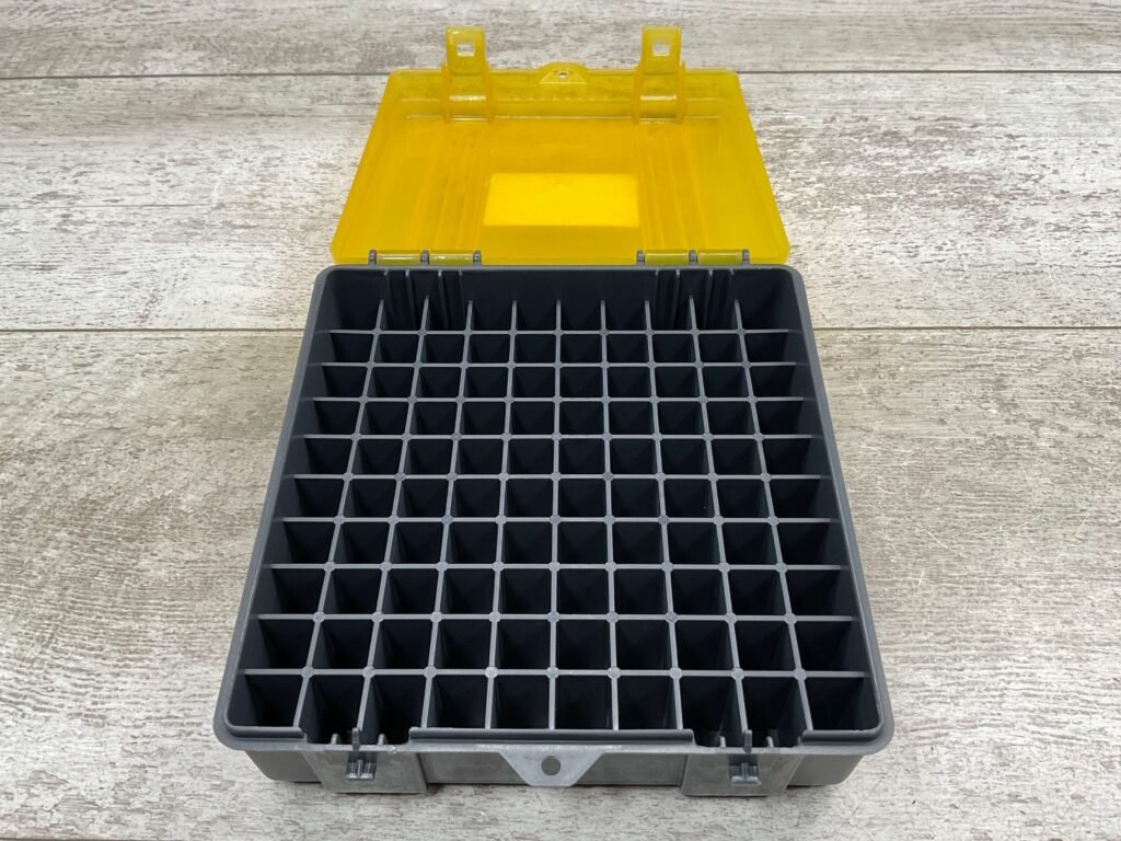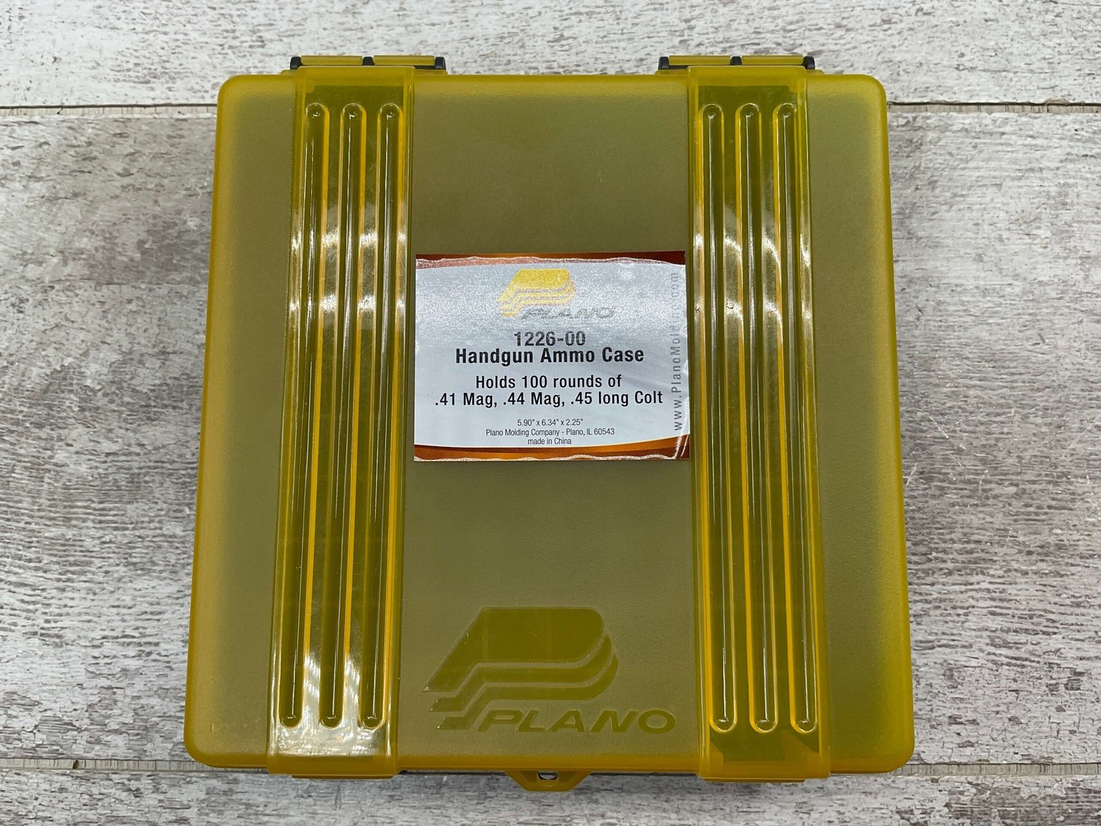 PLANO AMMO CASE FOR .44 MAG/.45L COLT, 100 ROUNDS, NEW, GREY & YELLOW