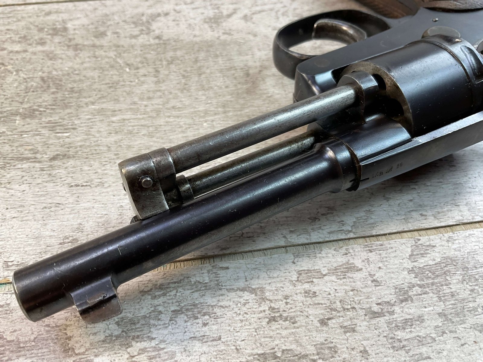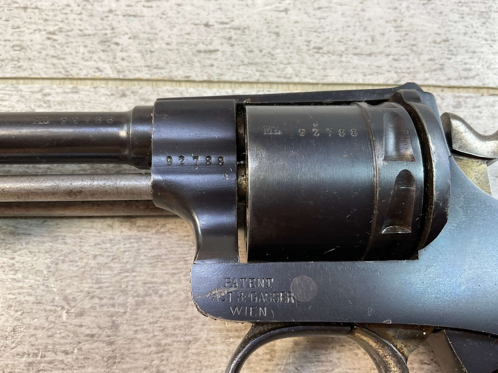 RAST & GASSER WIEN 1898 8MM GASSER REVOLVER, JAMES EARL JONES “FAVORITES” COLLECTION #92788, 4.5″ BARREL, EXC BORE & RIFLING, VG CHECKERED WALNUT GRIPS, SOLID FRAME DESIGN, AUSTRIAN PROOFS, ALL MATCHING, 90% ORIGINAL BLUE W/HIGH EDGE WEAR & SCRATCHES FROM USE, SPOTTY OXIDATION, LANYARD RING, CONDITION AS SHOWN IN PICTURES, FROM THE JAMES EARL JONES “FAVORITES” COLLECTION W/ CERTIFICATE OF AUTHENTICITY.