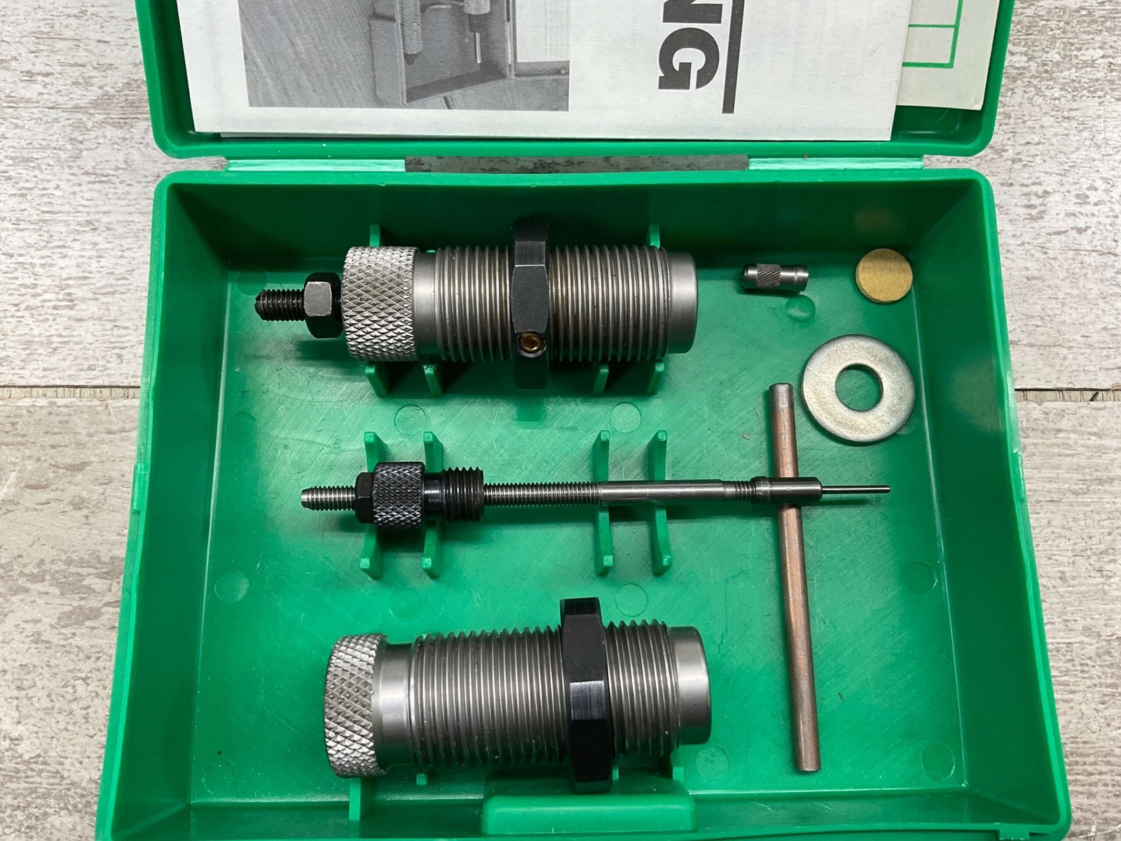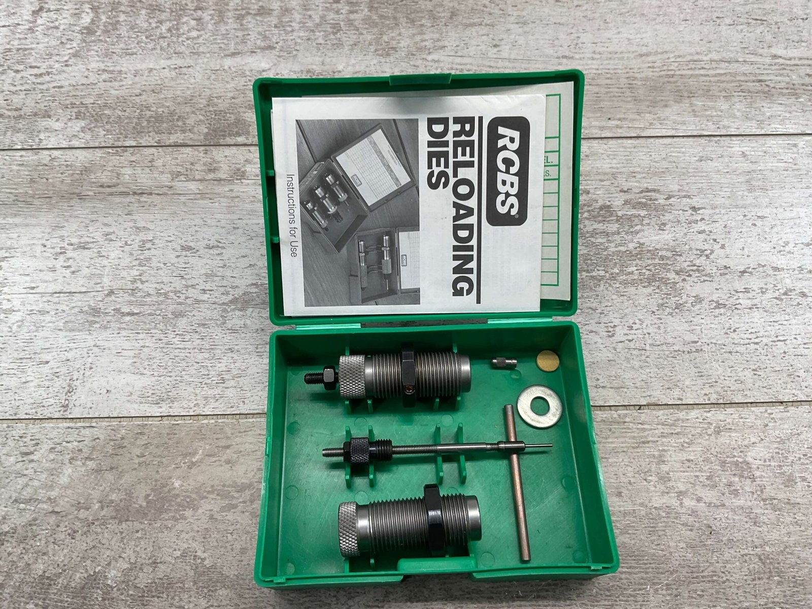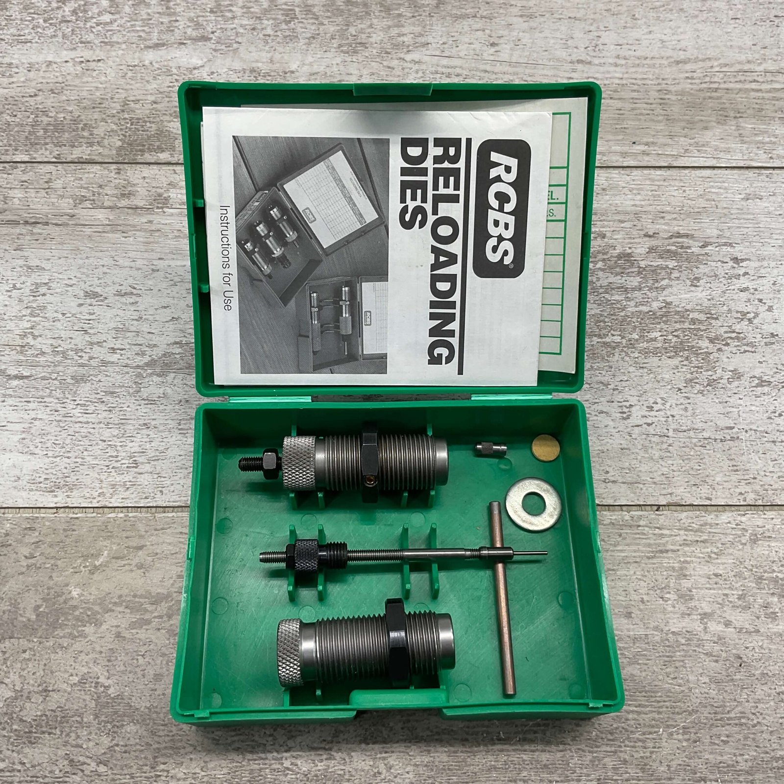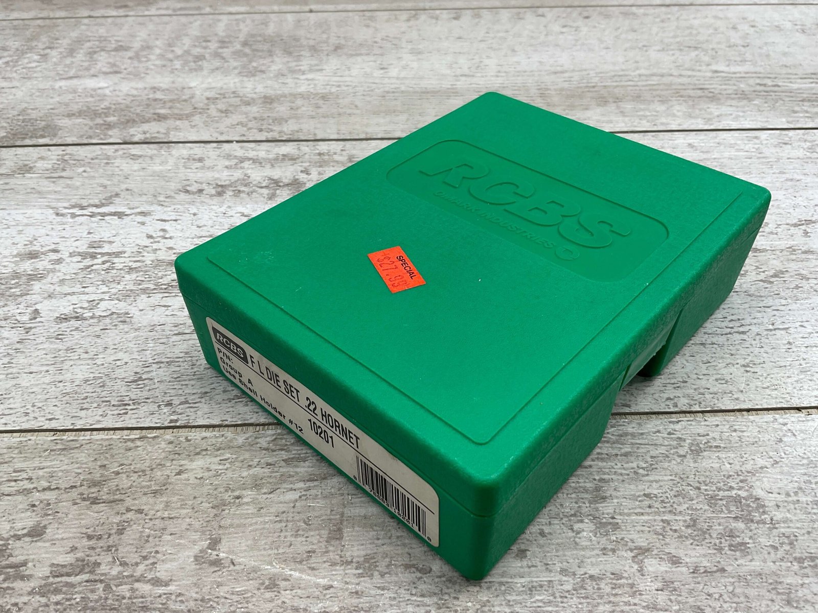 RELOADING DIE SET FOR FULL LENGTH 22 HORNET AMMUNITION INCLUDES 2 DIES, MFR BY RCBS OMARK INDUSTRIES, BOX IS LABELED GROUP A, PART NUMBER 10201, SET IS IN VERY GOOD CONDITION WITH ORIGINAL BOX AND INSTRUCTIONS.