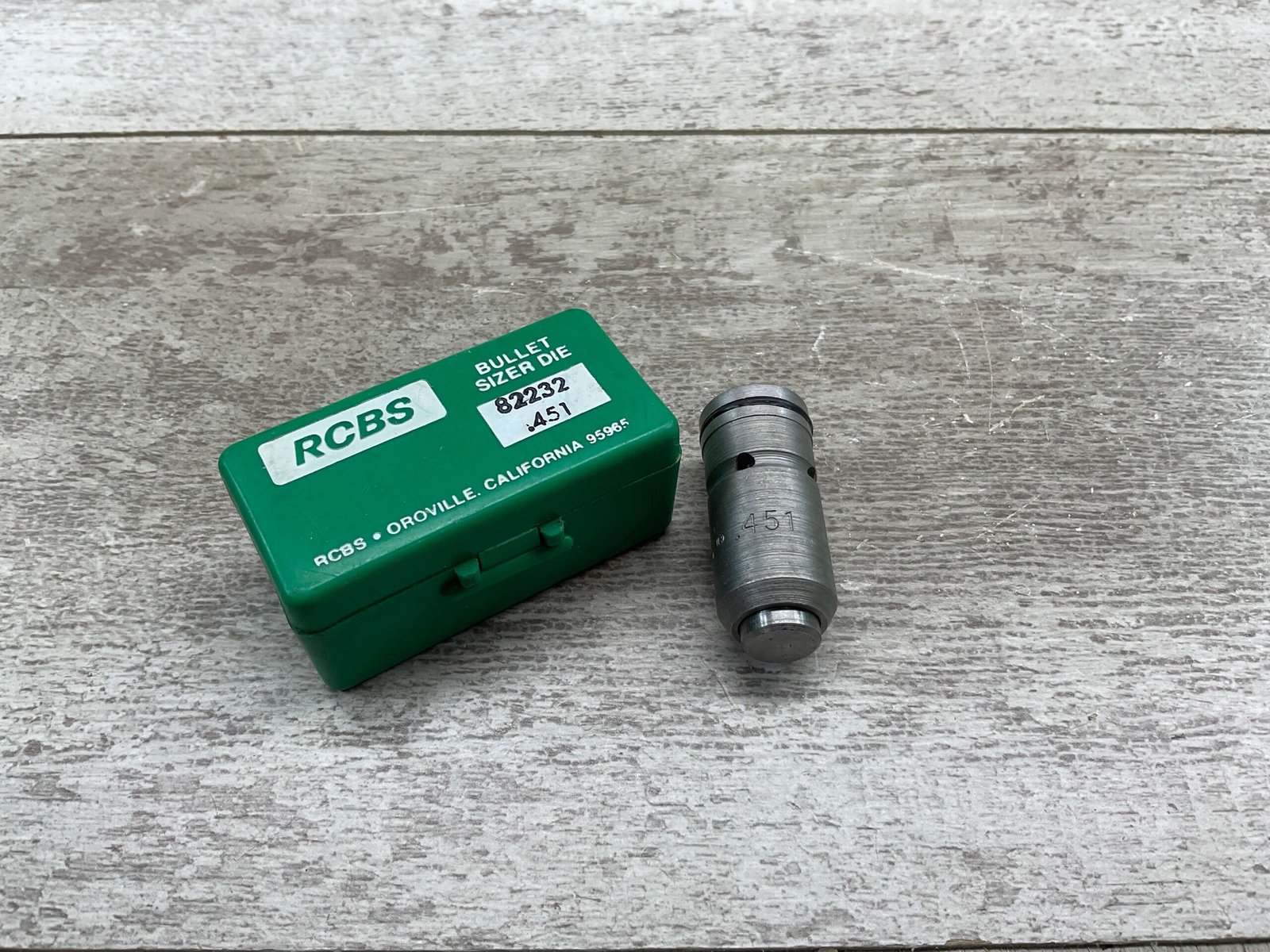 RCBS BULLET SIZER DIE .451 ITEM NUMBER 82232 IN PLASTIC BOX IN EXC. CONDITION