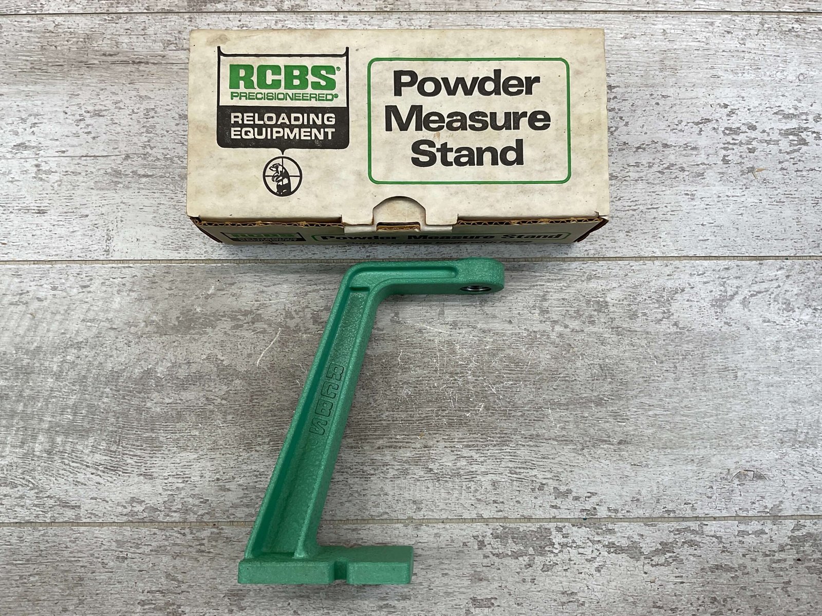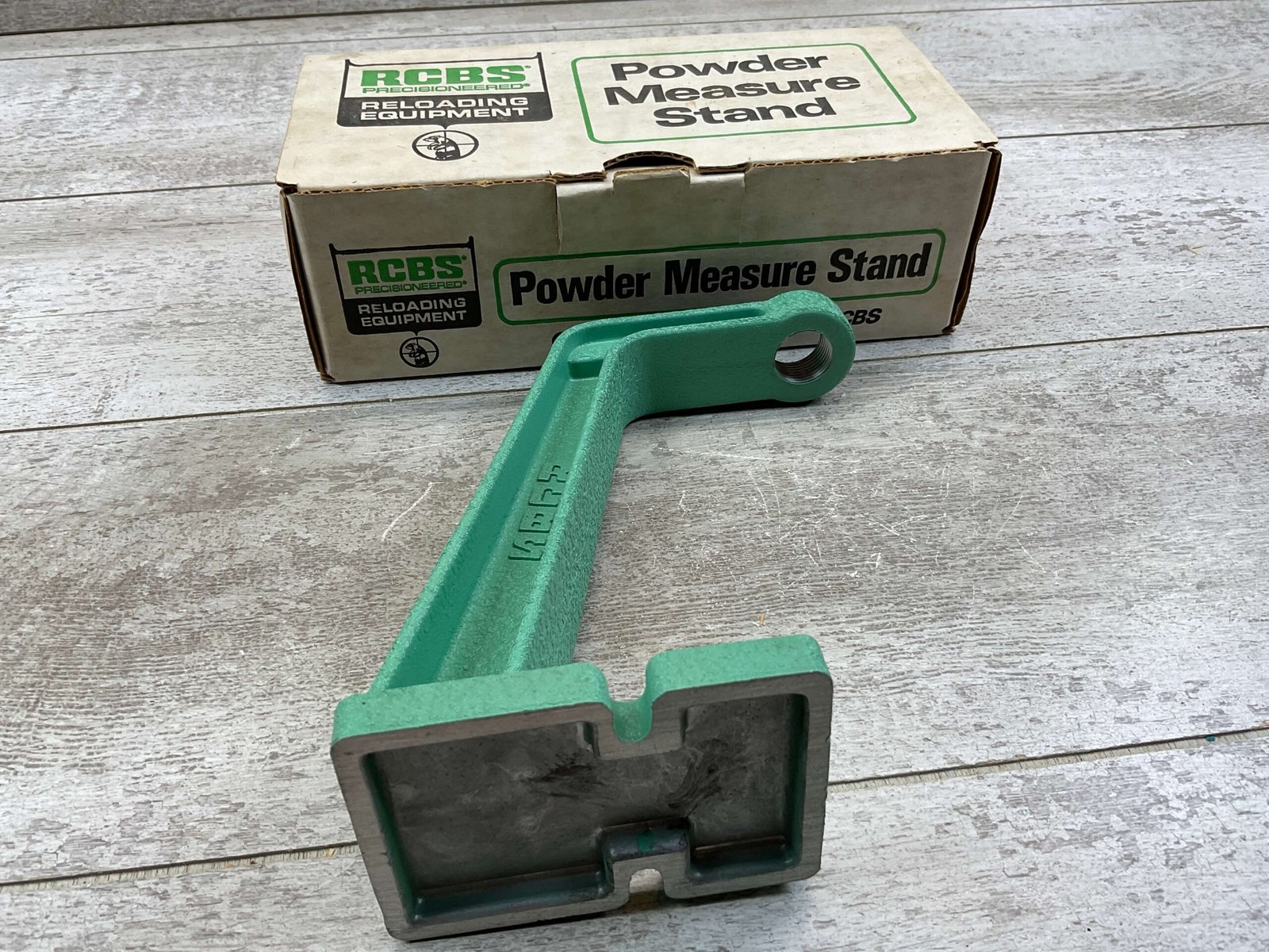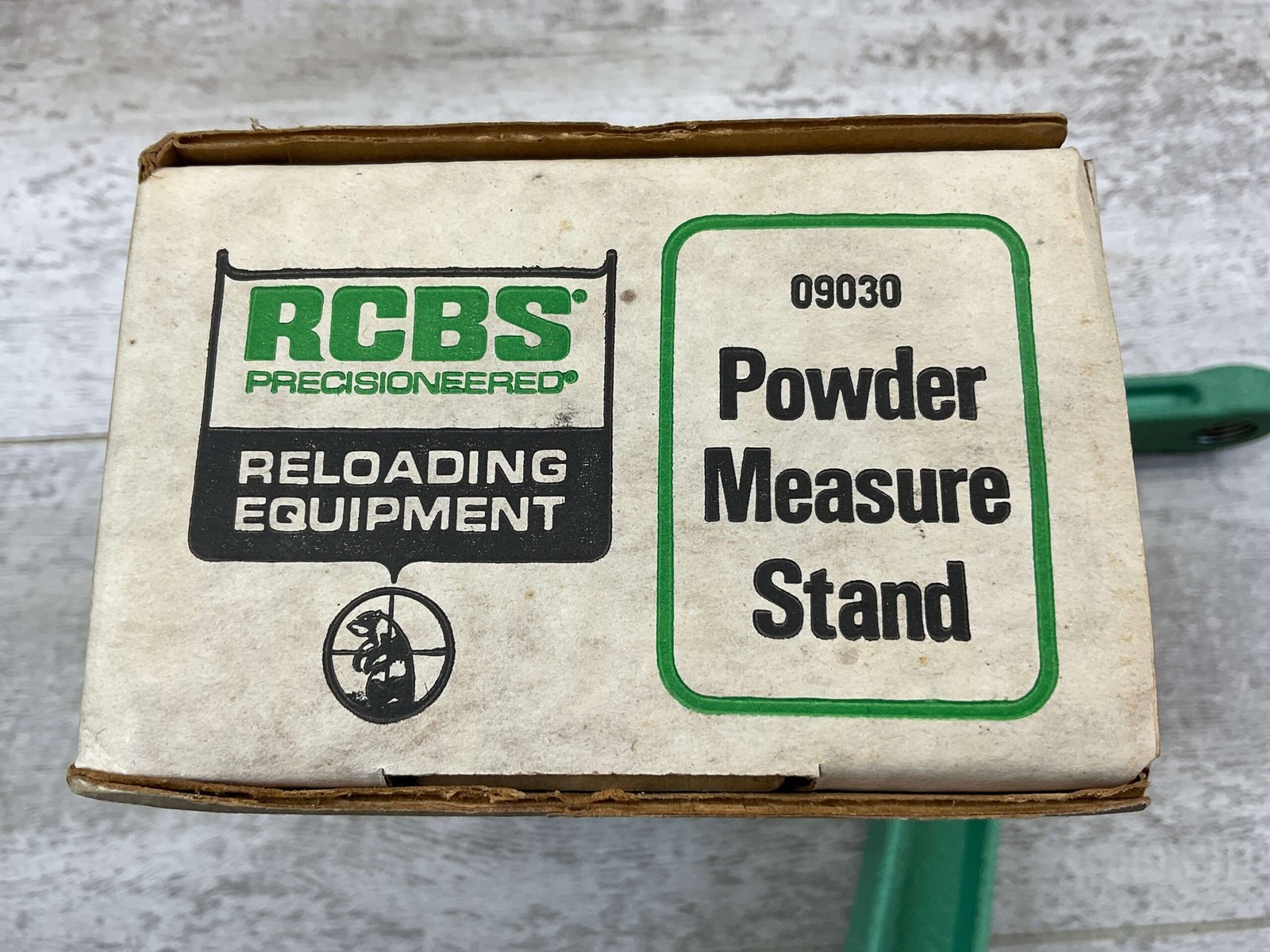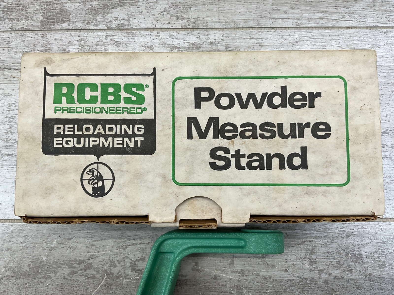 RCBS POWDER MEASURE STAND, VINTAGE, COMES IN ORIGINAL BOX, LIGHT GREEN IN COLOR