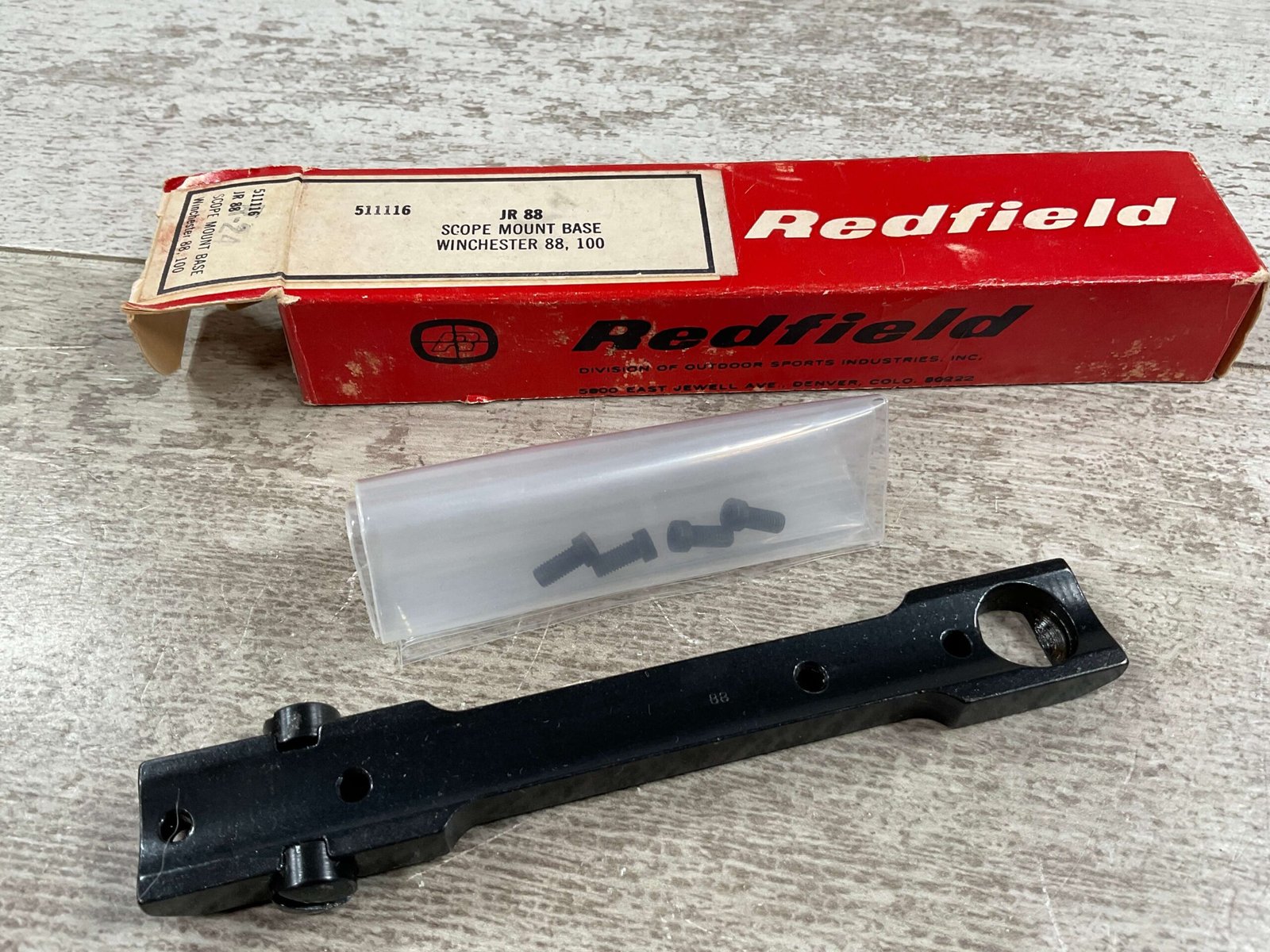RREDLINE 1 PIECE SCOPE MOUNT BASE WINCHESTER 88/100 511116 VINTAGE JR 88, BOX IS IN EXCELLENT CONDITION, INSTRUCTIONS INCLUDED, USED BUT EXC CONDITION, VINTAGE & COLLECTIBLE, SCREWS INCLUDED