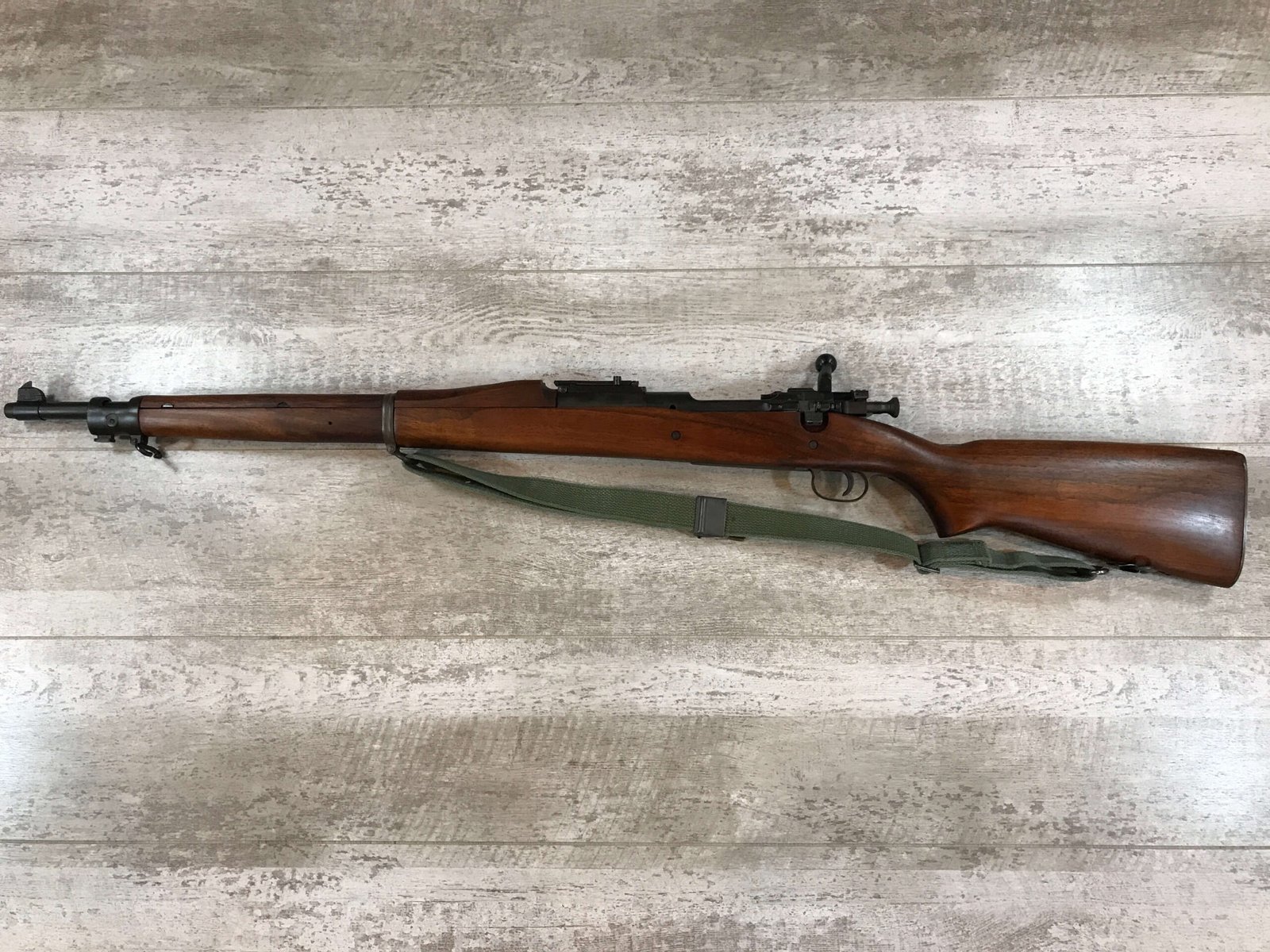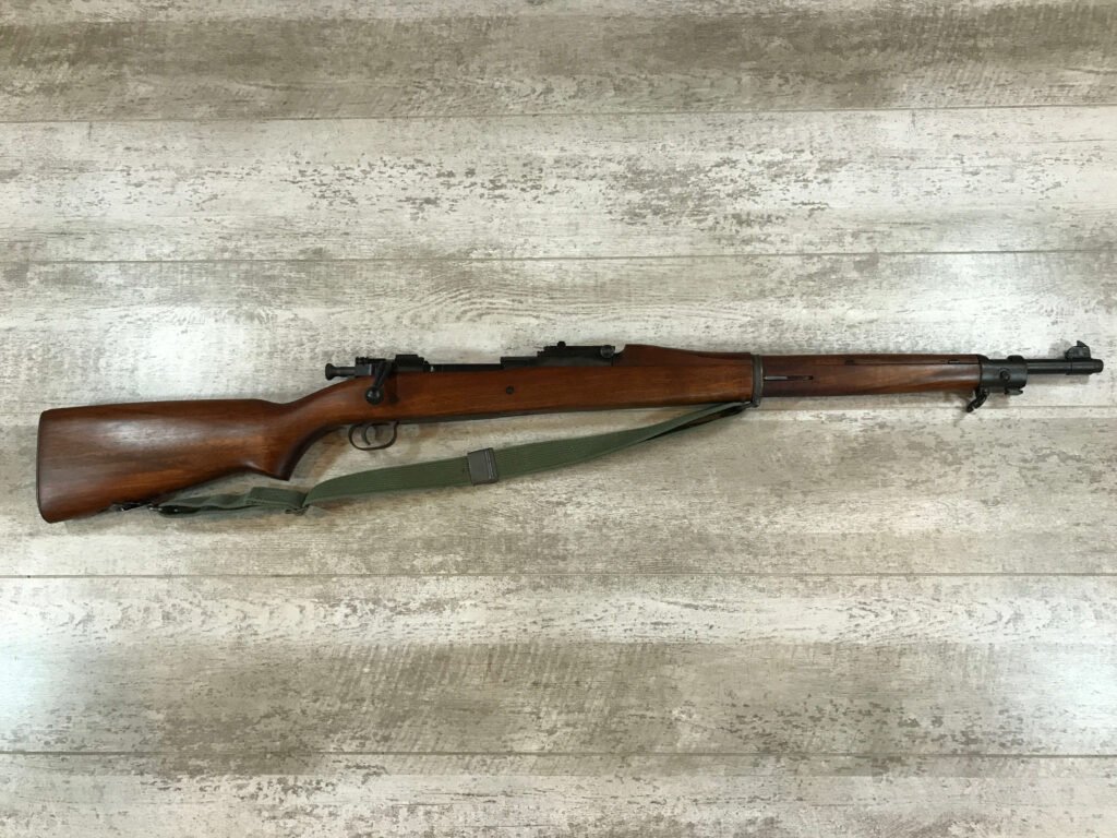 REMINGTON 1903A1 30-06 SPORTERIZED BOLT ACTION RIFLE, AUG 1942 MFR #3189354, RA OVER FLAMING BOMB OVER 7-42 BBL, FROSTED BARREL, ME – 0+, EXCELLENT “C” STOCK, CIRCLE P FRONT OF GRIP, ALL MATCHING REMINTON PARTS, SMOOTH BUTT PLATE, PROFESSIONAL RESTORATION/REBLUED, EXCELLENT OVERALL CONDITION, 99%