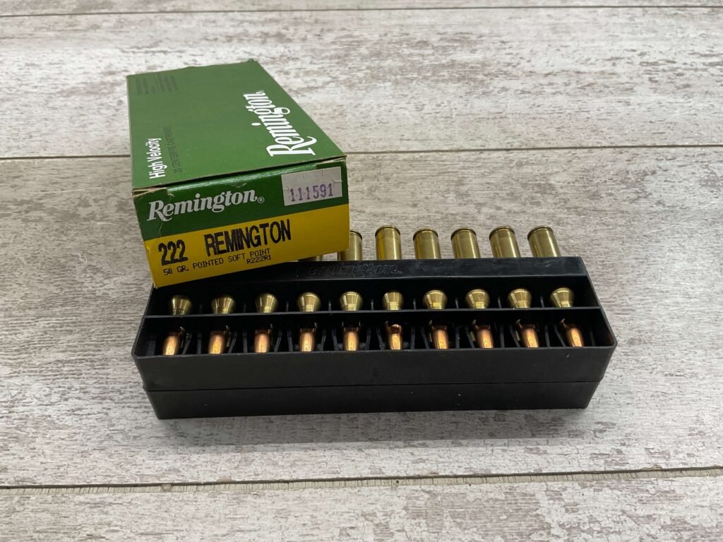 REMINGTON 222 CARTRIDGES, FIRST RELOAD 50 GRN HP TNT BULLET OAW 1.33, PRIMER HOLES REEMED AND NECKS TURNED, FULL BOX