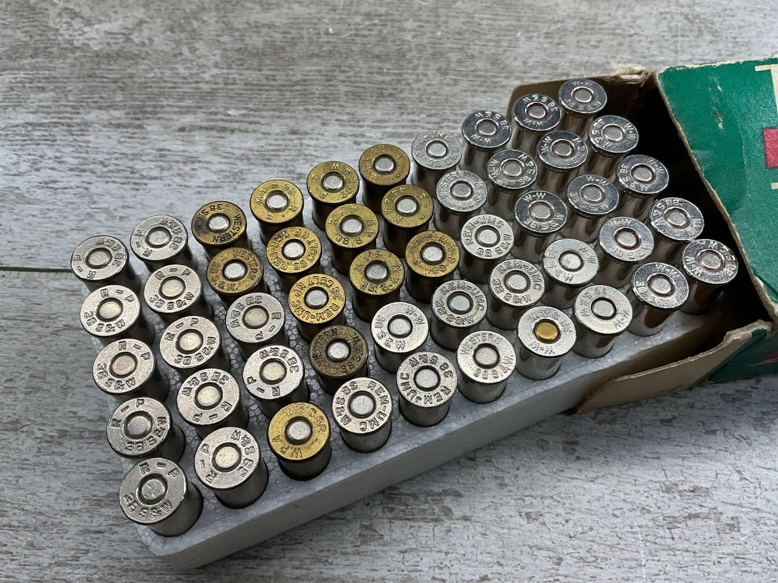 REMINGTON 32 S&W CARTRIGES, VARIOUS MANUFACTURES AND CASING TYPES, BOX IN IN GOOD CONDITION MISSING THE LEFT SIDE FLAP, 50 RNDS