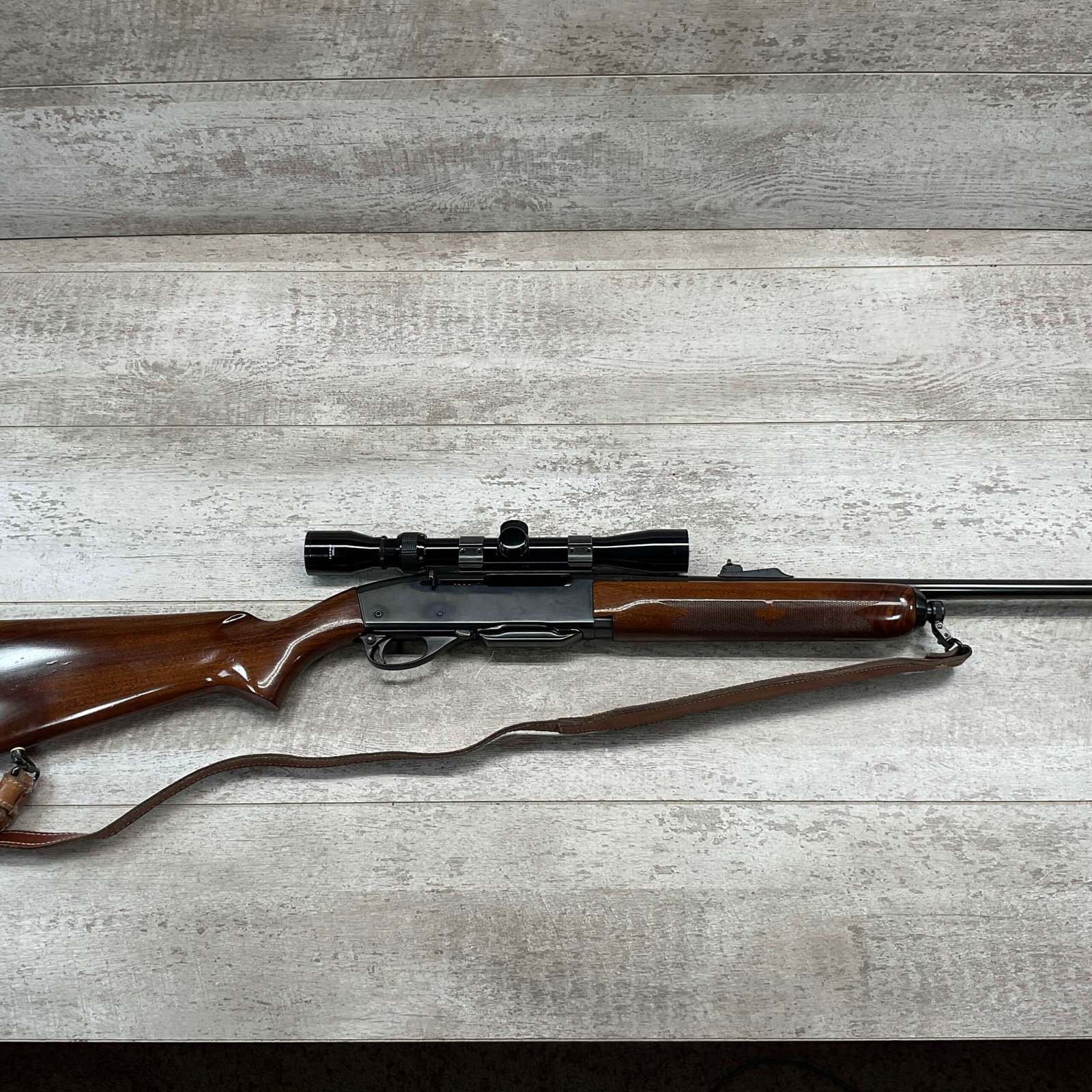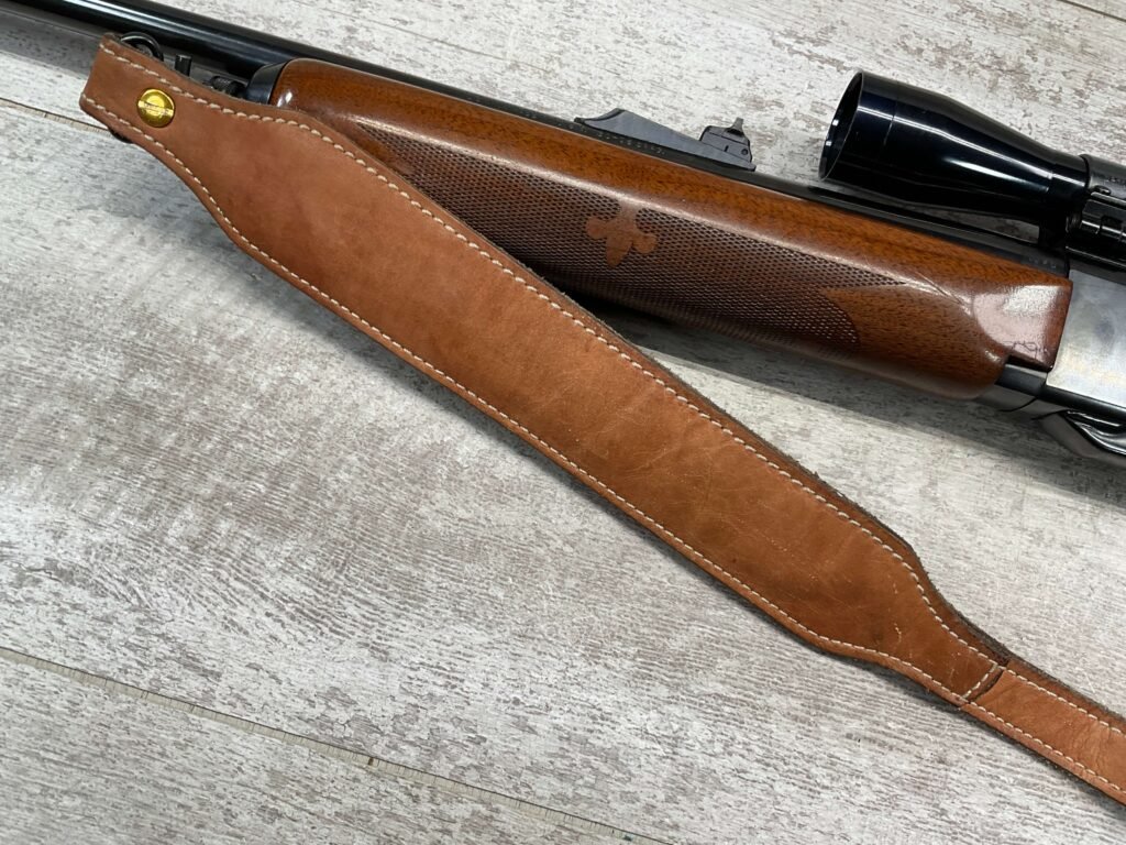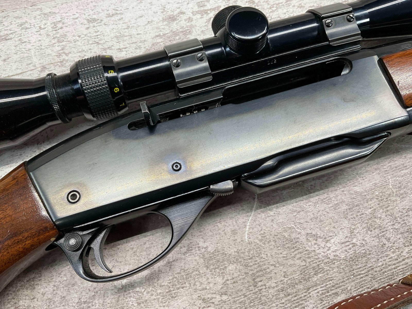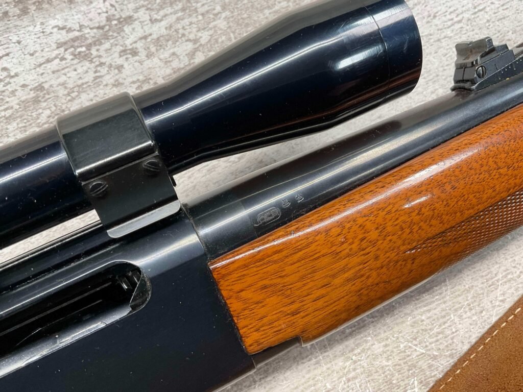 REMINGTON 742 WOODMASTER 30-06 SEMI AUTO RIFLE #B7362841, DELUXE GRADE, “OC” MARKED BBL (JUL 1982), EXC CHECKERED WALNUT STOCK W/VERY LIGHT MARKS FROM USE, EXC BRIGHT BORE & RIFLING, STEEL BUTT PLATE, SLING SWIVELS, LEATHER SLING, EXC ORIGINAL BLUE, TASCO 3-9X32 SCOPE, ORIGINAL SIGHTS STILL PRESENT, 1 – 4 ROUND REMOVABLE MAGAZINE, EXC OVERALL & READY TO HUNT!!