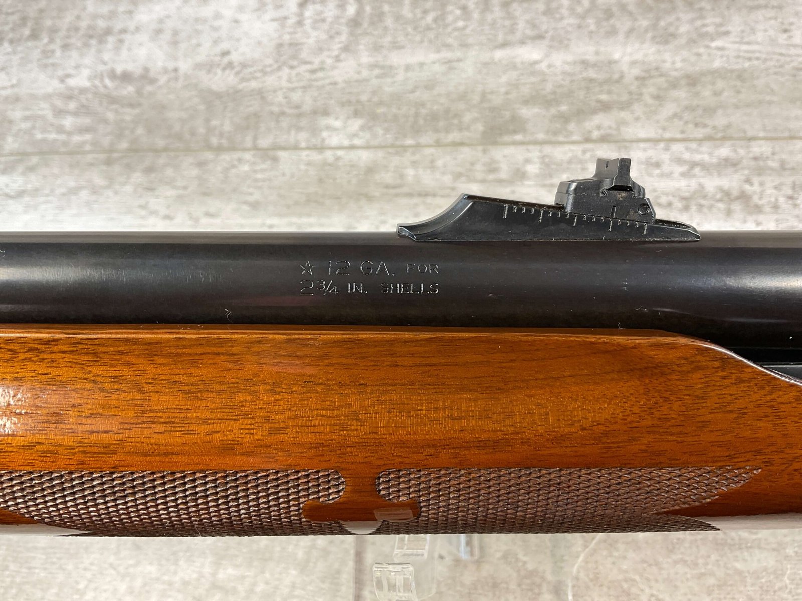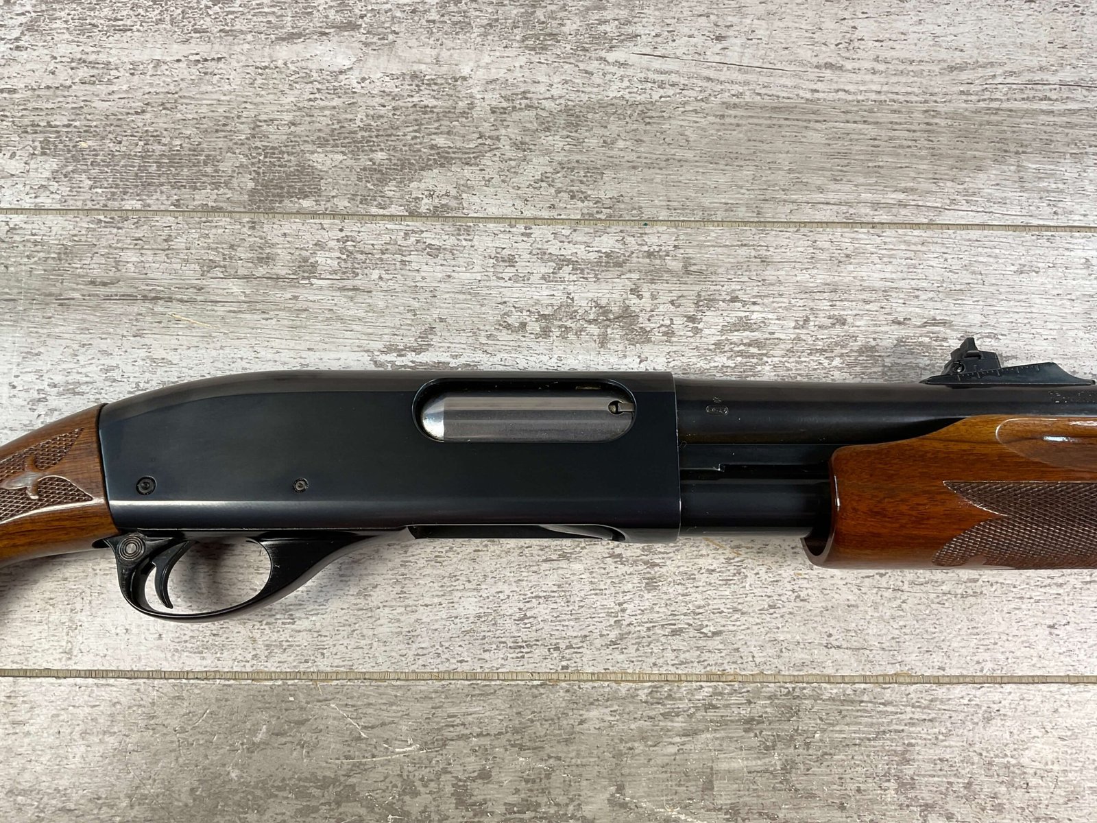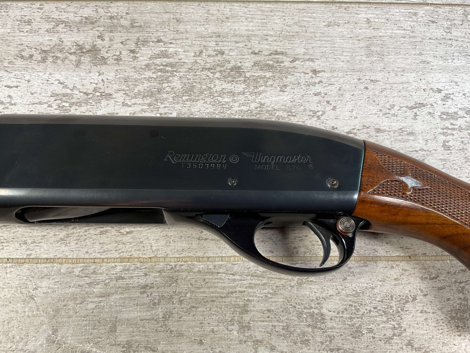 REMINGTON 870 WINGMASTER 12GA PUMP SHOTGUN #T350398V, 20″ SMOOTH BORE SLUG BARREL, 2 3/4″ SHELLS, EXC BLUED FINISH, EXC CHECKERED WALNUT STOCK W/MINIMAL SIGNS OF USE, SMOOTH PUMP ACTION, 14″ LOP, RUBBER RECOIL PAD, READY TO DROP A DEER!!, CONDITION AS SHOWN IN PICTURES.
