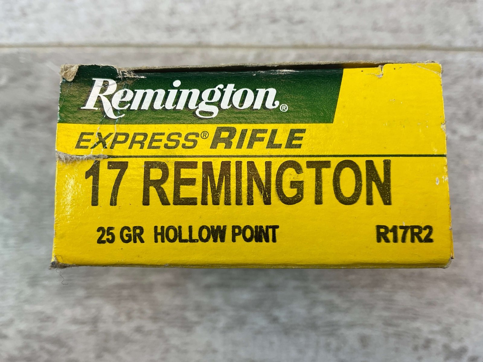 REMINGTON EXPRESS RIFLE, 17 REM. 25 GR. HP AMMO, QTY 20, ITEM #R17R2