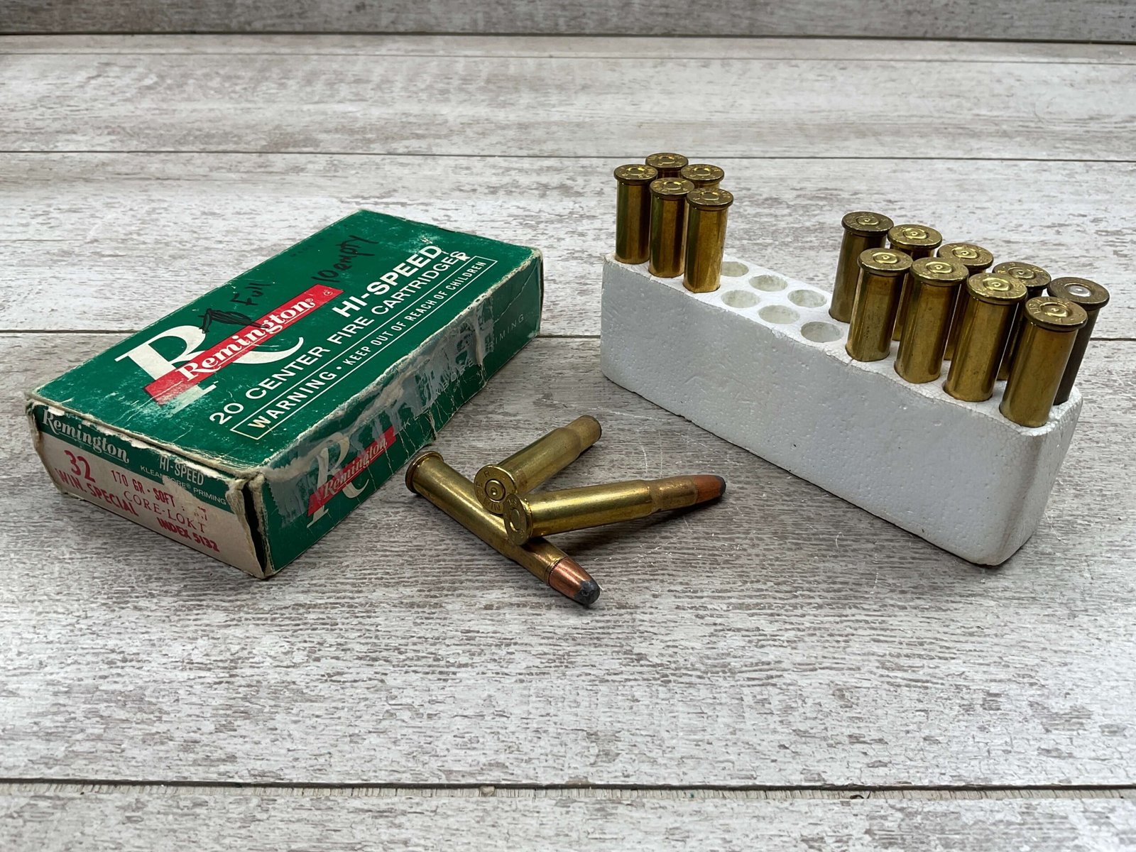 REMINGTON HIGH SPEED CORE-LOKT 32 WIN. SPECIAL, 170 GRN SP, PARTIAL BOX QTY 17 W/ 10 BRASS AND 7 LIVE