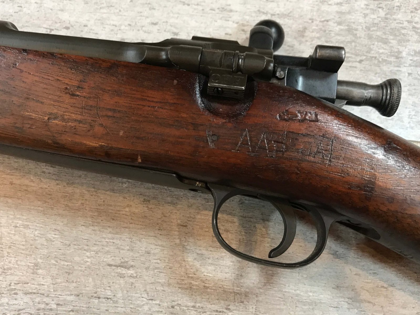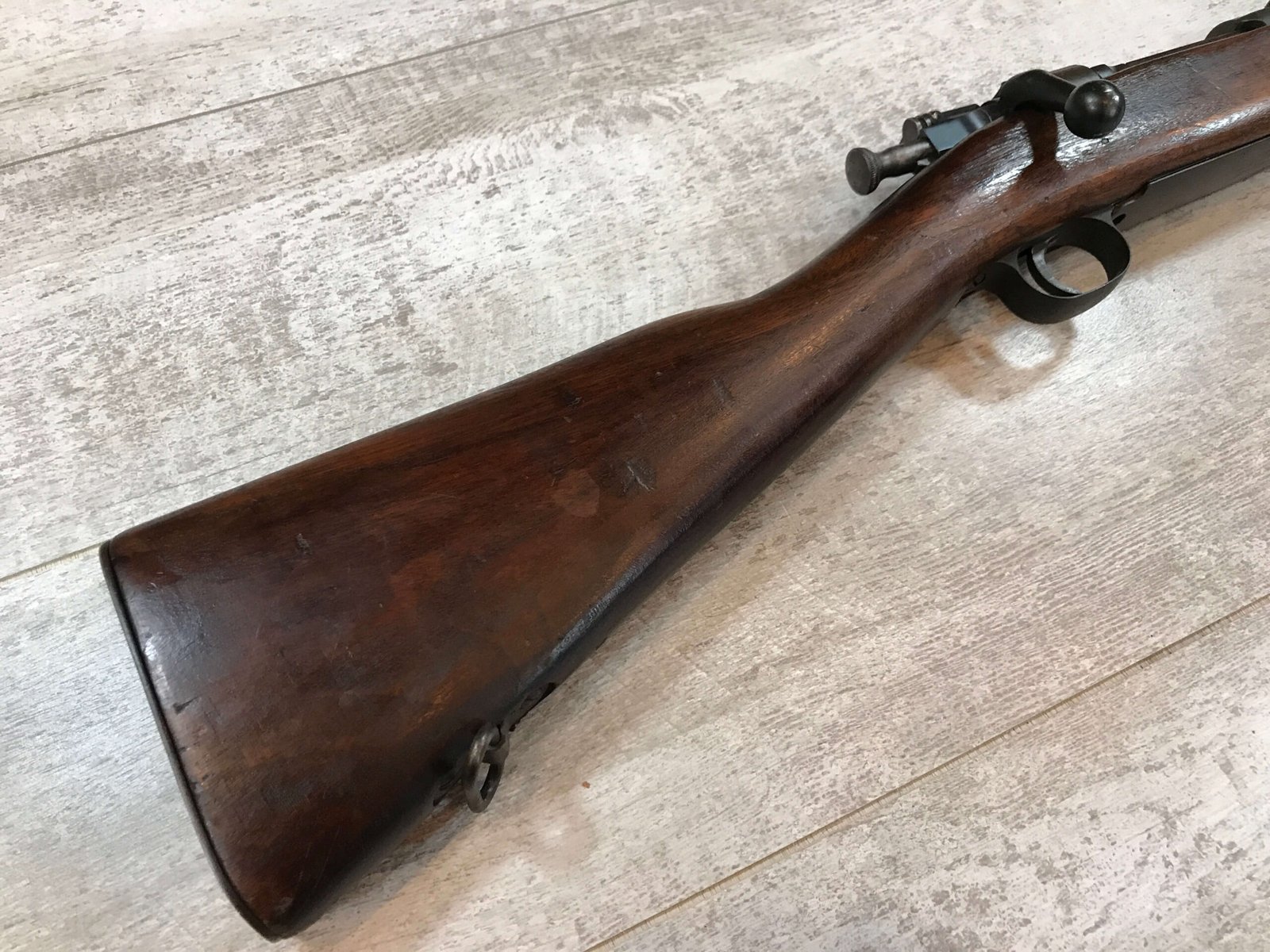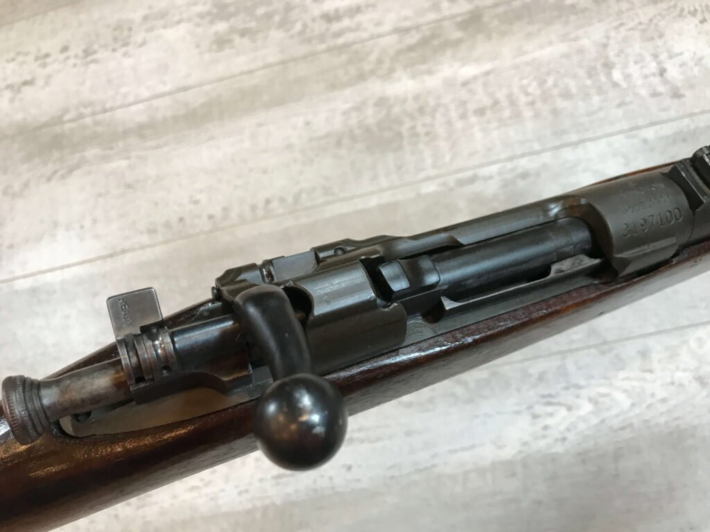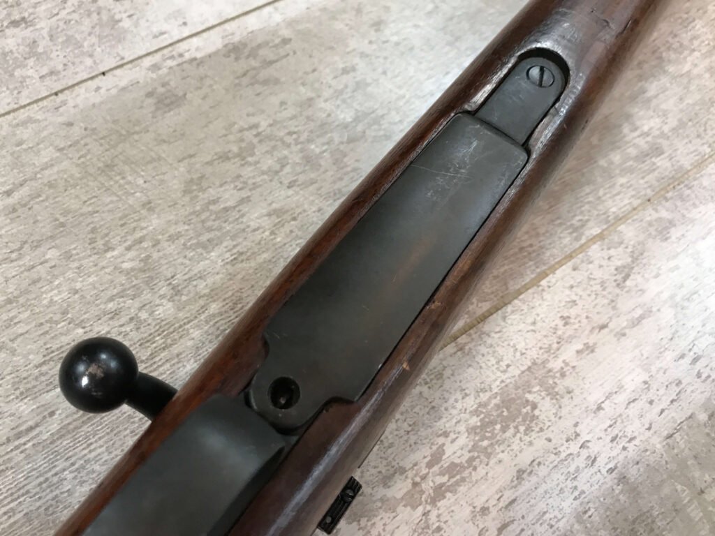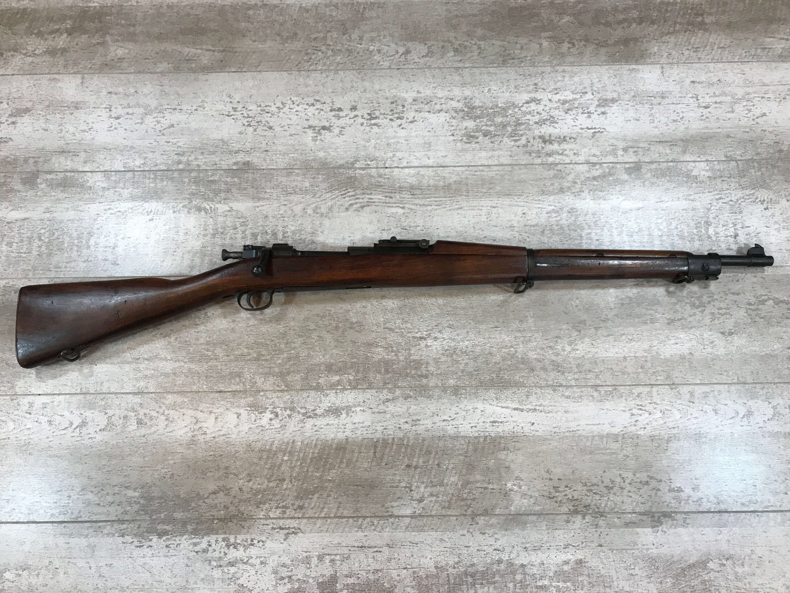 SKU#271 REMINGTON M1903 30-06 BOLT ACTION RIFLE 7-42 MFR, #3197100, BARREL MARKED RA/FLAMING BOMB/7-42, CIRCLE P BEHIND TRIGGER GUARD “M” IN FRONT OF REAR SLING SWIVEL, VG C-STOCK WITH NORMAL DINGS AND SCRATCHED, “AAP”, “RA-P” AND “FJA”, MARKED WALNUT STOCK, “NS” MARKED BOLT ACQUIRED EITHER DURING THE “RA-P” OR AAP” ARSENAL VISIT, LIGHTLY FROSTED BORE 7.5/10, STRONG RIFLING, ME- 0, 92% OVERALL